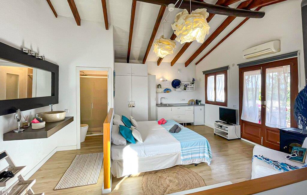 Træd udenfor og oplev magien i middelhavshaven. Slap af ved poolen på liggestolene eller tag en forfriskende dukkert. Brug spabadet til øjeblikke med ro eller nyd morgenmaden på den overdækkede terrasse med det komfortable loungeområde. Den kærligt anlagte have med palmer, oliventræer og afsidesliggende siddeområder lægger op til hyggestunder. Om aftenen skaber den atmosfæriske udendørsbelysning en særlig romantisk atmosfære.