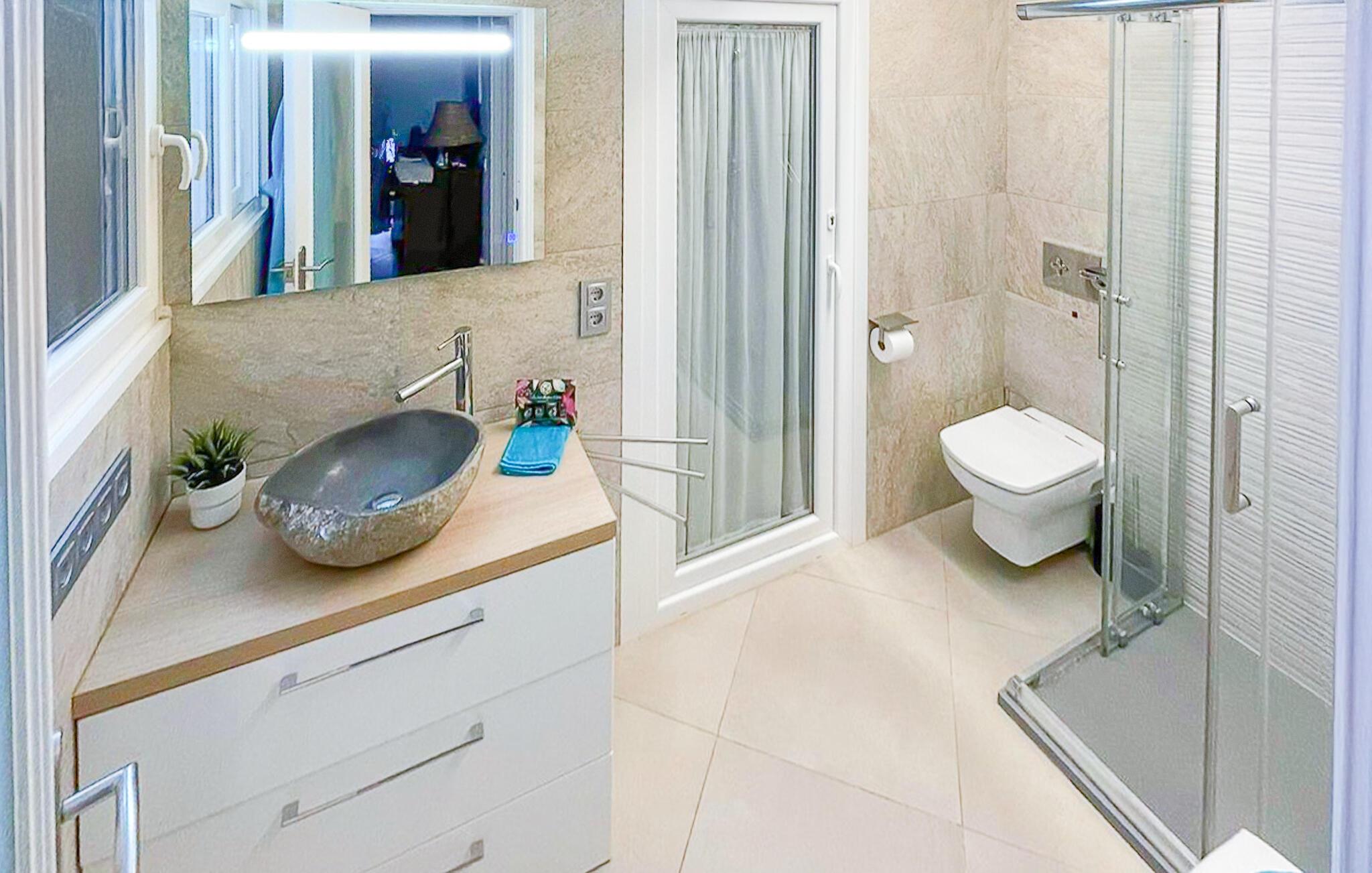 Badeværelse (nr. 1) - WC. Varmt og koldt vand. Bruser