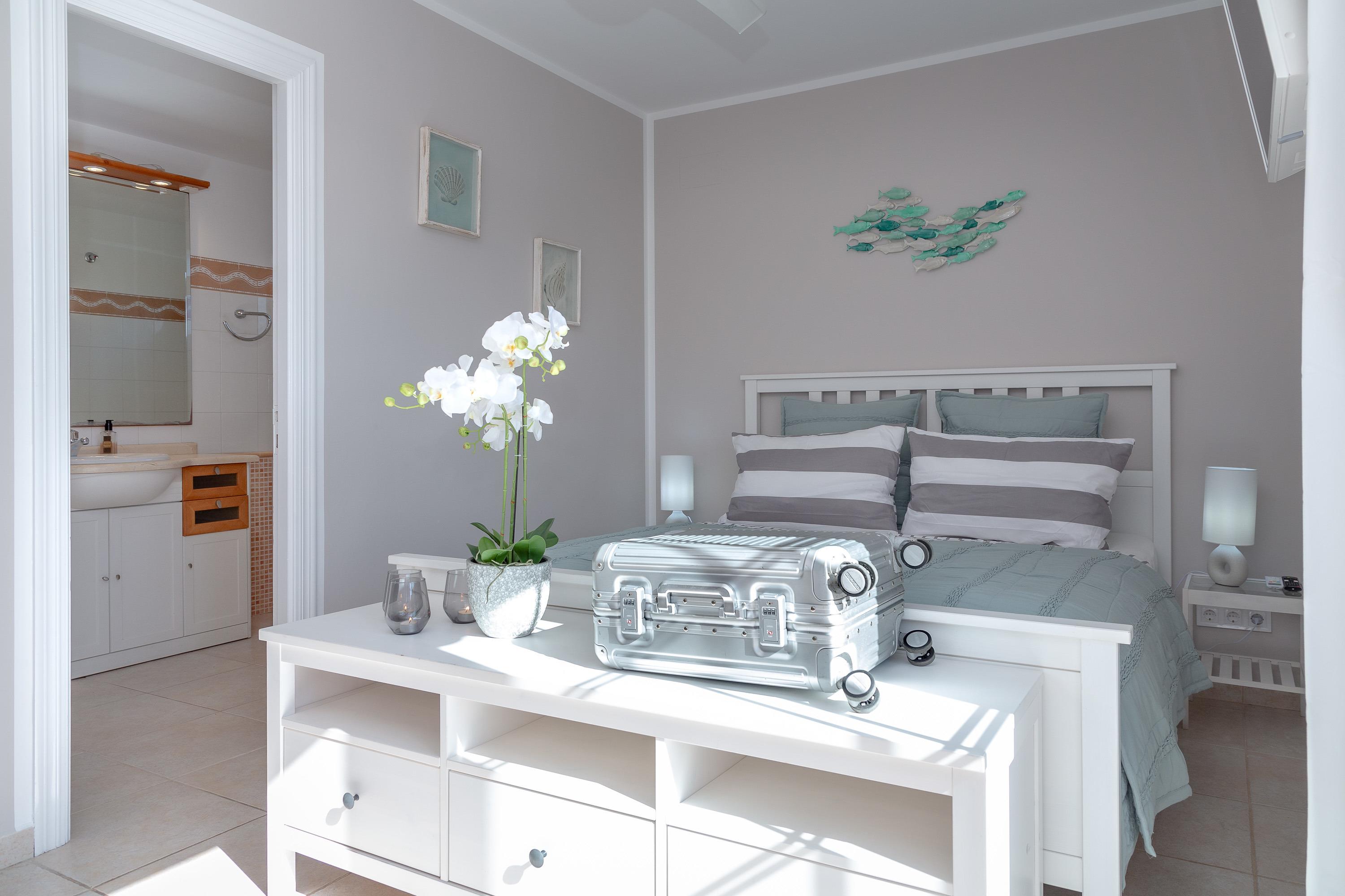 Die VILLA PALMERA bietet auf 250 m² Wohnfläche alles, was Sie für Ihren Traumurlaub benötigen: Vier stilvoll eingerichtete Schlafzimmer, ausgestattet mit Klimaanlagen, Ventilatoren und luxuriösen Doppelbetten, garantieren erholsame Nächte. Drei moderne Bäder, eines davon ensuite, sorgen für Privatsphäre und Komfort. Der großzügige Wohn-Essbereich mit Satelliten-TV und Streaming-Möglichkeiten lädt zu entspannten Stunden mit Familie oder Freunden ein.
