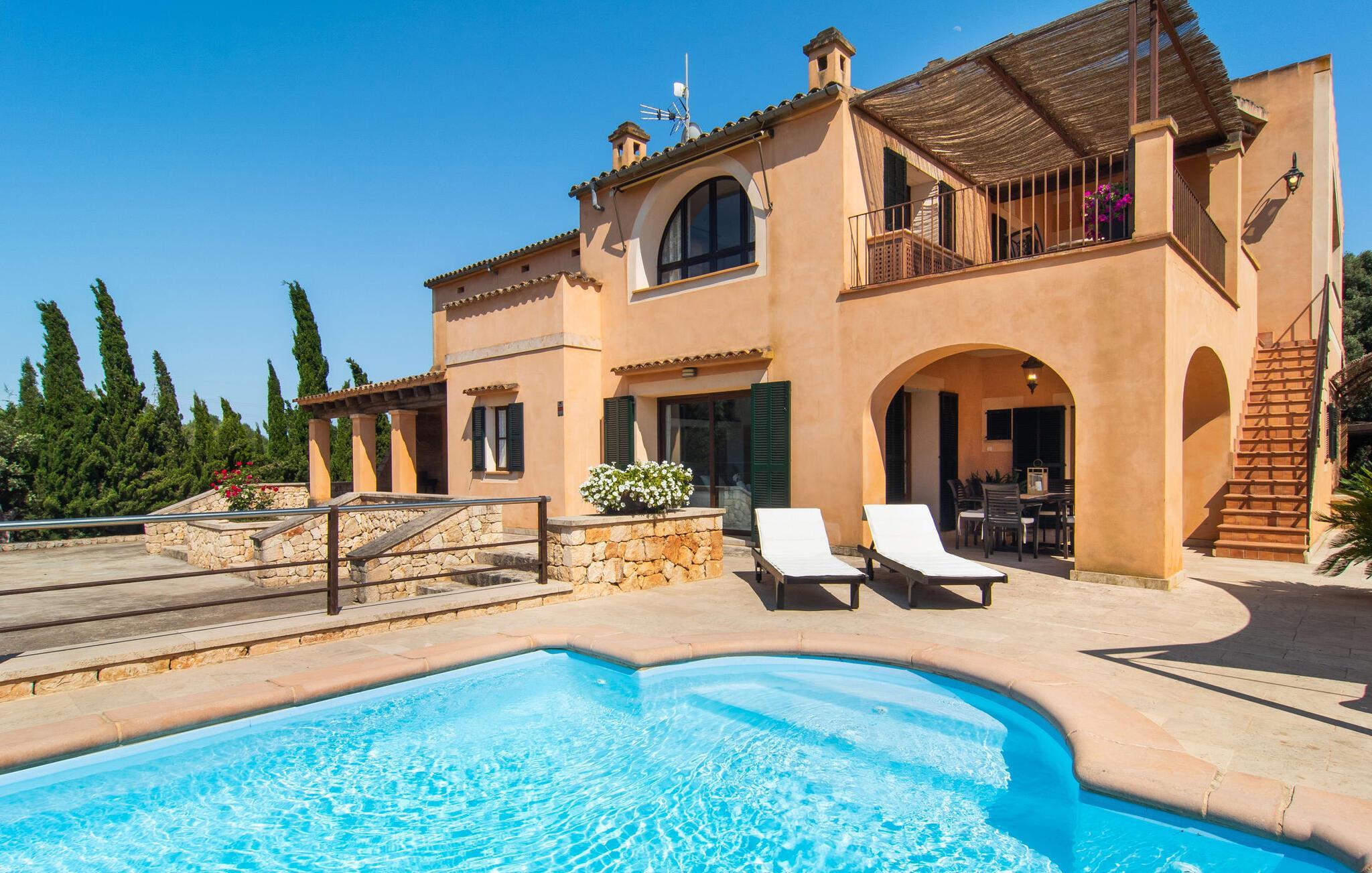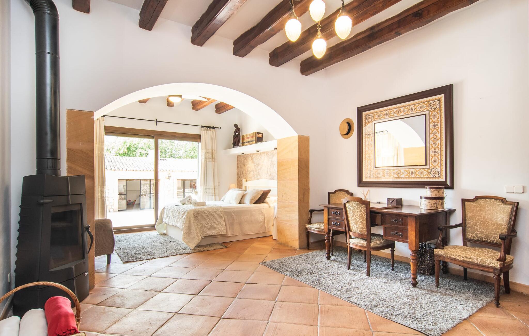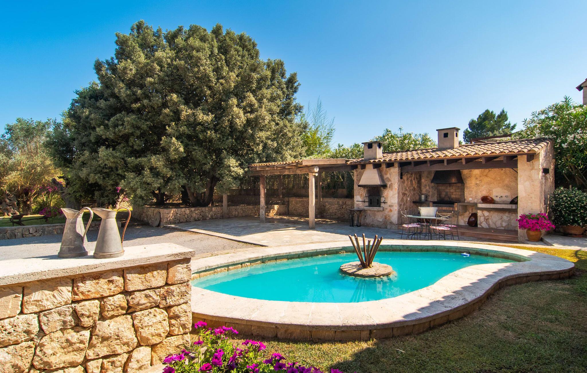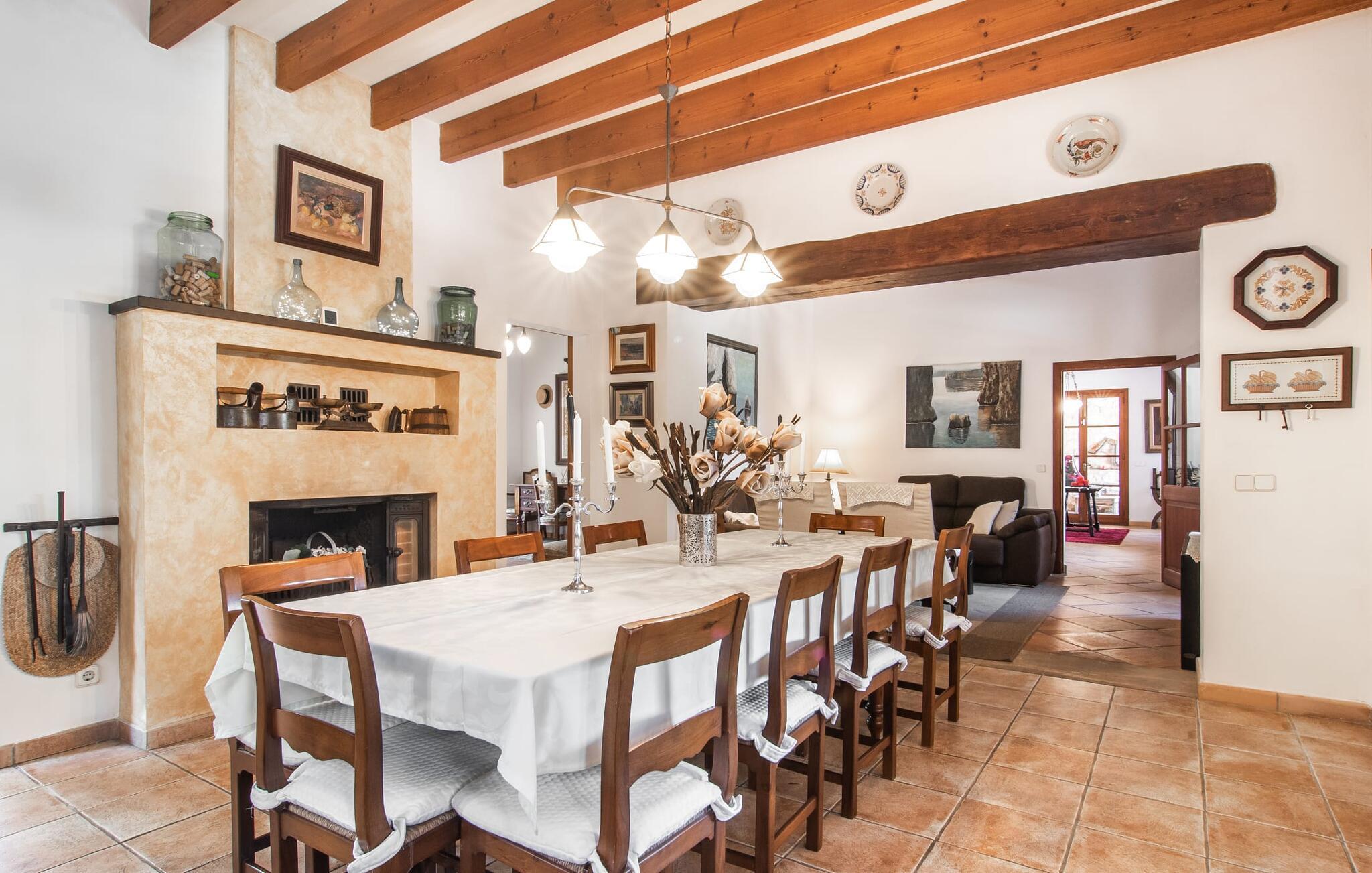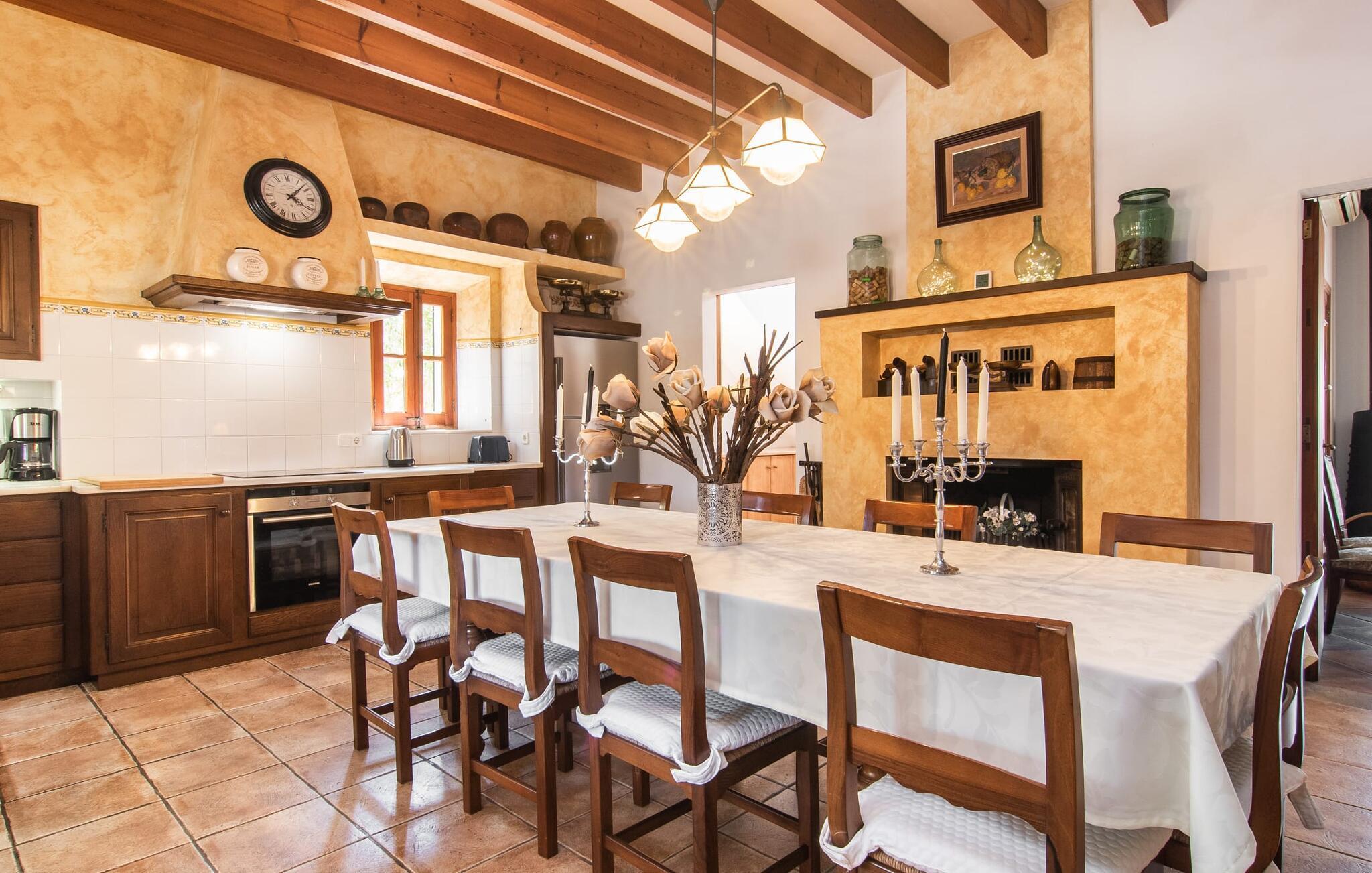 "Martijoan" er et glimrende eksempel på et privat mallorcansk landsted. Vores luftfotos fremhæver placeringen ved "Campo", selvom du allerede kan se Manacors skyline i baggrunden. Området er domineret af landbrugsjord, som sammen med den smukke have tilføjer villaens charme. Gå en rolig tur rundt i ejendommen, hvor du finder attraktive siddepladser både i haven og i huset. Skyggefulde terrasser med daybeds, morgenmadssteder til din morgenkaffe, bambus- eller stofparasoller med fede møbler, en spiseplads på verandaen, et opholdsområde på altanen ovenpå, det hyggelige hjørne i haven foran dammen - disse er bare nogle få af de områder, der er tilgængelige. Det er værd at opdage og vil især glæde dine børn. Ud over opdagelsesturen i det åbne område er der fitness- og spillelokale i garagen til rådighed for store og små. Der er også mål i en fodboldkamp, og intet står i vejen for en bordtennis- eller bordfodboldturnering. To andre højdepunkter skal nævnes: den store pool og det overdækkede udendørs køkken med grill og ovn. Poolen er indlejret i en terrasse udstyret med liggestole og en chill lounge lavet af kurvemøbler. Udetoilettet er særligt praktisk, da det betyder, at du ikke behøver at afbryde dine aktiviteter for længe. I sommerkøkkenet kan du tilberede en grill af frisk fisk, kød og grøntsager og nyde de smagfulde produkter, som Mallorca har at byde på. Dette er et Fincallorca feriehus. Den velholdte nybyggede villa med charmen fra en mallorcansk landejendom byder på et fantastisk layout, perfekt hvis du rejser med to eller flere familier. Huset byder på komplette faciliteter på begge etager, hver med stue og køkken, så I kan tilbringe jeres ferie sammen på trods af at de er noget adskilt. I stueetagen ligger landstedets køkken med pejs ved siden af spisepladsen og grænser op til den åbne opholdsstue. Møblerne er af høj kvalitet og er traditionelt suppleret med antikke møbler. Indretningen ser meget moderne ud, med et strejf af nostalgi. Et klaver supplerer det attraktive "Ensemble des Parterres", som også har to udsøgt møblerede soveværelser med masser af opbevaringsplads og et moderne badeværelse med badekar og bruser. Ovenpå finder du et lignende anlæg med en stue, et meget moderne, fuldt udstyret køkken arrangeret omkring en hyggelig ø og en pejs. Tre soveværelser med aircondition, komfortable dobbeltsenge og et moderne brusebad fuldender denne selvforsynende boligenhed, som derfor er perfekt til en anden familie. På øverste etage er der desuden en overdækket altan med pooludsigt, hvor I kan tilbringe hyggelige timer med en smuk udsigt. Denne opdeling giver en større rejsegruppe meget behagelig autonomi - den ene ferierytme forstyrrer ikke den anden, og samværet med at grille og lege er udelukkende til afslapning. Lille bemærkning: På grund af en aktuel teknisk indstilling på den digitale elmåler skal de tre klimaanlæg tændes efter hinanden og kan ikke bruges samtidigt. Hvis en familie bevidst vælger en landvilla, som det er tilfældet med den anbefalede "Martijoan", kan de føle sig særligt frie. Det er endnu pænere, når du næsten er inden for synsvidde af en by. Da den alsidige villa er bekvemt placeret i nærheden af en vej, der nogle gange er hørbar, kan Manacor nås på 5 minutter i bil. Manacor er dog ikke en hvilken som helst by, men den næststørste på Mallorca. Oversat betyder navnet "hånden på hjertet", og det afspejler virkelig, hvor smuk byen er. Den er ikke kun kendt for sin perleindustri, men også for keramik, vin og meget mere. Der er et frugt- og grøntsagsmarked hver dag (undtagen søndage) på Placa Constitucio. Alt er perfekt til en selvbestemt ferie med venner og familie. Det vidunderlige layout og fantastiske indretning af den familievenlige villa "Martijoan" er ideelle til to familier, der rejser sammen. Huset er omgivet af et skønt havelandskab med mange detaljer og ligger helt landligt, ca 3 km fra Manacor. Her kan du gøre dine daglige indkøb eller nyde en omfattende shoppingtur. Fantastisk smukke strande, som er relativt ukendte for turister, såsom Cala Varques, kan nemt nås i bil.