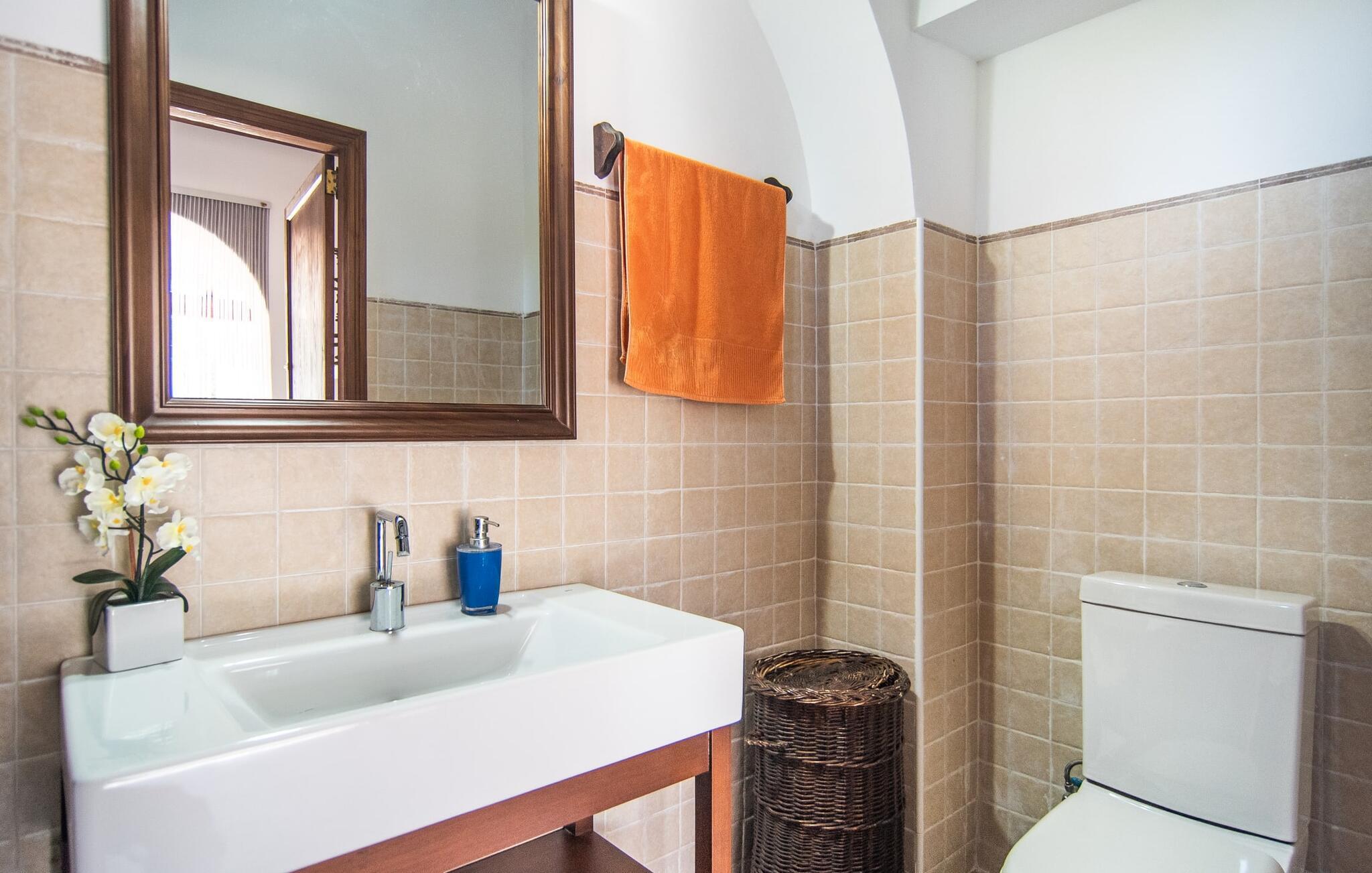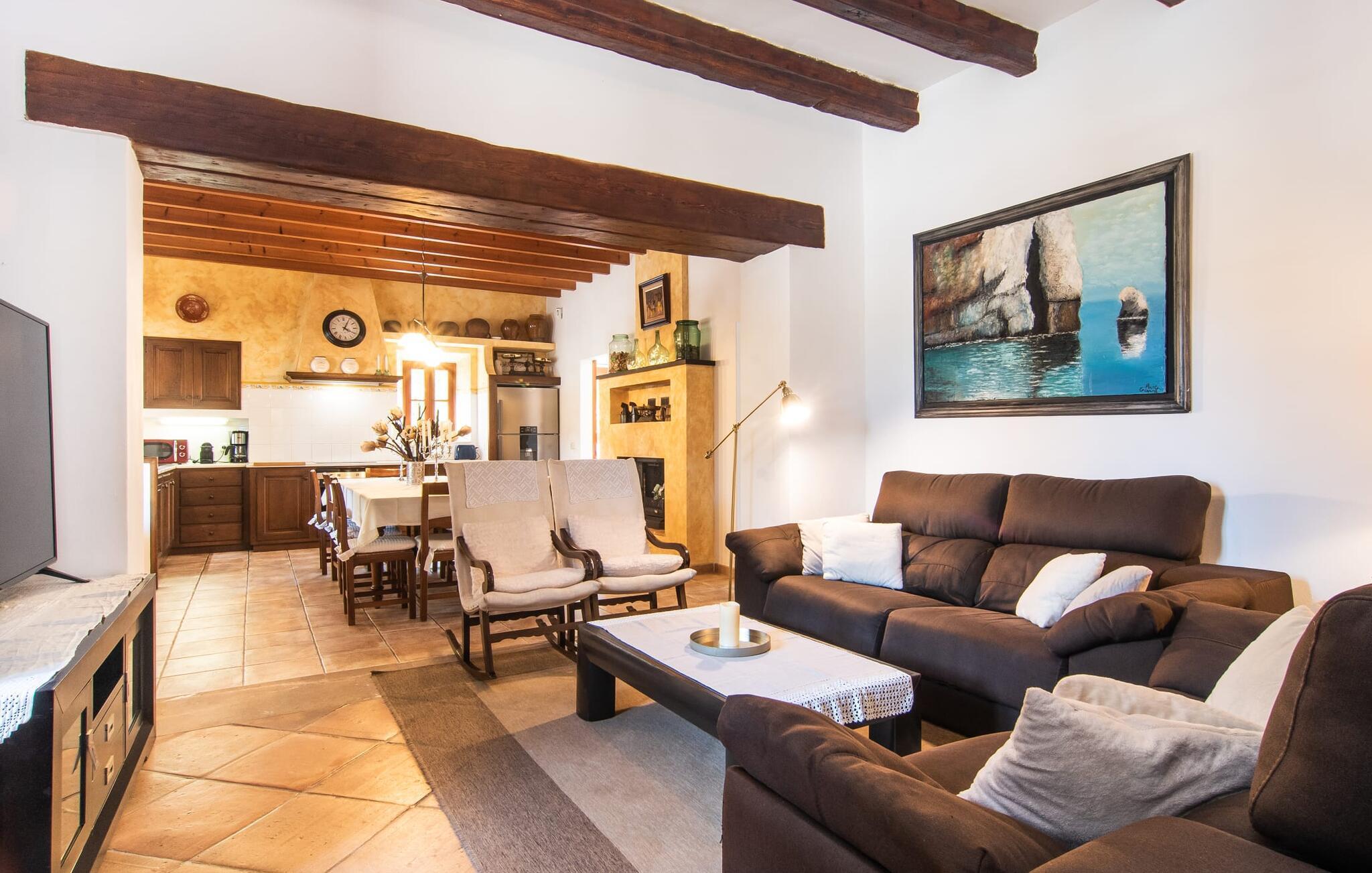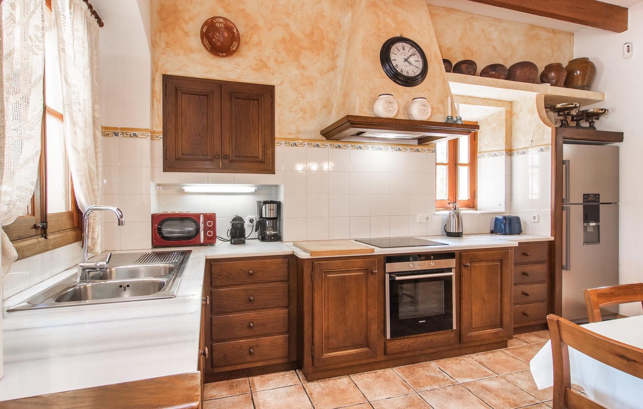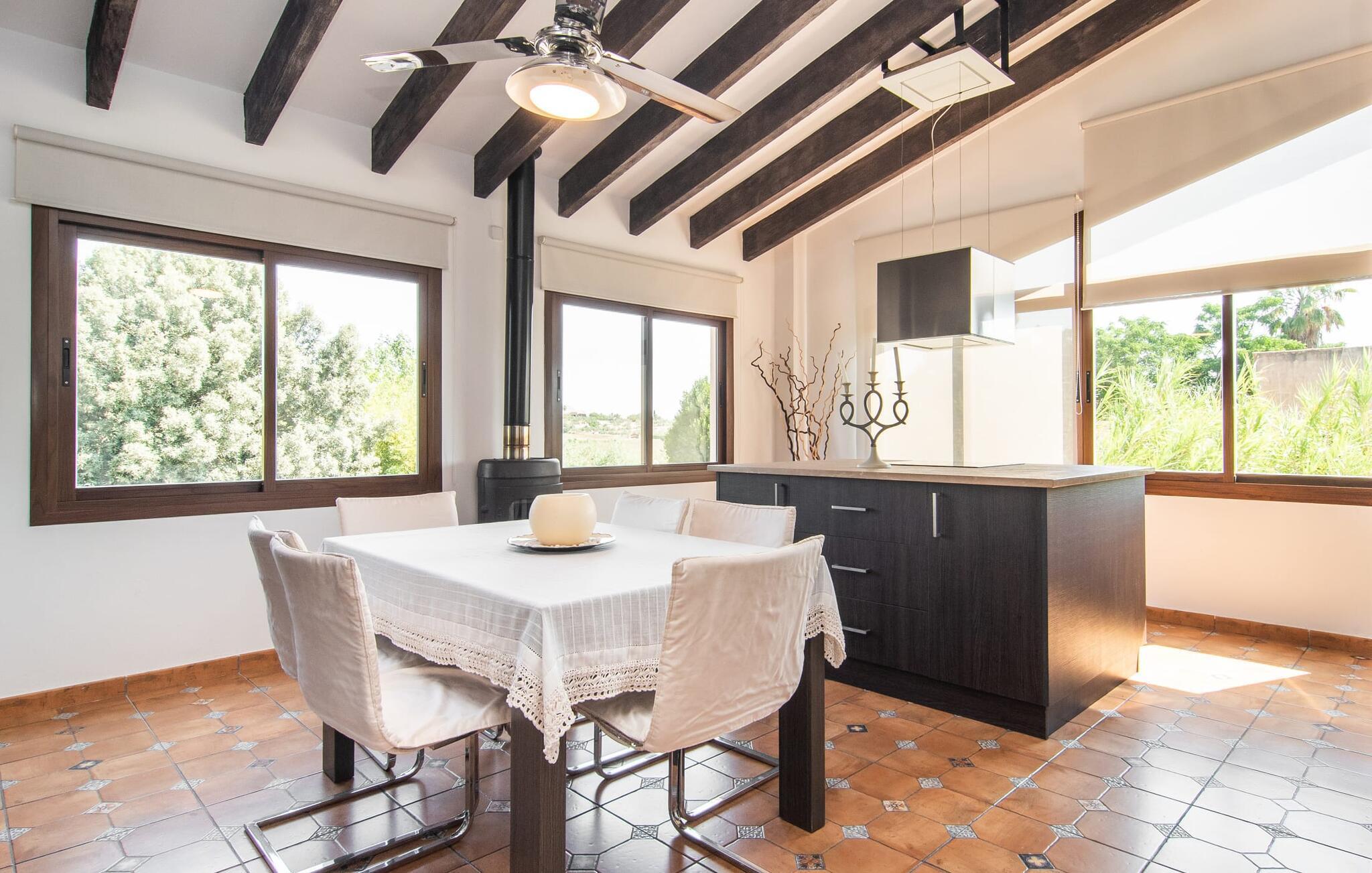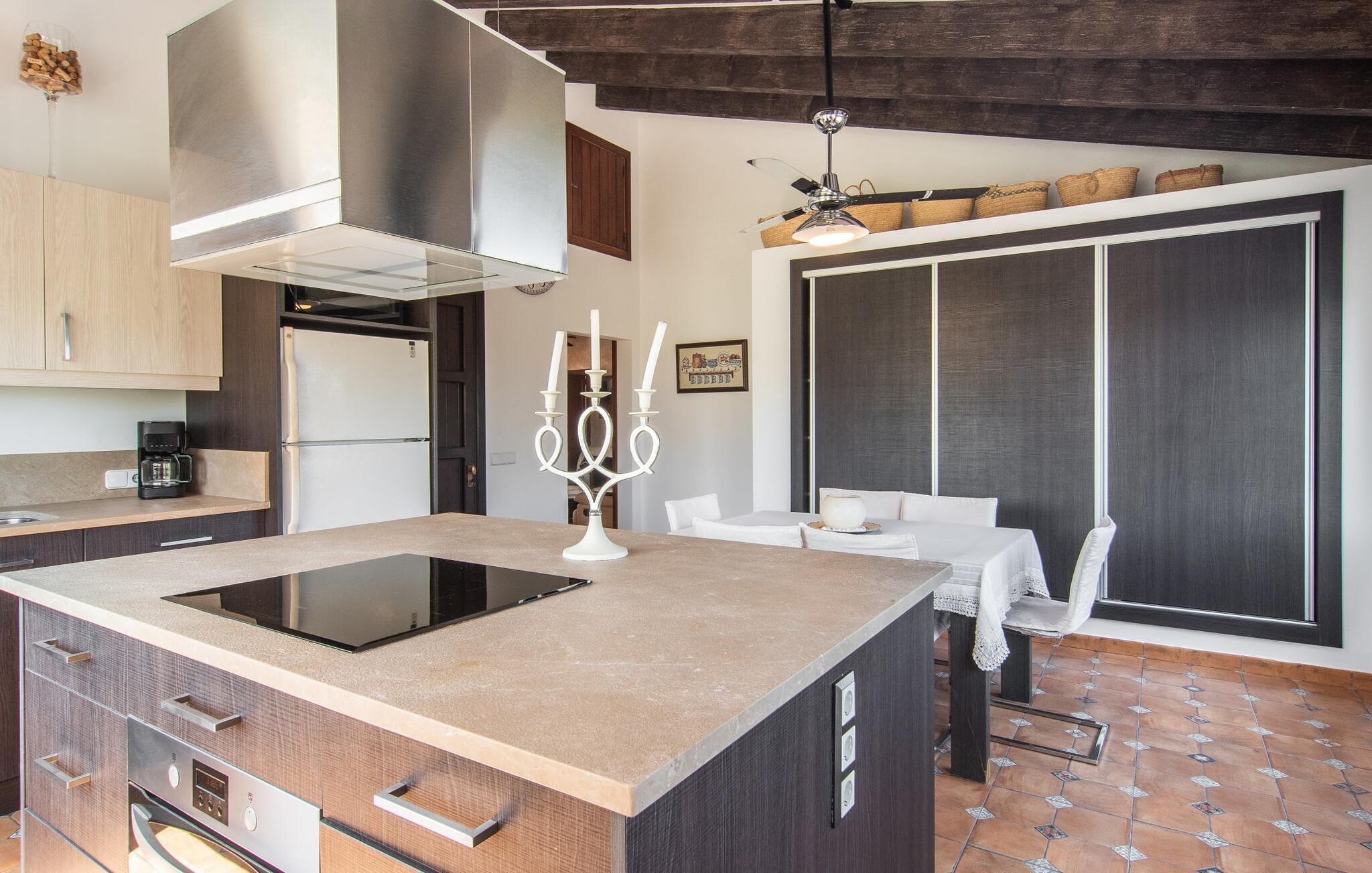 "Martijoan" er et glimrende eksempel på et privat mallorcansk landsted. Vores luftfotos fremhæver placeringen ved "Campo", selvom du allerede kan se Manacors skyline i baggrunden. Området er domineret af landbrugsjord, som sammen med den smukke have tilføjer villaens charme. Gå en rolig tur rundt i ejendommen, hvor du finder attraktive siddepladser både i haven og i huset. Skyggefulde terrasser med daybeds, morgenmadssteder til din morgenkaffe, bambus- eller stofparasoller med fede møbler, en spiseplads på verandaen, et opholdsområde på altanen ovenpå, det hyggelige hjørne i haven foran dammen - disse er bare nogle få af de områder, der er tilgængelige. Det er værd at opdage og vil især glæde dine børn. Ud over opdagelsesturen i det åbne område er der fitness- og spillelokale i garagen til rådighed for store og små. Der er også mål i en fodboldkamp, og intet står i vejen for en bordtennis- eller bordfodboldturnering. To andre højdepunkter skal nævnes: den store pool og det overdækkede udendørs køkken med grill og ovn. Poolen er indlejret i en terrasse udstyret med liggestole og en chill lounge lavet af kurvemøbler. Udetoilettet er særligt praktisk, da det betyder, at du ikke behøver at afbryde dine aktiviteter for længe. I sommerkøkkenet kan du tilberede en grill af frisk fisk, kød og grøntsager og nyde de smagfulde produkter, som Mallorca har at byde på. Dette er et Fincallorca feriehus. Den velholdte nybyggede villa med charmen fra en mallorcansk landejendom byder på et fantastisk layout, perfekt hvis du rejser med to eller flere familier. Huset byder på komplette faciliteter på begge etager, hver med stue og køkken, så I kan tilbringe jeres ferie sammen på trods af at de er noget adskilt. I stueetagen ligger landstedets køkken med pejs ved siden af spisepladsen og grænser op til den åbne opholdsstue. Møblerne er af høj kvalitet og er traditionelt suppleret med antikke møbler. Indretningen ser meget moderne ud, med et strejf af nostalgi. Et klaver supplerer det attraktive "Ensemble des Parterres", som også har to udsøgt møblerede soveværelser med masser af opbevaringsplads og et moderne badeværelse med badekar og bruser. Ovenpå finder du et lignende anlæg med en stue, et meget moderne, fuldt udstyret køkken arrangeret omkring en hyggelig ø og en pejs. Tre soveværelser med aircondition, komfortable dobbeltsenge og et moderne brusebad fuldender denne selvforsynende boligenhed, som derfor er perfekt til en anden familie. På øverste etage er der desuden en overdækket altan med pooludsigt, hvor I kan tilbringe hyggelige timer med en smuk udsigt. Denne opdeling giver en større rejsegruppe meget behagelig autonomi - den ene ferierytme forstyrrer ikke den anden, og samværet med at grille og lege er udelukkende til afslapning. Lille bemærkning: På grund af en aktuel teknisk indstilling på den digitale elmåler skal de tre klimaanlæg tændes efter hinanden og kan ikke bruges samtidigt. Hvis en familie bevidst vælger en landvilla, som det er tilfældet med den anbefalede "Martijoan", kan de føle sig særligt frie. Det er endnu pænere, når du næsten er inden for synsvidde af en by. Da den alsidige villa er bekvemt placeret i nærheden af en vej, der nogle gange er hørbar, kan Manacor nås på 5 minutter i bil. Manacor er dog ikke en hvilken som helst by, men den næststørste på Mallorca. Oversat betyder navnet "hånden på hjertet", og det afspejler virkelig, hvor smuk byen er. Den er ikke kun kendt for sin perleindustri, men også for keramik, vin og meget mere. Der er et frugt- og grøntsagsmarked hver dag (undtagen søndage) på Placa Constitucio. Alt er perfekt til en selvbestemt ferie med venner og familie. Det vidunderlige layout og fantastiske indretning af den familievenlige villa "Martijoan" er ideelle til to familier, der rejser sammen. Huset er omgivet af et skønt havelandskab med mange detaljer og ligger helt landligt, ca 3 km fra Manacor. Her kan du gøre dine daglige indkøb eller nyde en omfattende shoppingtur. Fantastisk smukke strande, som er relativt ukendte for turister, såsom Cala Varques, kan nemt nås i bil.