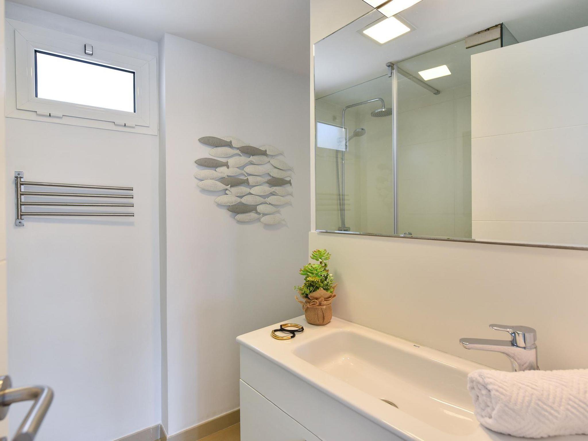 "Charca CM18", 4-room apartment 110 m2. Comfortable and modern furnishings: living/dining room with dining nook, satellite TV, digital TV and air conditioning. Exit to the balcony. 1 room with 1 french bed and air conditioning. 2 rooms, each room with 2 beds and air conditioning. Kitchen-/living room (oven, dishwasher, 4 ceramic glass hob hotplates, toaster, kettle, microwave, electric coffee machine) with dining table. 2 showers/WC. Balcony. Balcony furniture. View of the sea. Facilities: washing machine, safe, iron, children's high chair, baby cot for up to 2 year olds, hair dryer. Internet (WiFi, free). Parking (1 car). Please note: non-smoking house. 2021-T2958 // Reg. Nr.: ESFCTU000035013000428312000000000000000VV-35-00156705