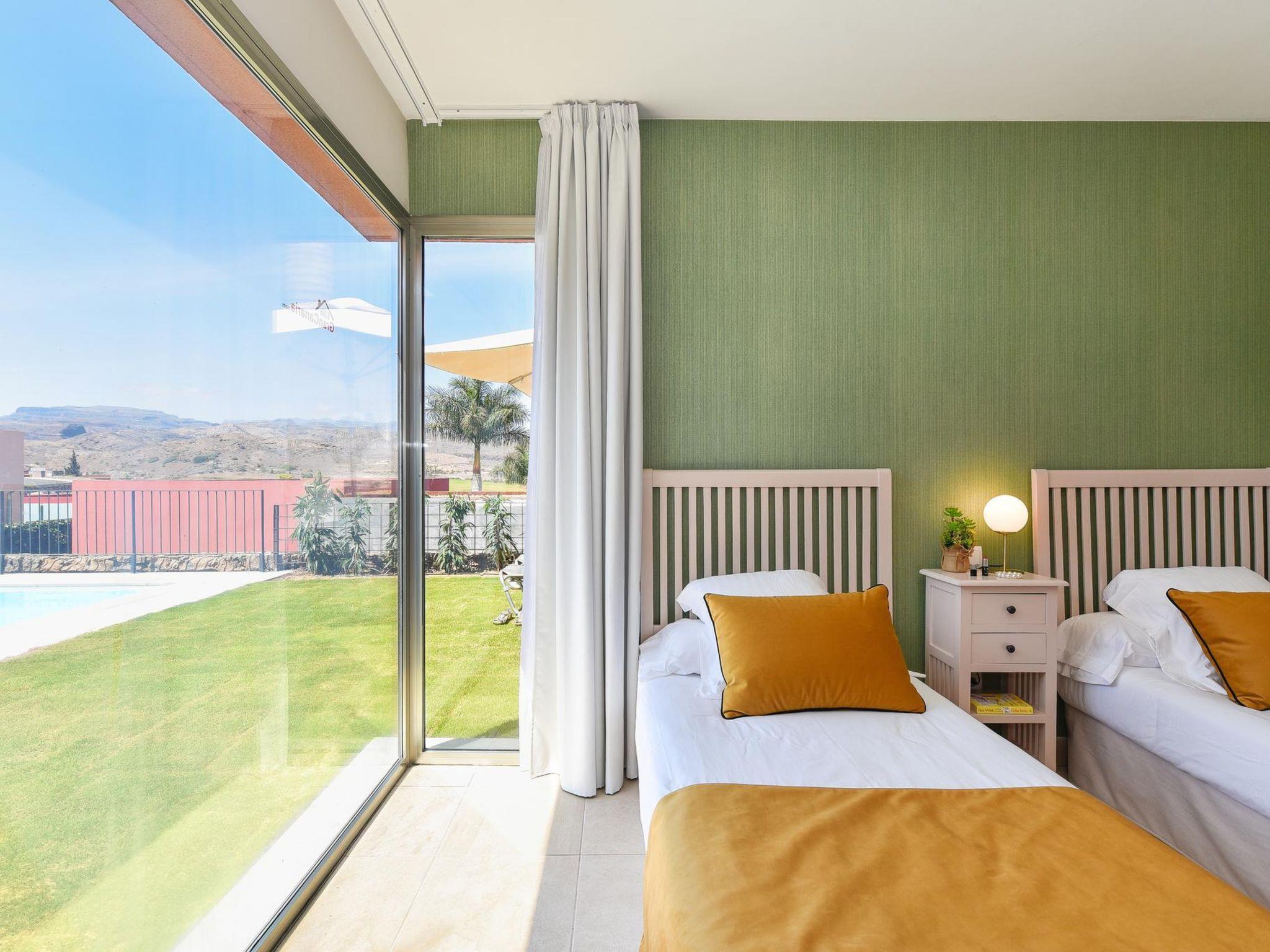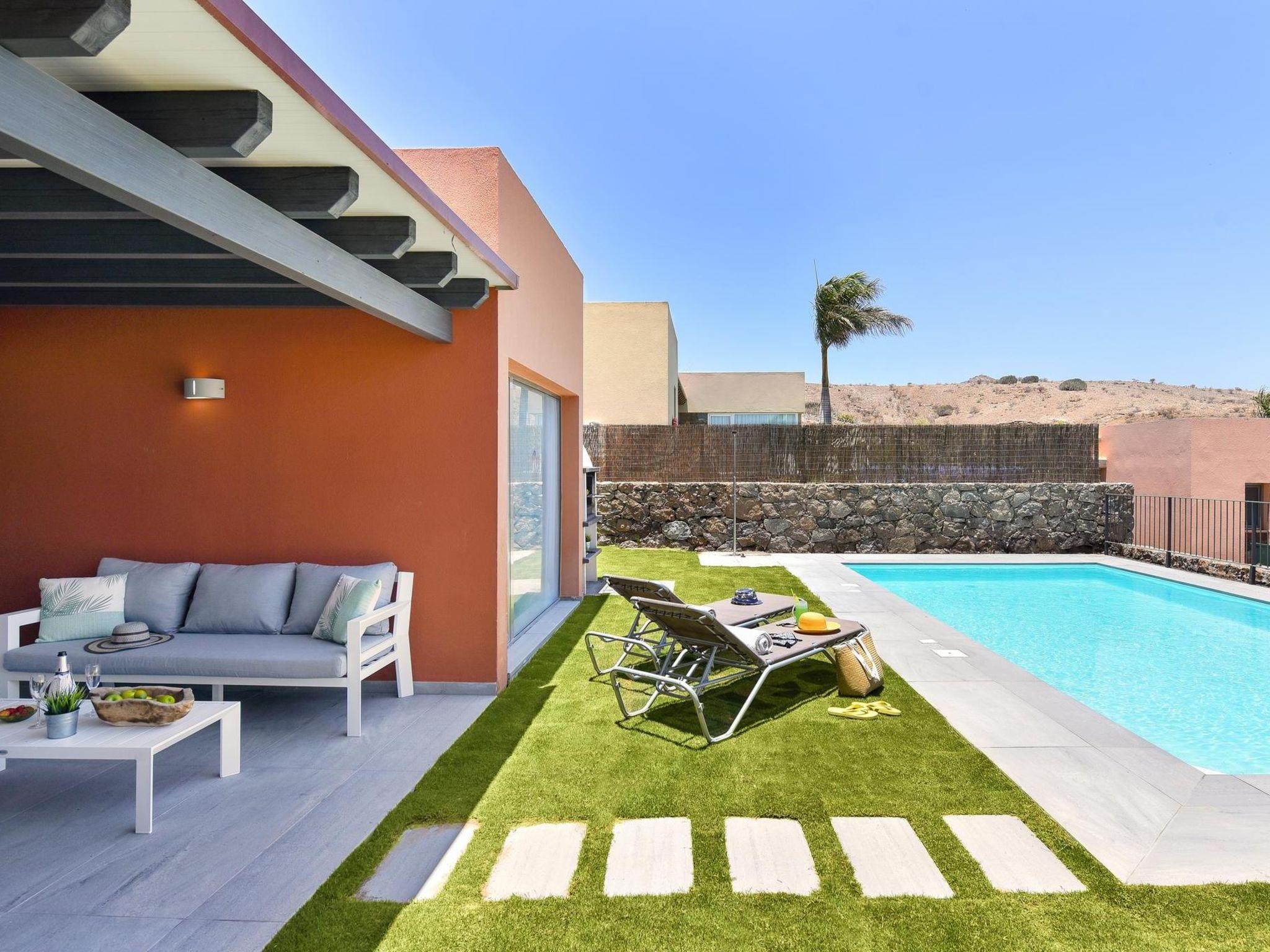 Modern, comfortable villa "Par4 Villa 10". Above Salobre Golf Resort, on the outskirts Maspalomas 5 km, outside the resort Meloneras 7 km, in a quiet, sunny, elevated position in the residential district. Private: garden 80 m2 (fenced) with lawn, swimming pool angular (8 x 4 m, depth 140 - 140 cm, seasonal availability: 01.Jan. - 31.Dec.). Barbecue, parking on the premises, public parking on the road. Shop 4 km, supermarket 3 km, restaurant 200 m, bus stop "Las Crucitas" 19 km, sandy beach 3 km. Golf course (18 hole) 500 m. The owner does not accept any youth groups. Please note: airfield 25 km from the property. Neighbourhood highly sensitive to noise. Quietness and good behaviour expected.