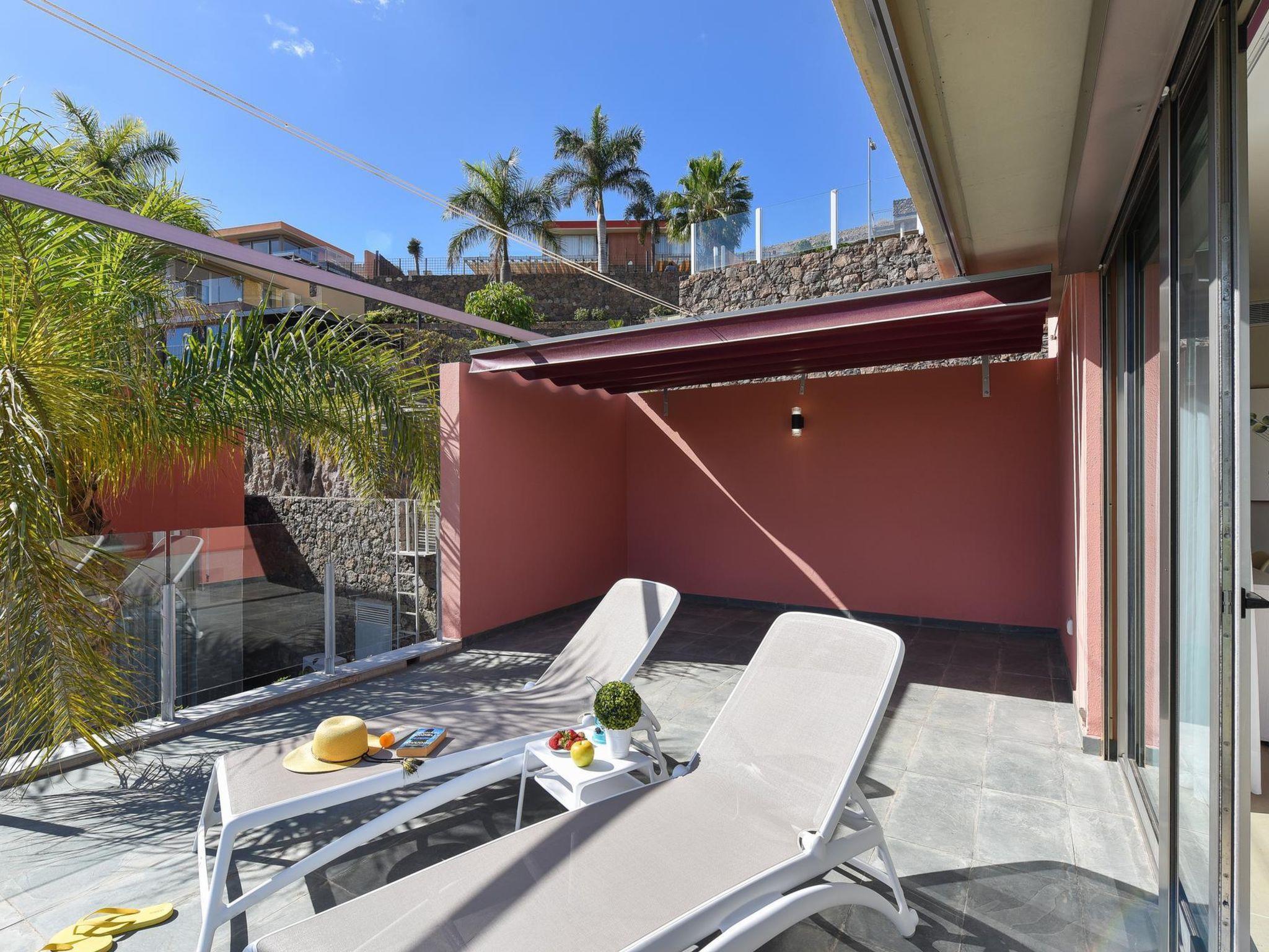"Los Dragos 13", 3-room house 120 m2. Comfortable and modern furnishings: living/dining room with dining table, digital TV and air conditioning. Exit to the patio. 1 room with 1 french bed, shower/WC and air conditioning. Exit to the patio. Open kitchen (oven, dishwasher, 1 ceramic glass hob hotplate, toaster, kettle, microwave, freezer, electric coffee machine). Upper floor: 1 room with 1 french bed, shower/bidet/WC and air conditioning. Exit to the balcony. Patio. Terrace furniture, balcony furniture, deck chairs. View of the countryside. Facilities: washing machine, safe, iron, children's high chair, baby cot for up to 2 year olds, hair dryer. Internet (WiFi, free). Parking (1 car). Please note: non-smoking house. Maximum 1 pet/ dog allowed. 2022-T13112 // Reg. Nr.: ESFCTU0000350120004893540000000000000VV-35-1-00182294