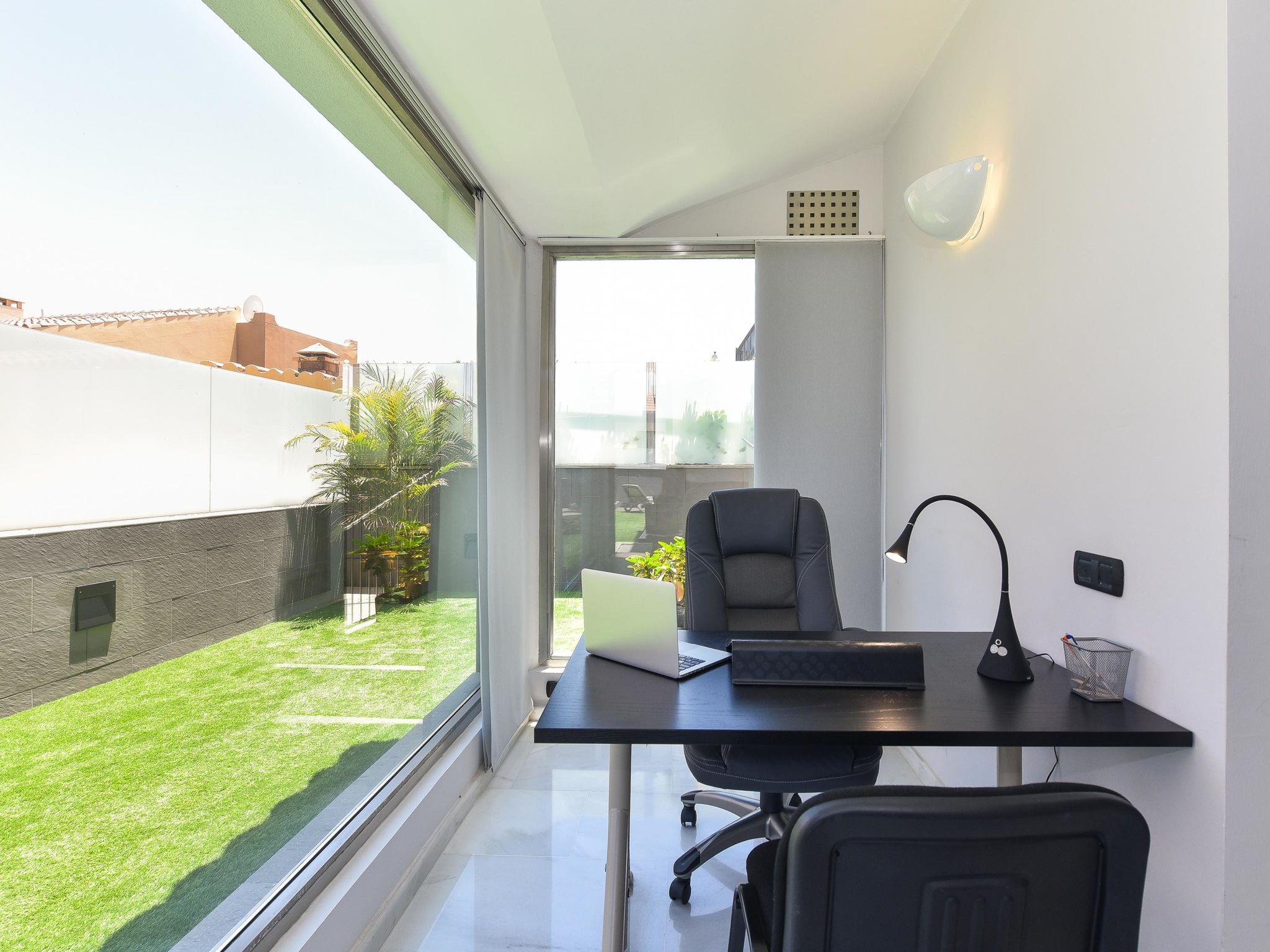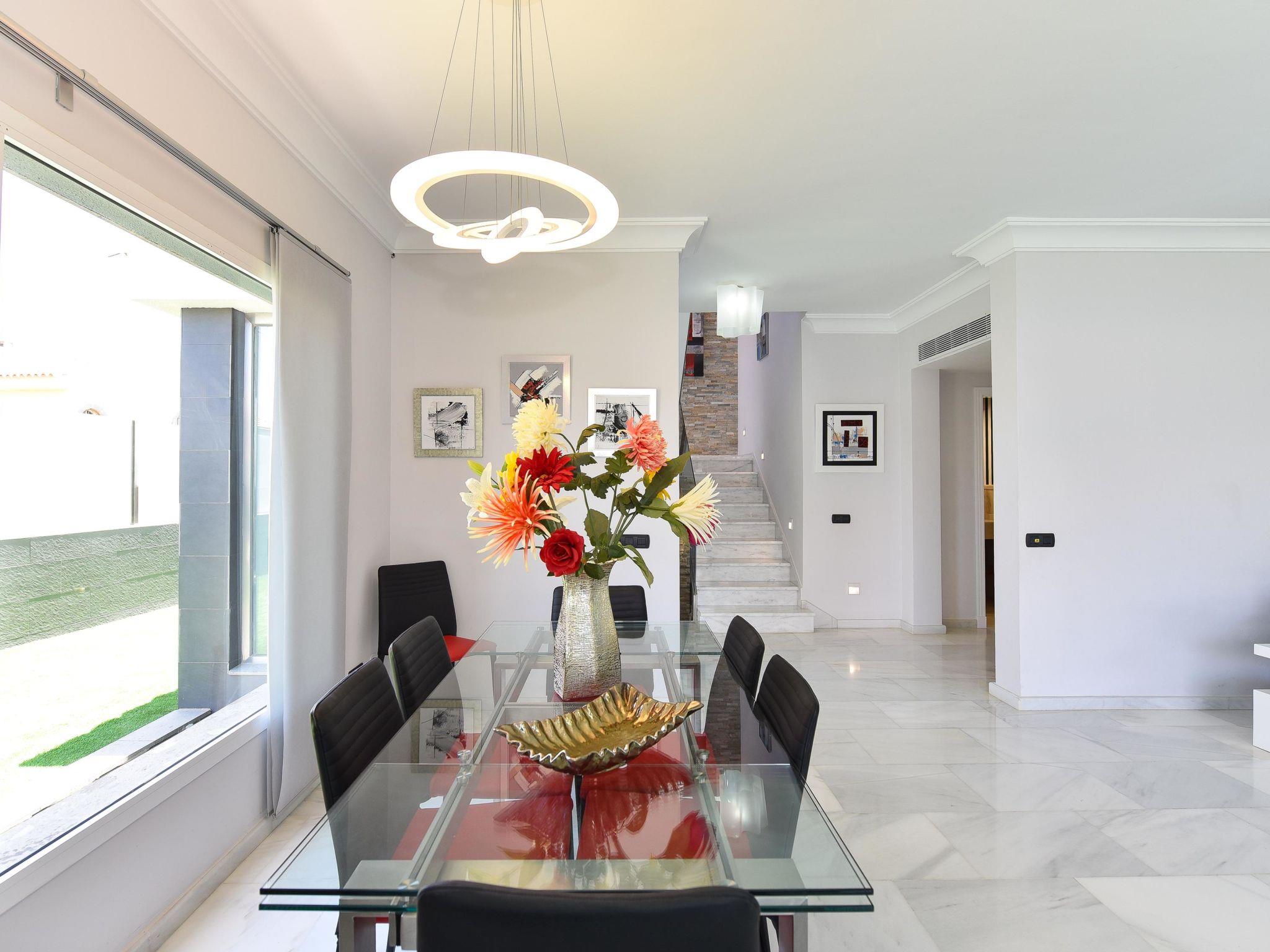 5-room house 280 m2 on 3 levels. Spacious and bright, beautiful and luxurious furnishings: living/dining room with dining nook, satellite TV, digital TV and air conditioning with 1 double bed, satellite TV, digital TV and air conditioning with 1 double bed, shower/WC, TV, digital TV and air conditioning with 2 beds, shower/WC, satellite TV and digital TV with 2 beds, shower/WC, satellite TV, digital TV and air conditioning. Kitchen). Carpet. Of the swimming pool. Facilities: washing machine, dryer, iron, children's high chair, baby cot for up to 2 year olds (extra), hair dryer. Internet (WiFi). Suitable for families. Maximum 1 pet/ dog allowed. 2019-T3368 // Reg. Nr.: ESFCTU0000350120001771140000000000000VV-35-1-00129037