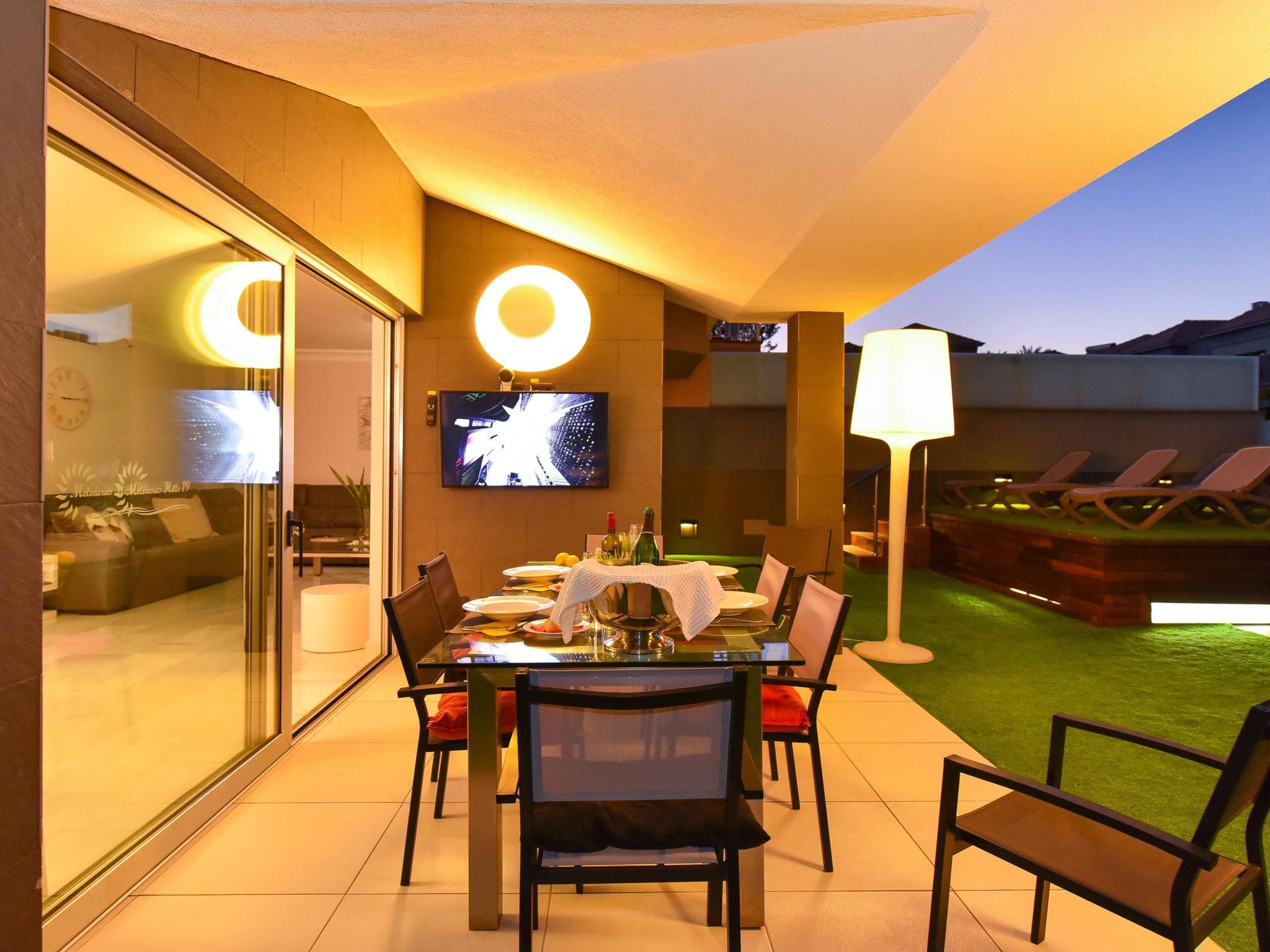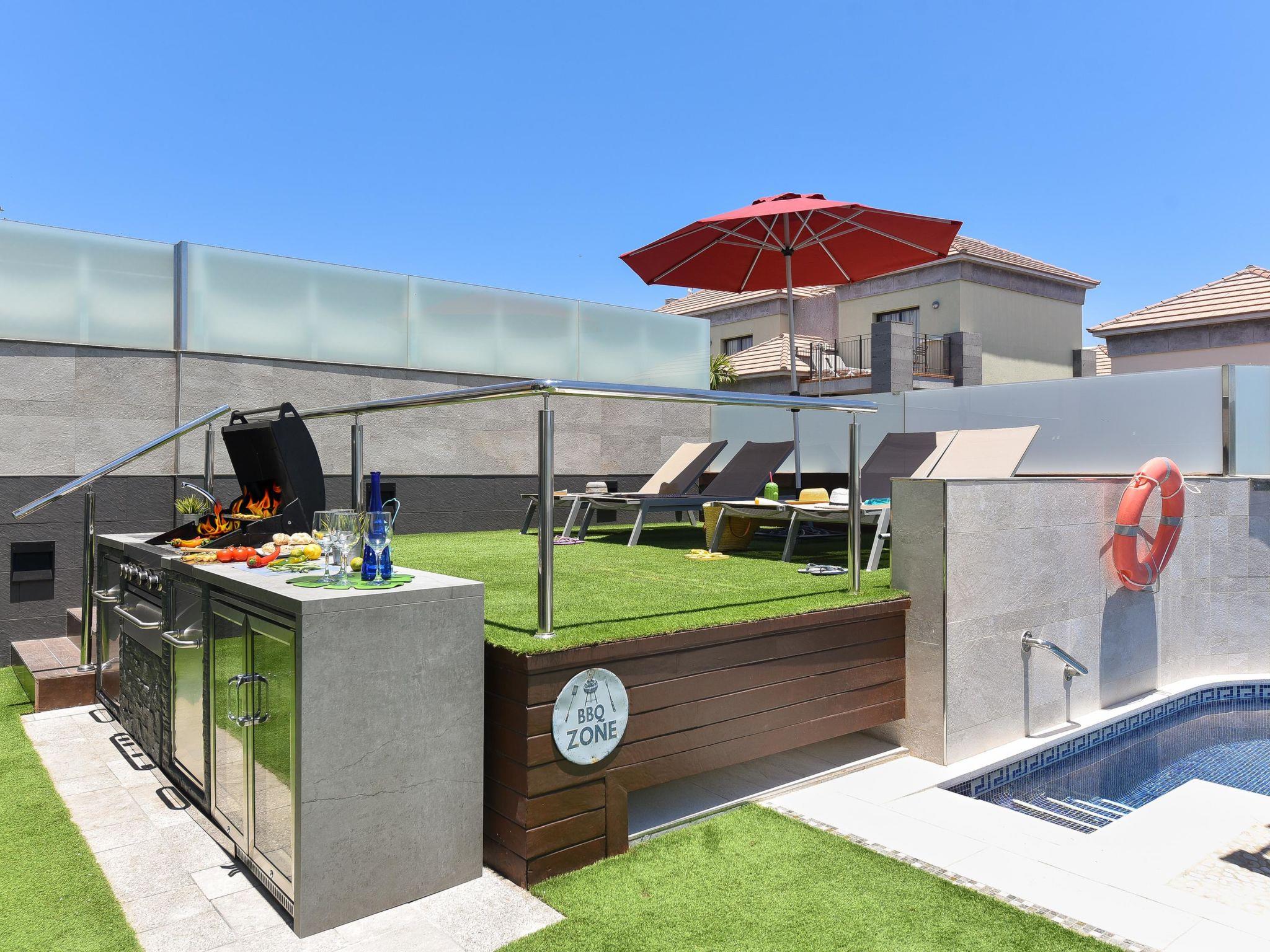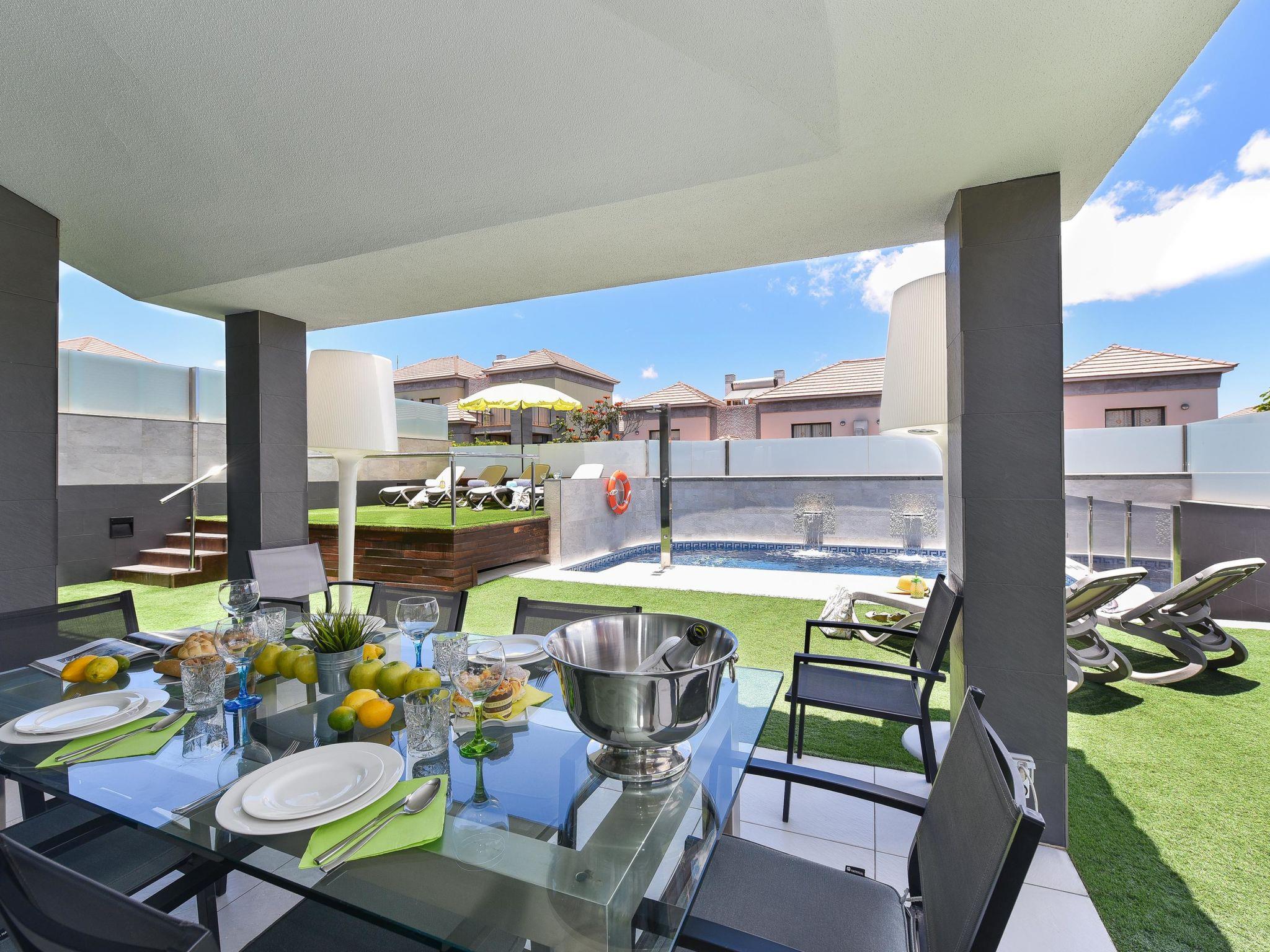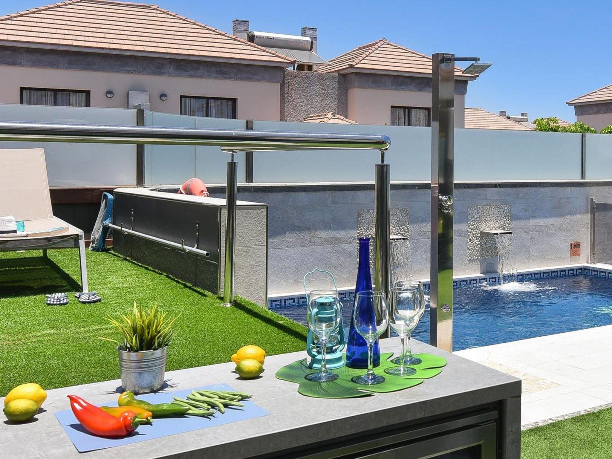 Modern, luxurious single-family house "Meloneras Hills 19". In the centre of Meloneras, on the outskirts Maspalomas, in a central, quiet position in the residential district, excellent location: right in the centre but still quiet. Private: garden (fenced), swimming pool (4 x 2 m, depth 1 - depth 60 cm, seasonal availability: 01.Jan. - 31.Dec.). Outdoor shower, parking at the house. Shop, grocery, supermarket 500 m, restaurant 100 m, bus stop "Faro de Maspalomas" 1.2 km, sandy beach "300". Golf course (18 hole) 2.4 km, tennis 500 m. Please note: car recommended. Baby equipment on request. The owner does not accept any youth groups. Airfield 33 km from the property.