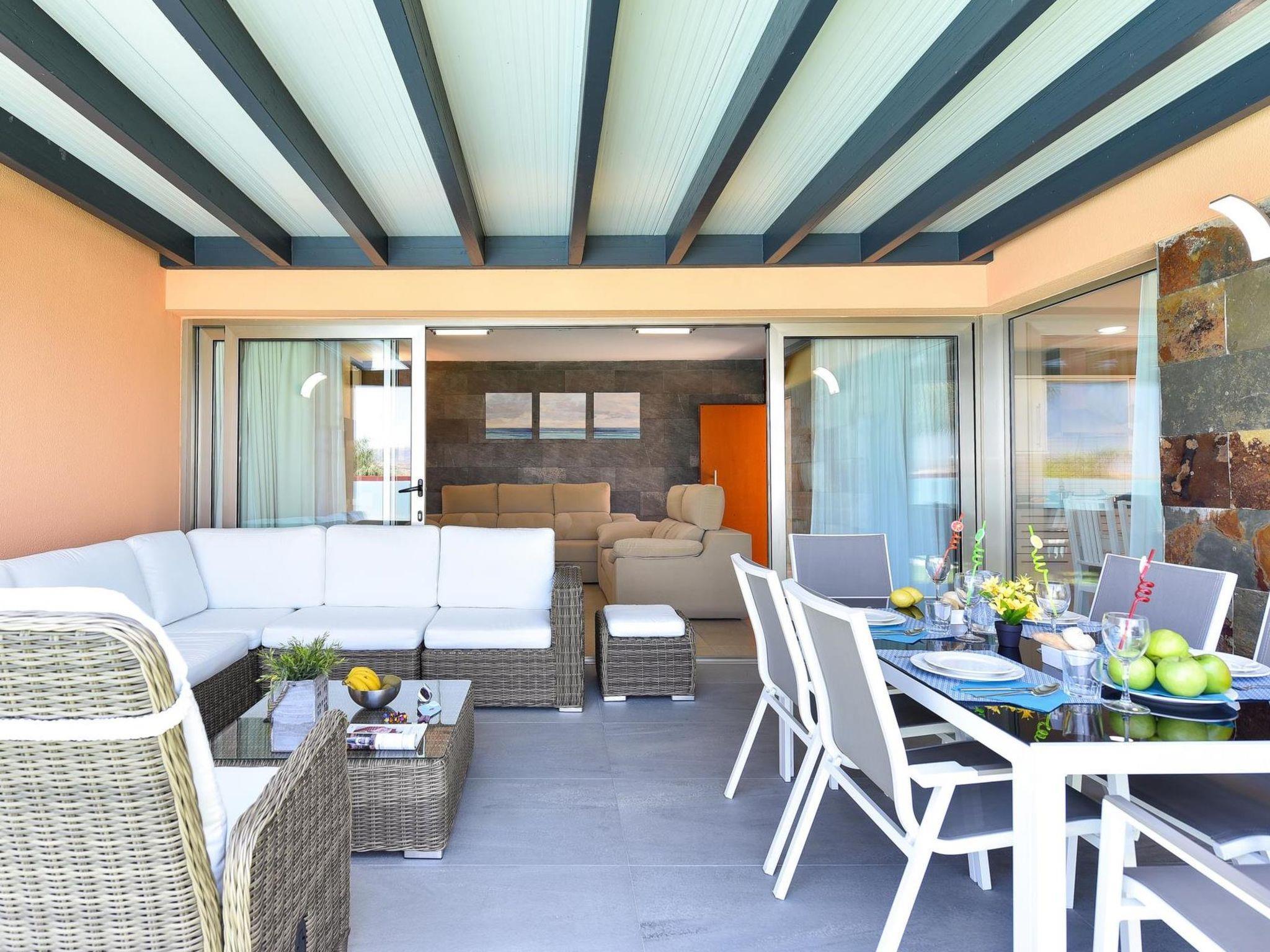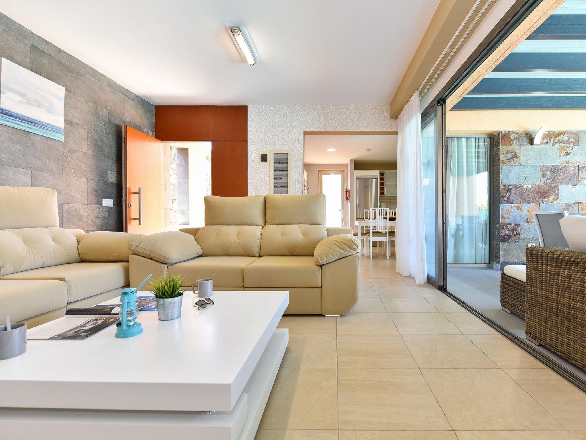 "Villa", 3-room house 90 m2. Modern and luxurious furnishings: living/dining room with 1 double sofabed, TV, satellite TV and digital TV with 2 beds with 1 double bed. Open kitchen (oven, dishwasher, 4 ceramic glass hob hotplates, microwave, freezer) with dining table. Bath/shower/WC. Parquet floors. Patio. Deck chairs (4). Facilities: washing machine, dryer, safe, iron, children's high chair, baby cot for up to 2 year olds, hair dryer. Internet (WiFi). E-charging station. Please note: suitable for families. Non-smokers only. Maximum 1 pet/ dog allowed. 2016/4696 // Reg. Nr.: ESFCTU00003501200047354400000000000000VV-35-100139486