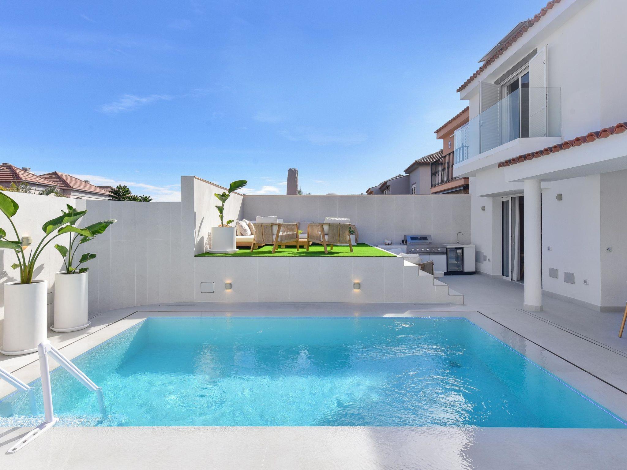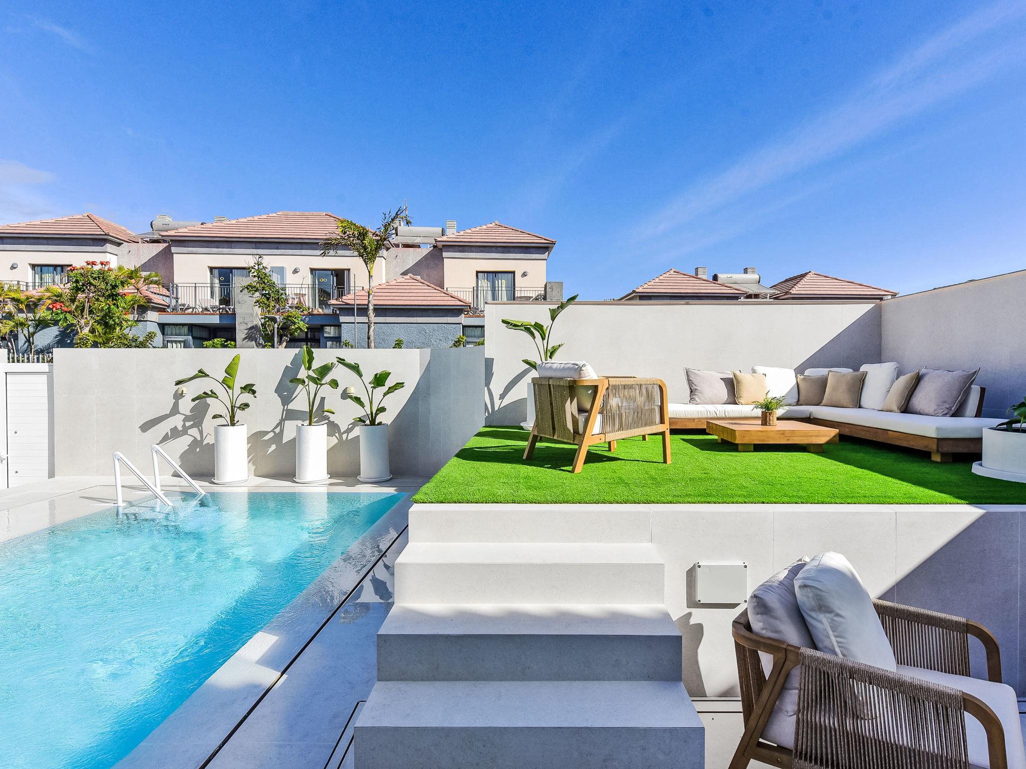 Very cosy, comfortable villa "Meloneras Hills 16". In the centre of Meloneras, in the resort de Gran Canaria, excellent location: right in the centre but still quiet. Private: swimming pool angular (7 x 3 m, depth 1 - depth 50 cm, seasonal availability: 01.Jan. - 31.Dec.). Outdoor shower, patio. In the house: internet access, WiFi, air conditioning, washing machine, tumble dryer. Roofed, parking. Bus stop "Faro de Maspalomas" 1.1 km. Object suitable for 8 adults. The owner does not accept any youth groups. Neighbourhood highly sensitive to noise. Quietness and good behaviour expected.