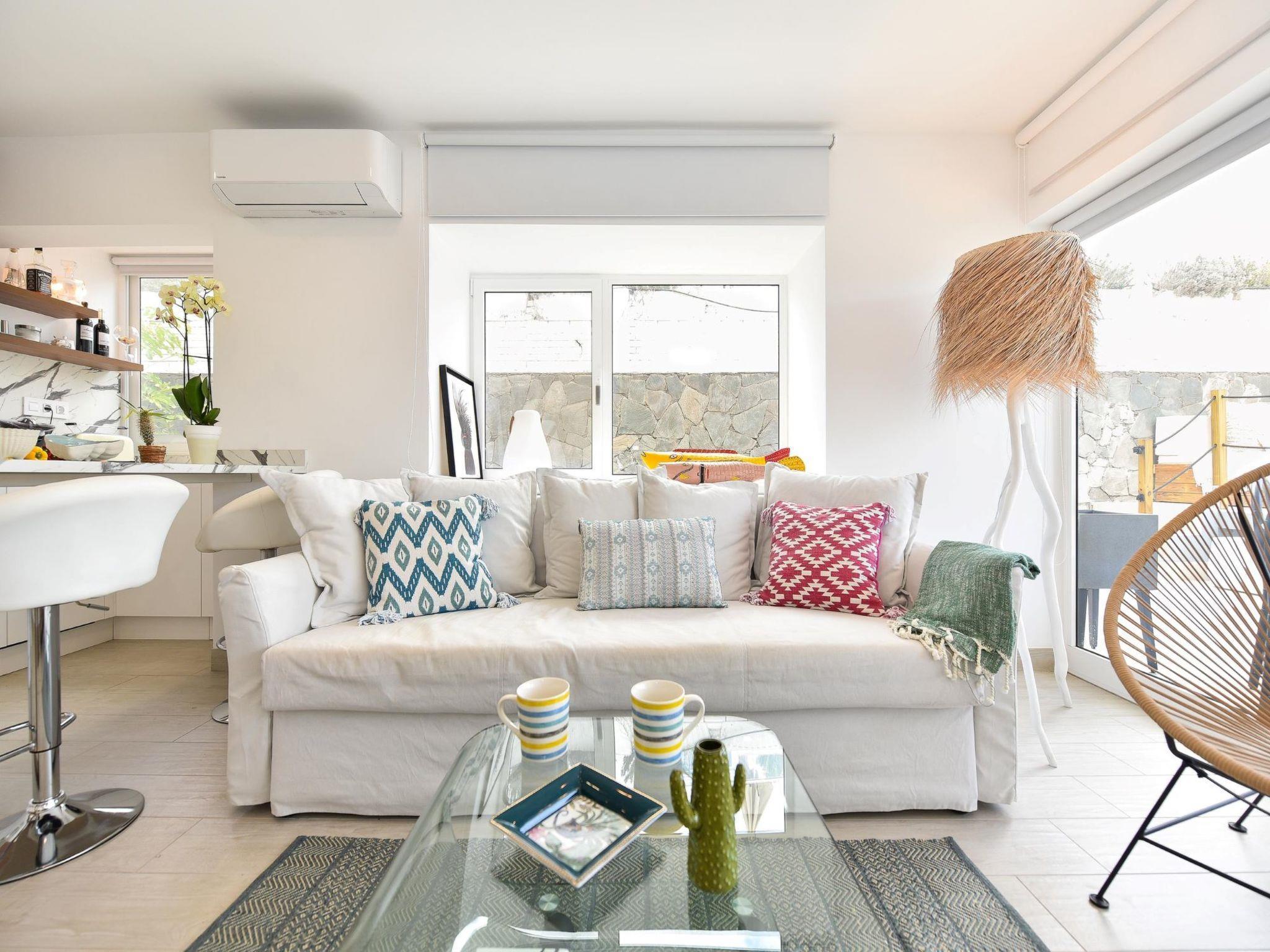 "Charca III", 2-room apartment 72 m2. Object suitable for 2 adults. Very comfortable and cosy furnishings: living room with digital TV, flat screen and air conditioning. Exit to the patio. 1 room with 1 double bed (150 cm, length 200 cm), TV and flat screen. Open kitchen (oven, dishwasher, 4 ceramic glass hob hotplates, toaster, kettle, microwave, freezer, electric coffee machine). Bath/shower. Parquet floors. Beautiful view of the sea. Facilities: children's high chair, baby cot for up to 2 year olds, hair dryer. Internet (WiFi, free). Please note: suitable for families. Non-smokers only. Maximum 1 pet/ dog allowed. 2020-T1759 // Reg. Nr.: ESFCTU0000350130005706460000000000000VV-35-1-00142355