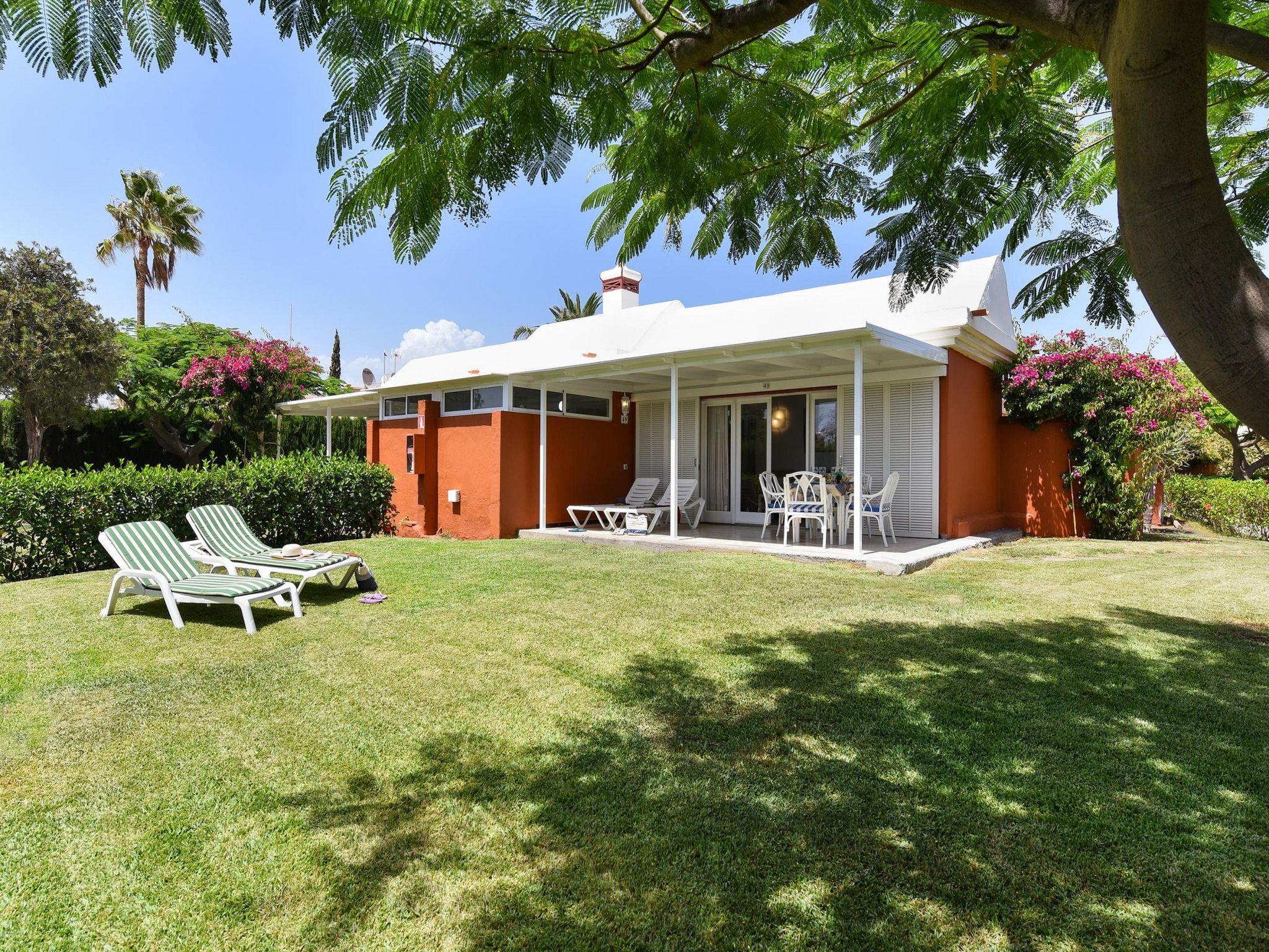 Very modern, comfortable 3-family house "Bungalow Melocotones PM49". In the resort Maspalomas, excellent location: right in the centre but still quiet. For shared use: beautiful garden to relax, swimming pool angular (seasonal availability: 01.Jan. - 31.Dec.). Outdoor shower, patio. Bus stop "AV. T.O. Neckermann" 300 m. Object suitable for 4 adults. The owner does not accept any youth groups. Neighbourhood highly sensitive to noise. Quietness and good behaviour expected.
