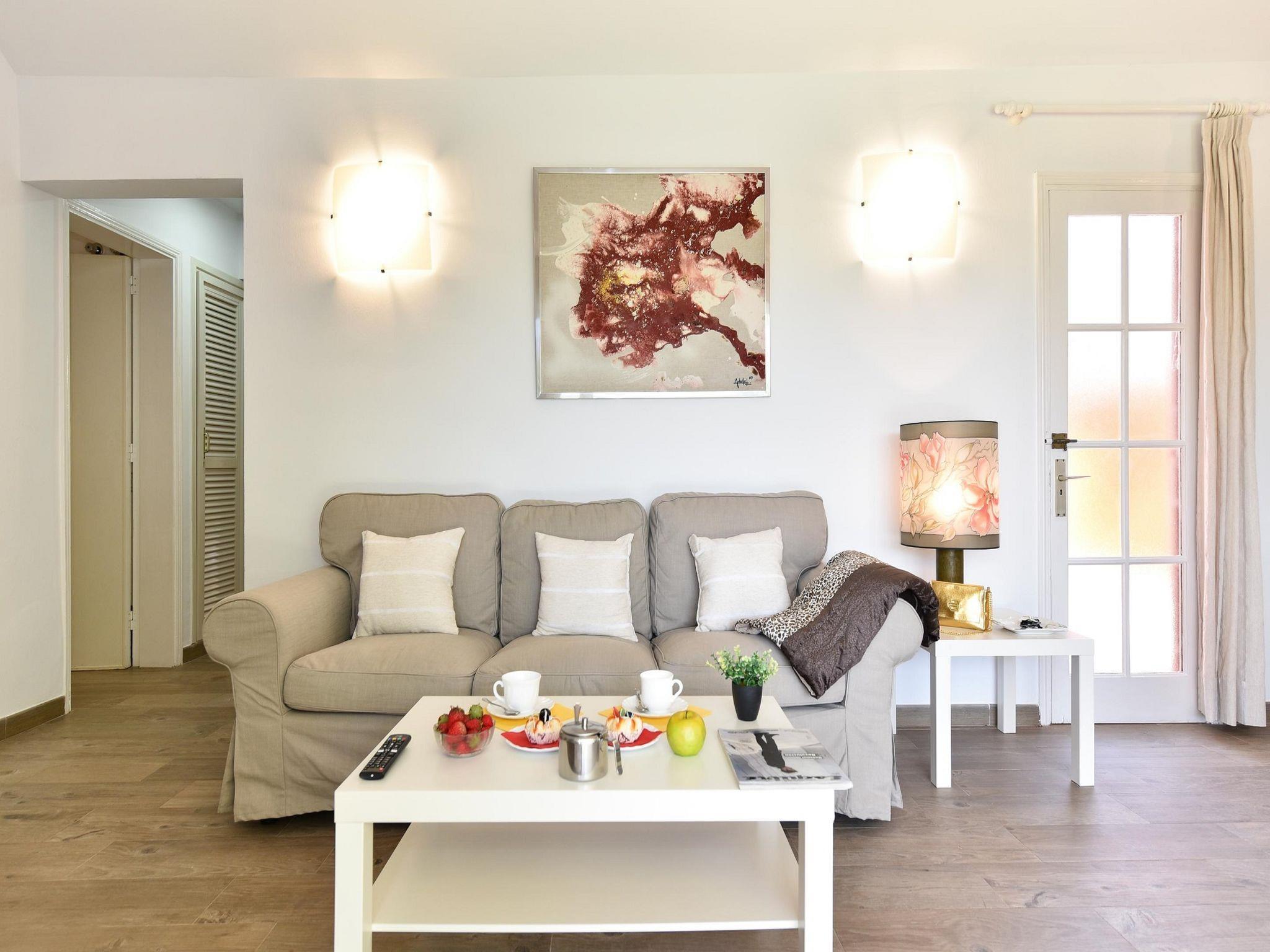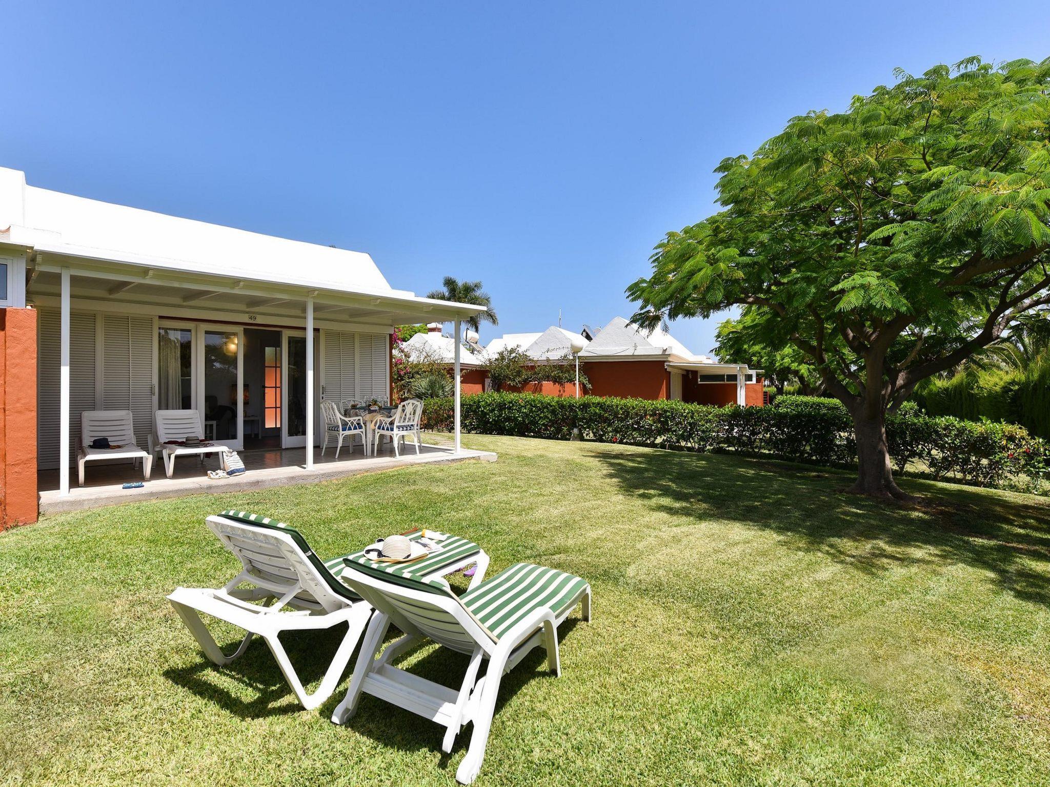 "Bungalow Melocotones PM49", 3-room villa. Object suitable for 4 adults. Very comfortable and cosy furnishings: living room with TV, flat screen and air conditioning. Exit to the patio. 2 rooms, each room with 2 beds (90 cm, length 190 cm). Open kitchen (oven, dishwasher, 4 ceramic glass hob hotplates, toaster, kettle, microwave, freezer, electric coffee machine). Shower/WC. Parquet floors. Porch. Deck chairs (2), sitting area. Beautiful view of the garden. Facilities: washing machine, dryer, children's high chair, baby cot for up to 2 year olds, hair dryer. Internet (WiFi, free). Please note: non-smokers only. VV-35-1-0015976 // Reg. Nr.: ESFCTU0000350130000023520000000000000VV-35-1-00159760