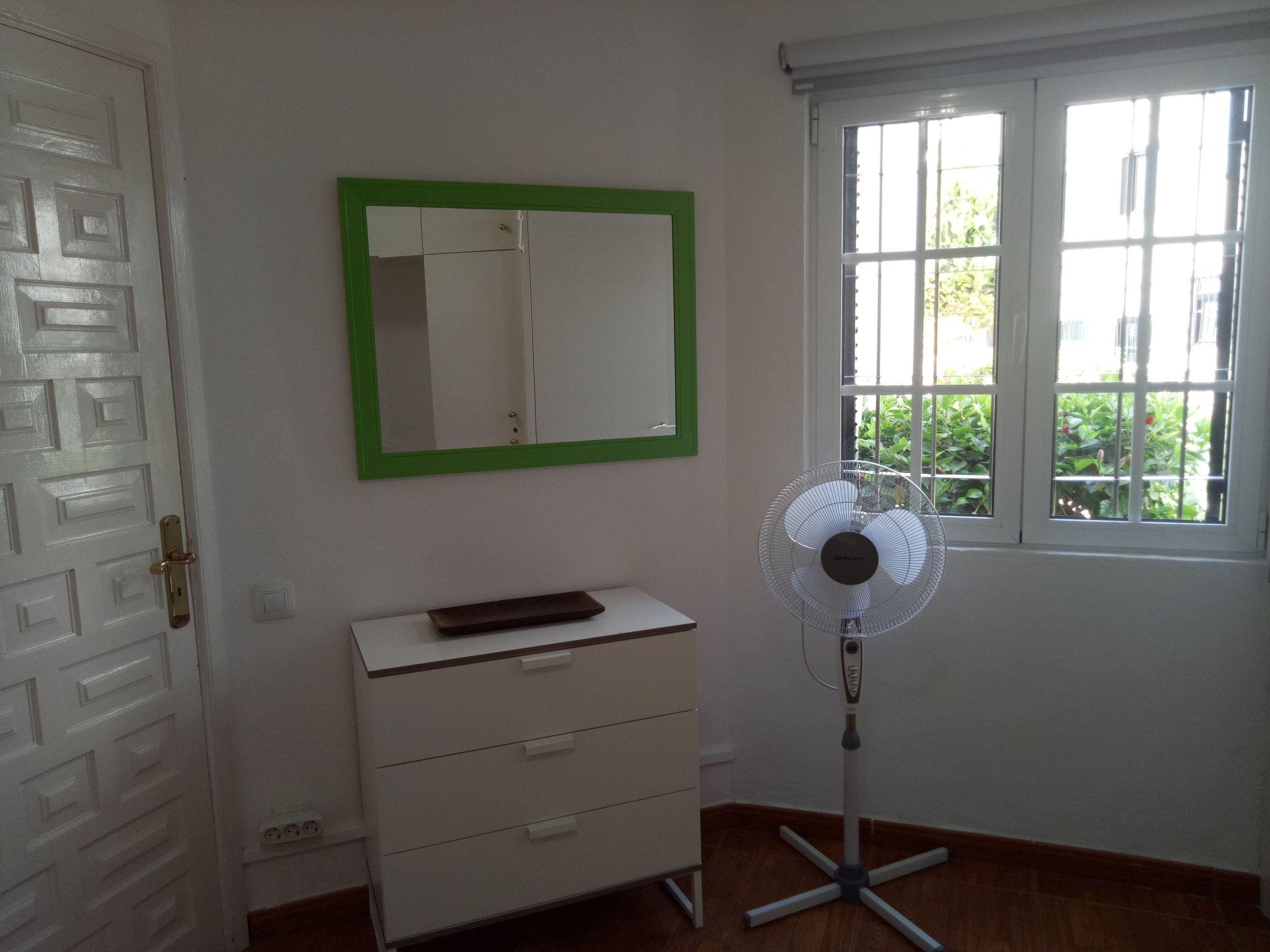 This ground floor flat has an outdoor terrace with chairs, table, sunbeds and parasol to enjoy the good weather in the south of Gran Canaria. A few metres away is the heated swimming pool surrounded by tropical gardens that separates the flat from the promenade and the beach. Inside, the bedroom has two comfortable single beds, built-in wardrobe, mirror, safe and exterior window with blinds. The bathroom has a shower with shower screen, washing machine, hairdryer, several sets of towels and shower gel. The living room has a sofa bed, dining table and chairs, a coffee table, 32" LED satellite TV and free WIFI. The living room is separated from the terrace by large windows with blinds that provide plenty of natural light during the day and direct views of the garden and pool area. The kitchen is equipped with ceramic hob, oven, fridge/freezer, orange juicer, coffee maker, toaster, microwave, kettle, blender, crockery, cutlery and cleaning products. Being located on a ground floor this property is ideal for people with reduced mobility.