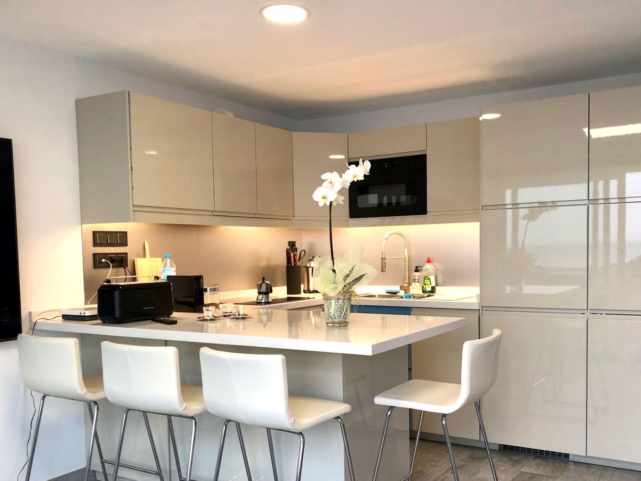 Upon entering, you're welcomed into a world where luxury meets technology. The living space boasts a centralized air-conditioning system, ensuring your comfort regardless of the external temperatures. Entertainment is guaranteed with a 4K 75" TV complemented by free Netflix, ideal for those lazy evenings in. The lights in the apartment can be controlled via an app, adding a touch of high-tech sophistication to your stay. For those who prioritize a good night's sleep, the bedroom is furnished with a high-quality mattress dressed in sumptuous satén bedlinen, ensuring a restful night's sleep.