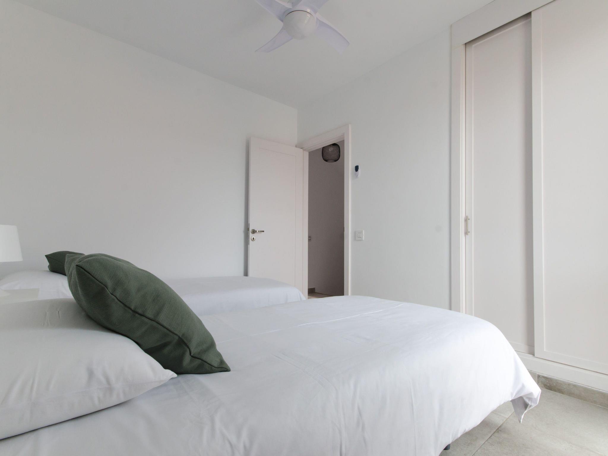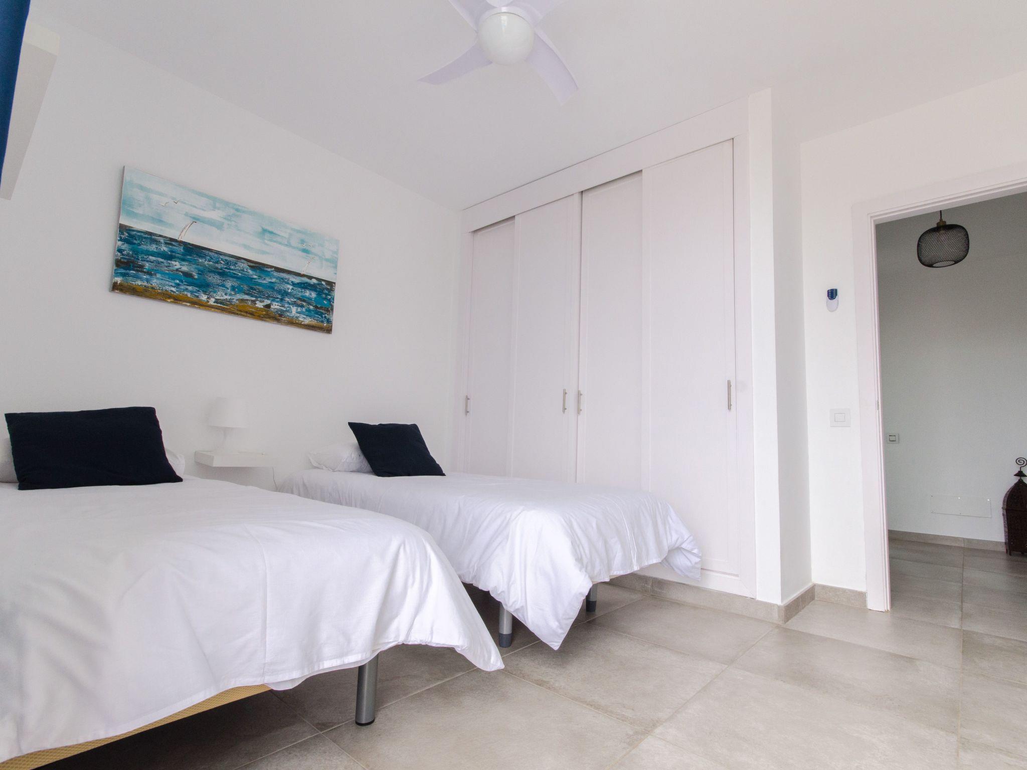 Inside, the villa boasts a modern design, having been completely rebuilt and refurbished to meet the highest standards of comfort and style. The extensive master bedroom with an ensuite bathroom and large walk-in closet guarantees a luxurious stay, while two additional bedrooms, each with twin beds, make it an ideal choice for families or groups. The fully equipped kitchen caters to all your culinary needs, and the air-conditioned living room is the perfect space for relaxation. Complimentary amenities such as free wifi, Smart TV, cot, and high chair upon request, enhance the convenience of your stay.