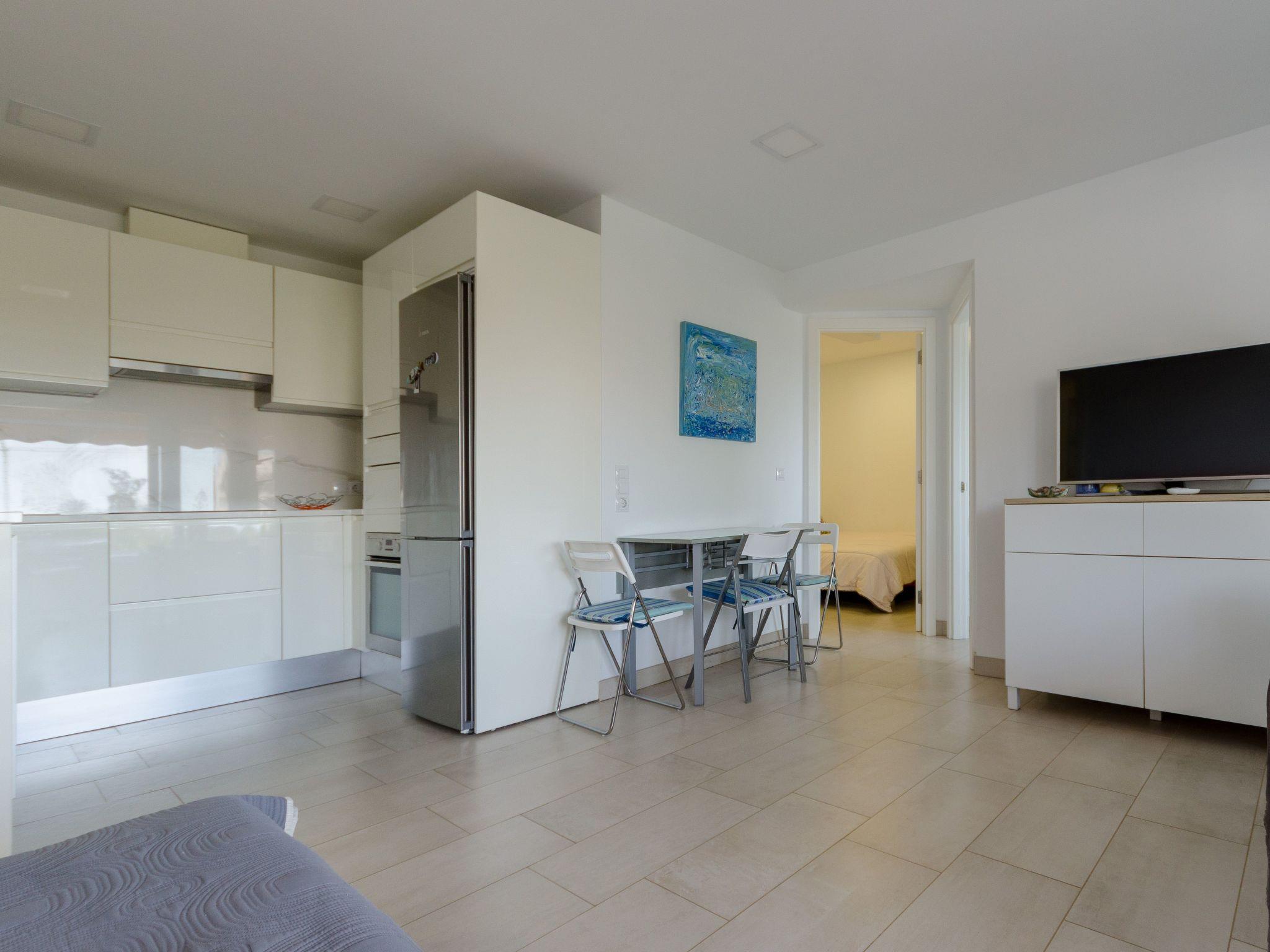 Step outside onto the balcony to soak in the mesmerizing sea views, an idyllic backdrop for al fresco dining or simply enjoying a moment of tranquility. The apartment is part of a coveted private resort, which includes a reserved parking area exclusively for residents. The resort is adorned with a lush garden and green areas, perfect for leisurely strolls or enjoying moments of peace in its relaxing atmosphere. Moreover, with direct access to the sea promenade through various coded gates, the beauty of the coast is literally at your doorstep.