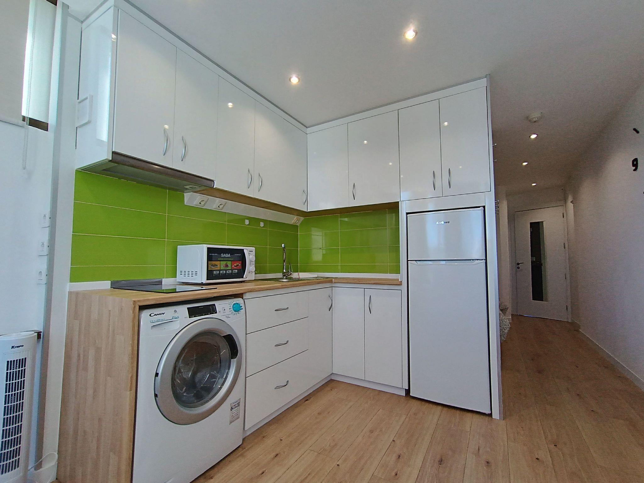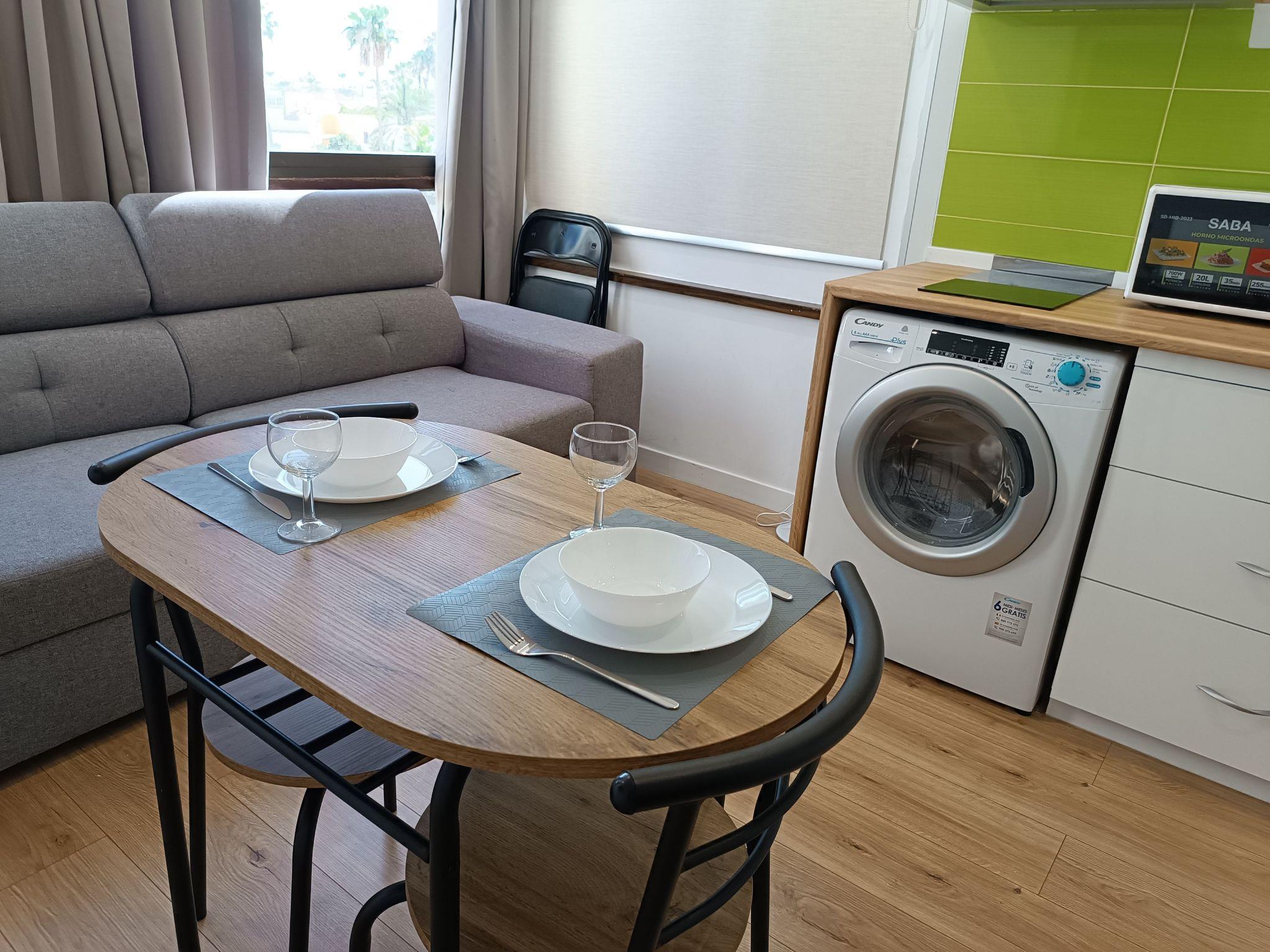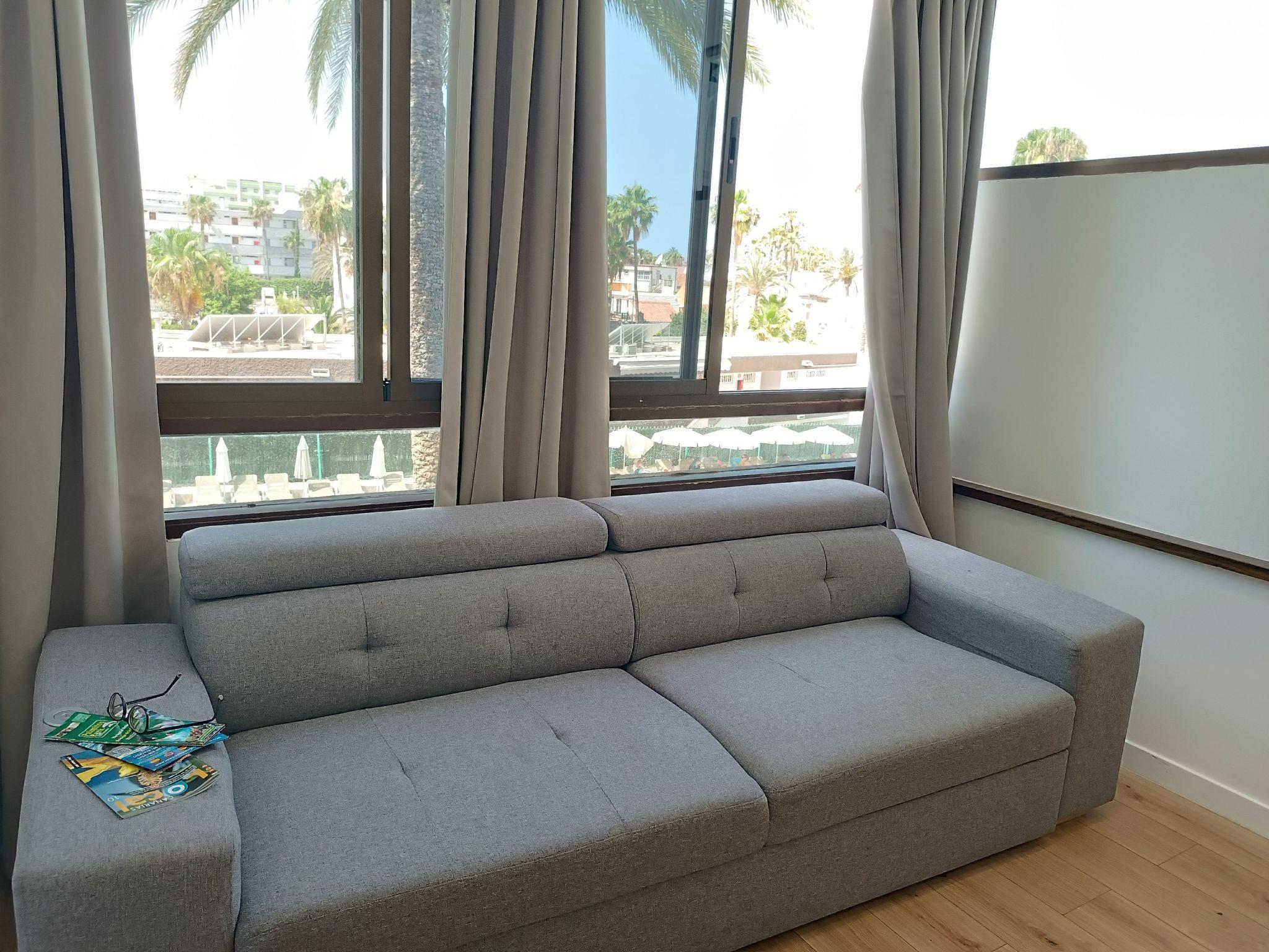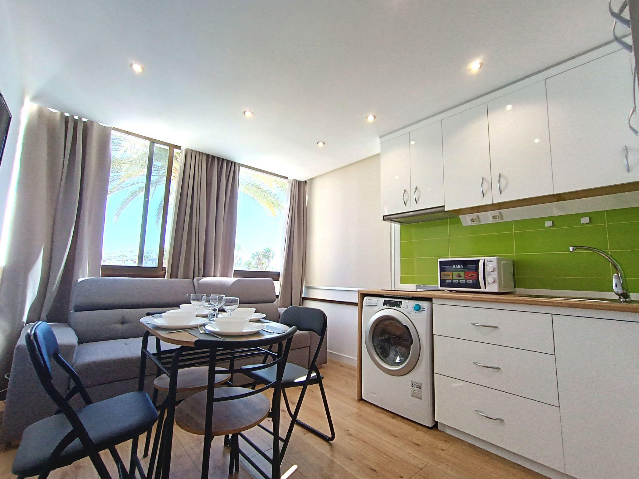 Discover this cosy studio flat in Playa del Inglés, Gran Canaria, an ideal destination for those looking for comfort, convenience and proximity to the area's main attractions. Perfect for accommodating up to 3 people, this space stands out for its luminous ambience, thanks to its large windows that provide natural light and offer lovely views of the communal swimming pool. The integration of the kitchen with the living room creates an open and welcoming environment, ideal for relaxing after a day full of exploring.