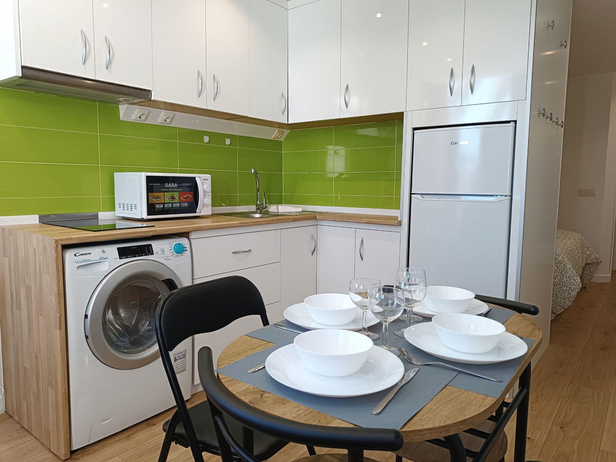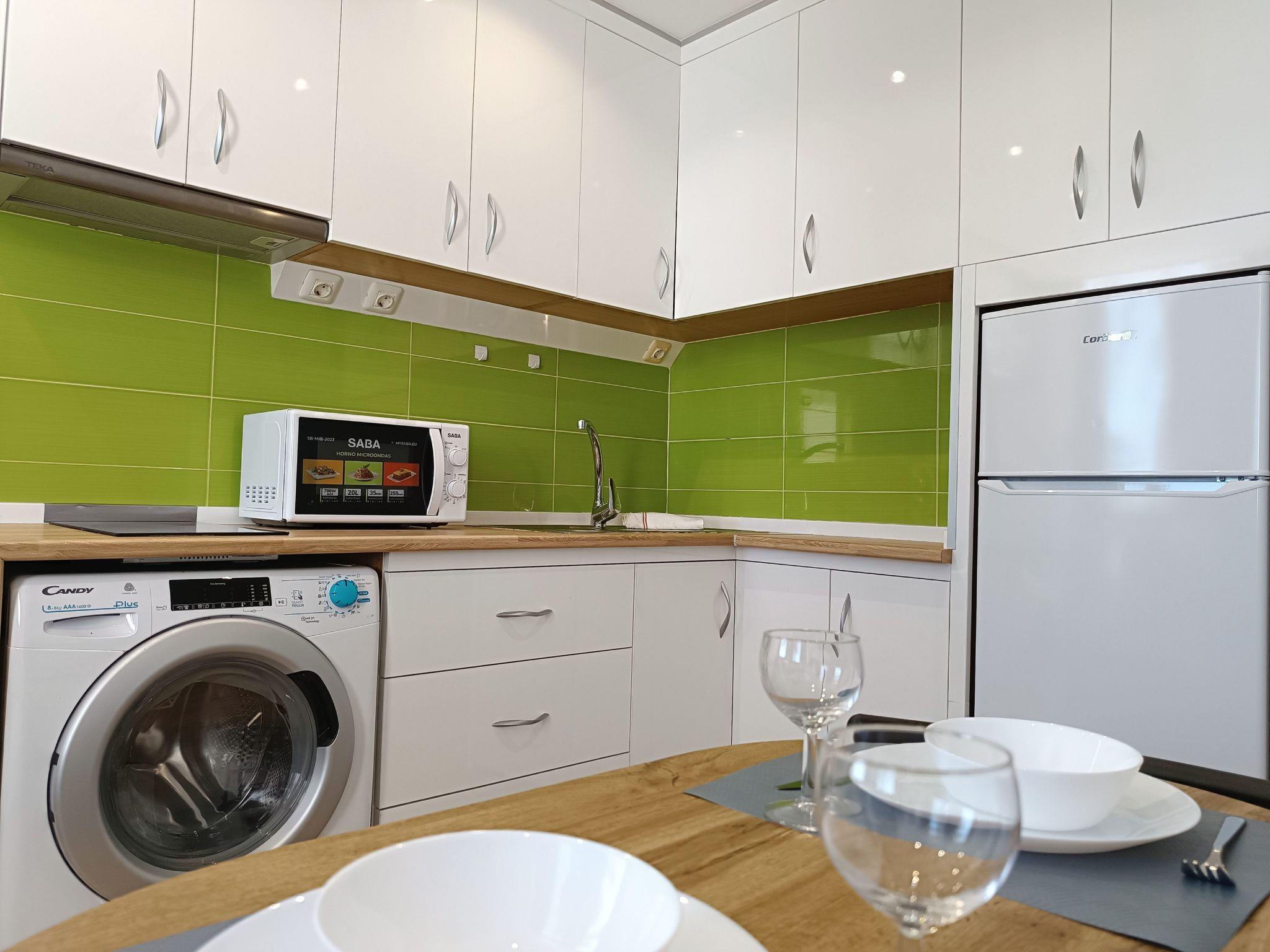 Inside, you will find all the amenities you need for a carefree stay. The kitchen is equipped with a ceramic hob, microwave and kettle, perfect for preparing light meals or enjoying a good morning coffee. In addition, the exclusive availability of a washing machine allows you to keep up with your laundry, and the presence of a fan ensures a pleasant atmosphere at all times.