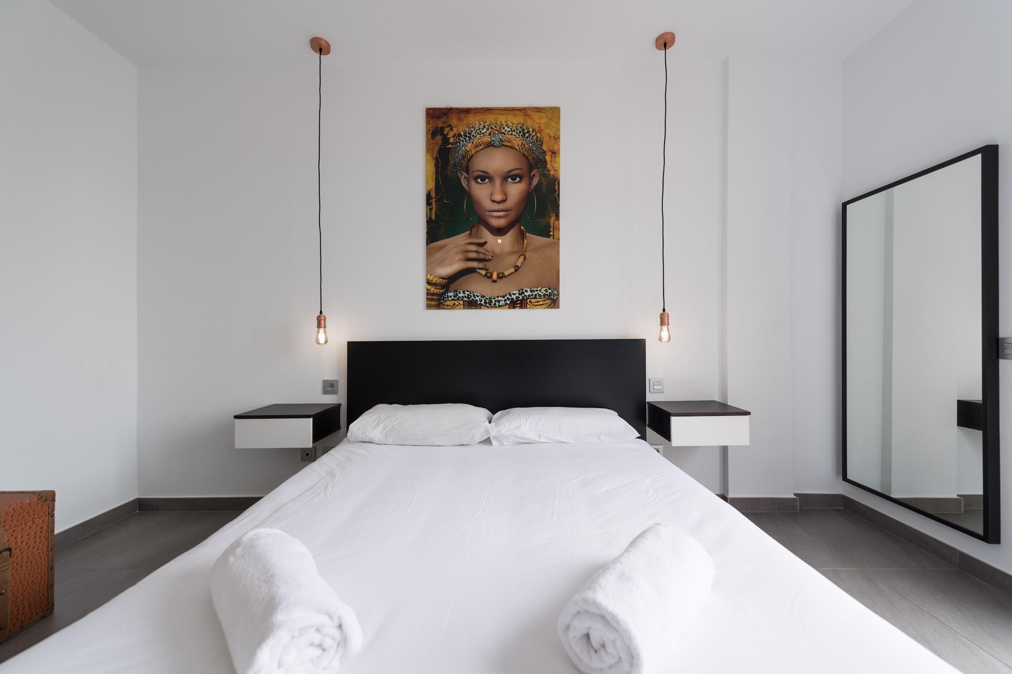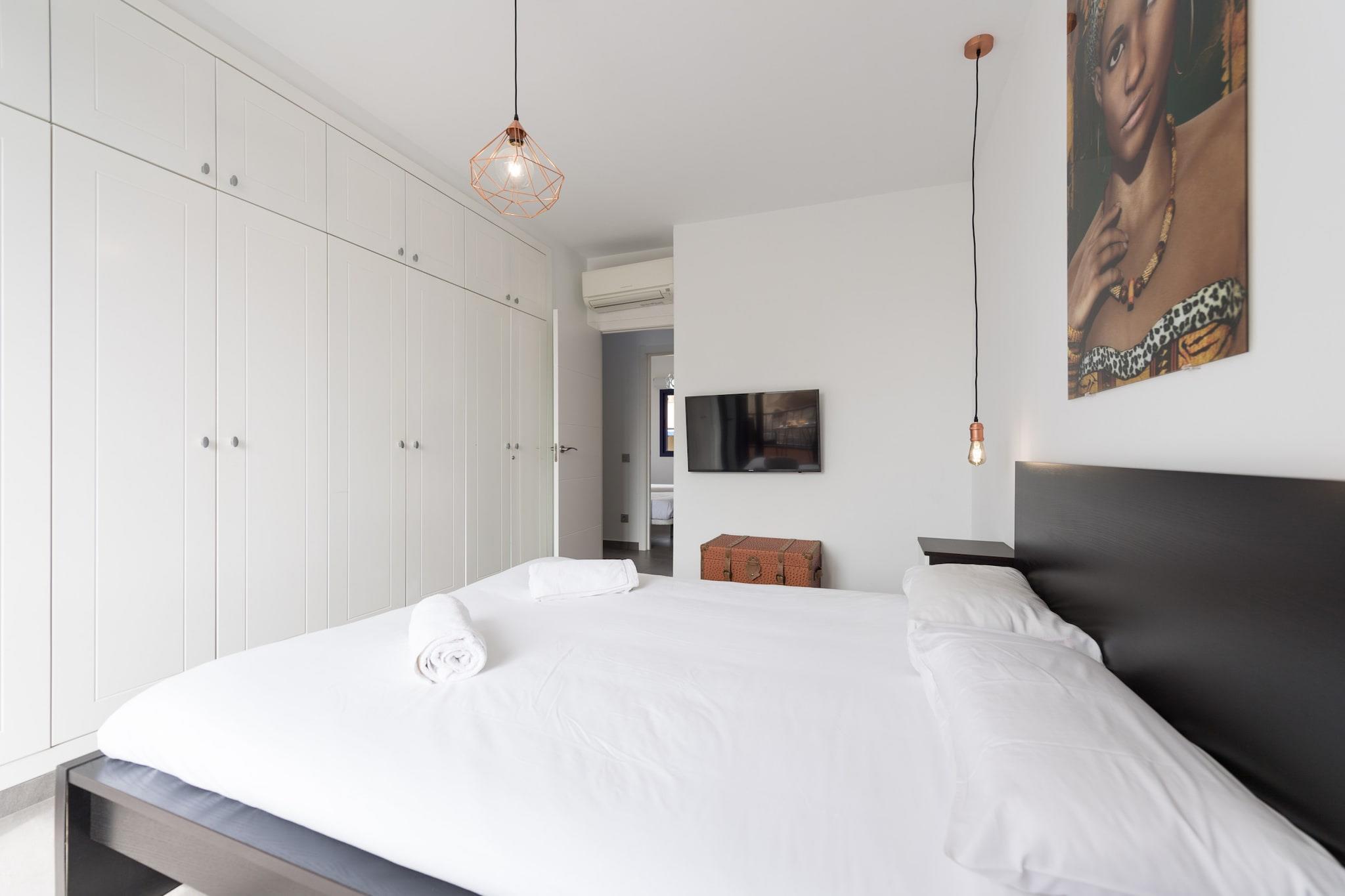 Denne moderne, fuldt renoverede duplex lejlighed tilbyder et perfekt tilflugtssted for dem, der søger komfort og bekvemmelighed ved stranden. Med to soveværelser kan det komfortabelt rumme op til 4 gæster. Ejendommen har to badeværelser, en privat pool og adgang til en fælles pool. Hvert værelse er udstyret med aircondition, smart-tv og højhastigheds-Wi-Fi, hvilket sikrer et afslappende og behageligt ophold. Hovedetagen omfatter en åben planløsning med et fuldt udstyret køkken og rummelige terrasser med liggestole, et afslapningsområde og en udendørs spiseplads med grill. Lejligheden er beliggende i det prestigefyldte Maspalomas/Meloneras-område, hvilket gør den ideel til familier eller grupper. Beliggenheden giver nem adgang til nogle af de bedste attraktioner på Gran Canaria. Meloneras-stranden ligger kun 150 m væk, og Maspalomas-stranden ligger inden for gåafstand. Gæsterne kan slentre langs den smukke promenade mod Maspalomas Fyrtårn, der er foret med restauranter af høj klasse. I nærheden finder du et indkøbscenter, supermarked og forskellige caféer og restauranter kun 300 meter væk. For golfentusiaster er der rabatter på nærliggende baner som Salobre Golf Resort og Anfi Tauro Golf. Ejendommen er også bekvemt placeret inden for en kort køretur fra lufthavnen og store shoppingområder. Lejligheden har et veludstyret køkken med køleskab, mikroovn, ovn, fryser, opvaskemaskine og kaffemaskine, så gæsterne nemt kan tilberede deres måltider. Yderligere faciliteter omfatter en vaskemaskine, strygejern og en have med møbler til udendørs afslapning.