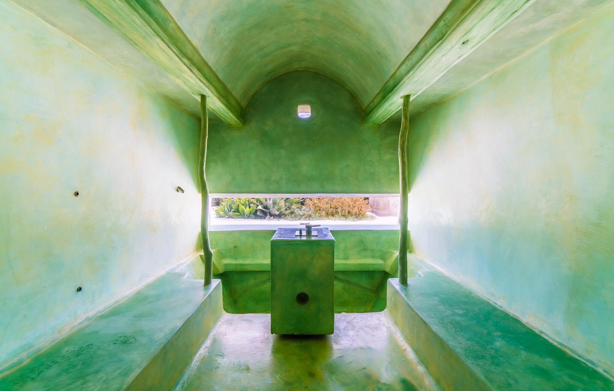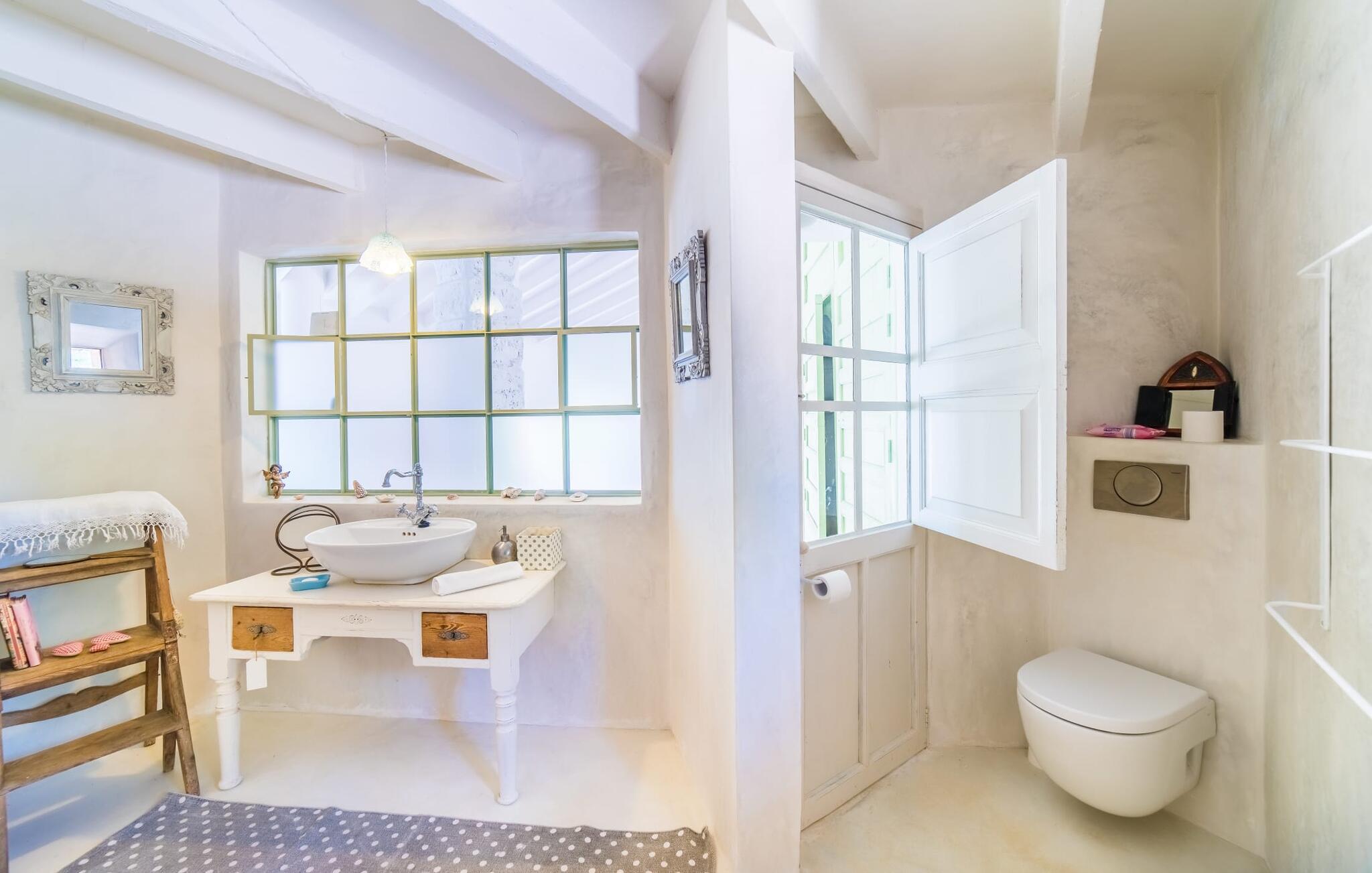 "Alle er kunstnere," sagde den tyske kunstteoretiker Joseph Beuys. Denne ekstraordinære villa er ikke kun tegnet af en af ??dem - her lod ejeren fantasien løbe løbsk både inde og ude og lavede meget af arbejdet selv - den vil helt sikkert også gøre gæsterne, der bor her, til ægte "kunstnere". I hvert fald når det kommer til kunsten at give slip. Den ret aflange "Massari" er designet som en enkelt chill-out-zone, hvor et samfund på seks "kunstnere" kan slippe dampen af ??hjertens lyst. Når familietid ser sådan ud, er det ikke kun de ældre børn, der vil elske det. Hvad andre kalder en pool er her en våd lounge: beplantet med sten og naturlige kampesten! En lavvandszone! En gangbro i træ, hvor I kan dingle jeres ben! Liggestole lavet af træ, flet og sten, til glæde for underdele af enhver art! En 29 meter lang svømmekanal, som selv de mest ambitiøse omgangssvømmere vil nyde! En udendørs bruser! Og så er der den træoverdækkede terrasse med polstrede stenbåse i Ibiza-stil og det utrolige udekøkken, perfekt til rustikke frilufts-fingerfood-fester, hvor alle kan samles om den enorme grill og servere sig selv uden bekymringer kan gøres ved at plaske med fedt. Og for at toppe det hele ligger denne eksotiske villa i et toscansk-lignende landskab i absolut fred og ro, med grønne bakker rundt omkring og kun få naboer på afstand... Og så (frivilligt, ifølge Beuys): "Lad jer selv falde, tag en masse små lur, grin meget og bad i måneskin." Det, I ser her, er enten restaureret eller specialfremstillet. Boligrummet, der åbner helt ud til poolterrassen, er en slags kæmpe kunstnerhems med designelementer lavet af muddersten; Sofaarrangementet ser ud over trægangen til poolen og videre. Polstrede alkover og mantels i sandsten, lænestole, høje hvide lofter, tæpper, kunstgenstande og samleobjekter harmonerer godt sammen for at skabe en afslappet og afslappet atmosfære. Kun stearinlys brænder i den dekorative pejs, men villaens varmesystem holder jeres fødder varme, når det er nødvendigt. Som kok har I mulighed for at holde øje med alt: lige fra galleriet til køkkenet. Men bliver rygterne for varme, kan I altid gå direkte til spisebordet udenfor. Men hvem kryber sammen med hvem under hvilket myggenet? Bag køkkenet er der tre soveværelser med enten en 1,80 meter bred dobbeltseng eller to enkeltsenge skubbet sammen; to er over for hinanden i samme højde, den anden er et par trin lavere. Selv de unikke eventyrlys har en afslappende følelse, så I kan være sikker på, at dette er et fantastisk sted at hvile og slappe af. En ting, der virkelig skiller sig ud ved dette sted, er de to badeværelser (to af dem en-suite): enten gå gennem en hjertesmykket "garderobegang" til et brusebad, der er bygget lige ind i væggen, med vinduer, der giver naturligt lys til stuen område ; Eller I kan komme ind i det overnaturlige grønne badeværelse, designet til mere end én person, hvor brusevandet kommer direkte fra loftet midt i rummet, og I kan gå ned i det store badekar. Og hvis I ikke har set nok til at stille jeres appetit på afslapning, så træn jer ind på de smalle trapper og klatre op på loftet på "Massari" - hvis nogen begraver sig i "læsehulen" deroppe, kan I finde dem glemt for en stund . Der er en verden til forskel på det rolige Sant Llorenç des Cardassar (San Lorenzo) og det meget mere turistede Cala Millor – og alligevel ligger de to steder kun få kilometer fra hinanden. Lige meget om I tager afsted fra "Massari" på egen hånd og cykler eller vandrer gennem bakkerne, eller tager på en (guidet) chopper-tur og lader jer vise de bedste badesteder og indimellem bare hopper ind - det er jeres ferie, så gør hvad I har lyst til. På den anden side supplerer familiedrevne bodegaer i små vinbyer som Petra og Ariany og barerne og restauranterne i Porto Cristo hinanden perfekt – friskfanget fisk smager dobbelt så godt med en lokal hvidvin. Det burde være mere end nok til at støtte jer på den moderat vanskelige vandretur forbi olivenlunde og fåre-græsgange til det 473 meter høje Muntanya de Calicant, hvor I vil se, at selv Mallorca selv blev skabt af en sand kunstner. Det harmoniske samspil mellem blå, grønne og jordfarver virker som farveterapi, indtil I føler, at I er en del af et kæmpe kunstværk. "Massari", en imponerende villa med en kunstnerisk sjæl og farverige møbler og dekoration, ligger blandt grønne bakker i den østlige del af øen og alligevel kun 3 km fra det rolige Sant Llorenç med sine typiske mallorcanske butikker og restauranter, supermarked og pengeautomater . Den smukke havn i Porto Cristo inviterer jer også til at udforske, mens strandene S'Illot, Sa Coma og Cala Millor (ca. 20 minutter væk i bil) byder på vidunderlige bademuligheder i krystalklart vand.