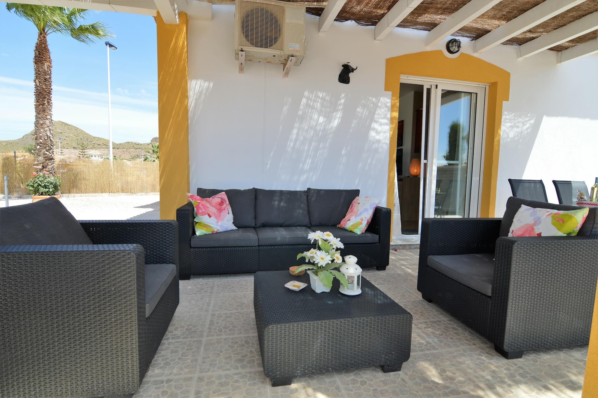 Villa Costa de la Vida nyder godt af en oval privat swimmingpool og en fantastisk udsigt på feriestedet Mazarrón Country Club og dalen. En golfbane installeres i nærheden, som vil blive overset fra villaen, når den er færdig. Der er en stor terrasse på 2 etager med liggestole og en pergola i skyggen. Villaen har alle bekvemmeligheder og luksus såsom aircondition, der bliver opvarmning om vinteren. Hele villaen er i stueetagen. Udvej er smukt beliggende i en bred dal, omgivet af grønne bjergkæder. Klimaet er meget behageligt med omkring 320 solskinsdage om året! I og omkring klubben finder du et komplet udvalg af faciliteter, sport, ro, natur og kultur. Tænk på golfbaner, strande, havne og naturparker, som Sierra Espuña (25 km; vandreture, ridning, cykling), hvor du kan støde på vildsvin! Naturområdet Sierra de las Morerras ligger også i nærheden. På selve feriestedet finder du en restaurant og forskellige svømmebassiner og tennisbaner (mod et mindre gebyr). Der er også en pendulkørsel til Mazarrón, hvilket betyder at du nemt kan få adgang til egen strandklub i Bol Nuevo nær Puerto de Mazarrón. Byen Granada er en 2 timers kørsel væk. Et smukt drev, der belønnes med den storslåede katedral og Alhambra i Granada. Cartagena (20 km), den ældste havneby i Europa og provinsen Murcia (20 km) er nærmere og er absolut et besøg værd.