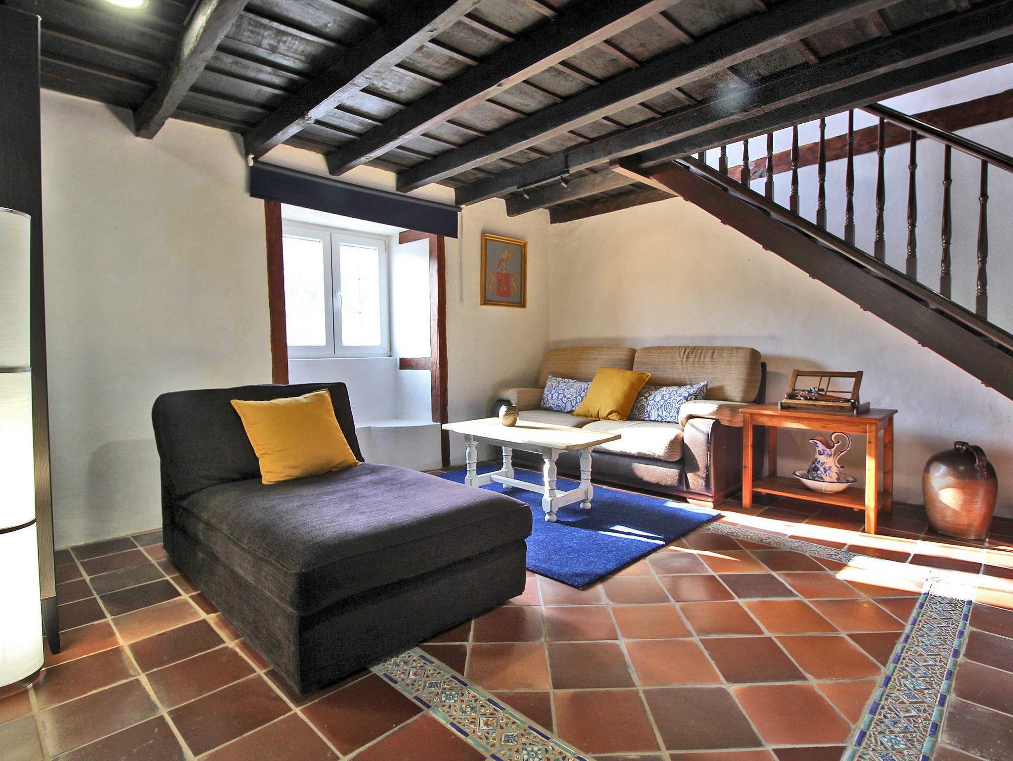 Im Wohnzimmer mit Sofa, Chaiselongue und TV befinden sich auch Bücher, darunter das Werk Arquitectura de La Palma (Architektur auf La Palma), in dem auch ein Bericht mit Fotos vom Haus zu finden ist. Vom Wohnzimmer geht das Kinderschlafzimmer ab, es hat Glastüren, zwei ausziehbare Betten, einen kleinen Schreibtisch sowie eine Kleiderstange und eine Truhe. Das schöne kanarische Erkerfenster bietet sich als Sitzplatz oder Ablagefläche an.