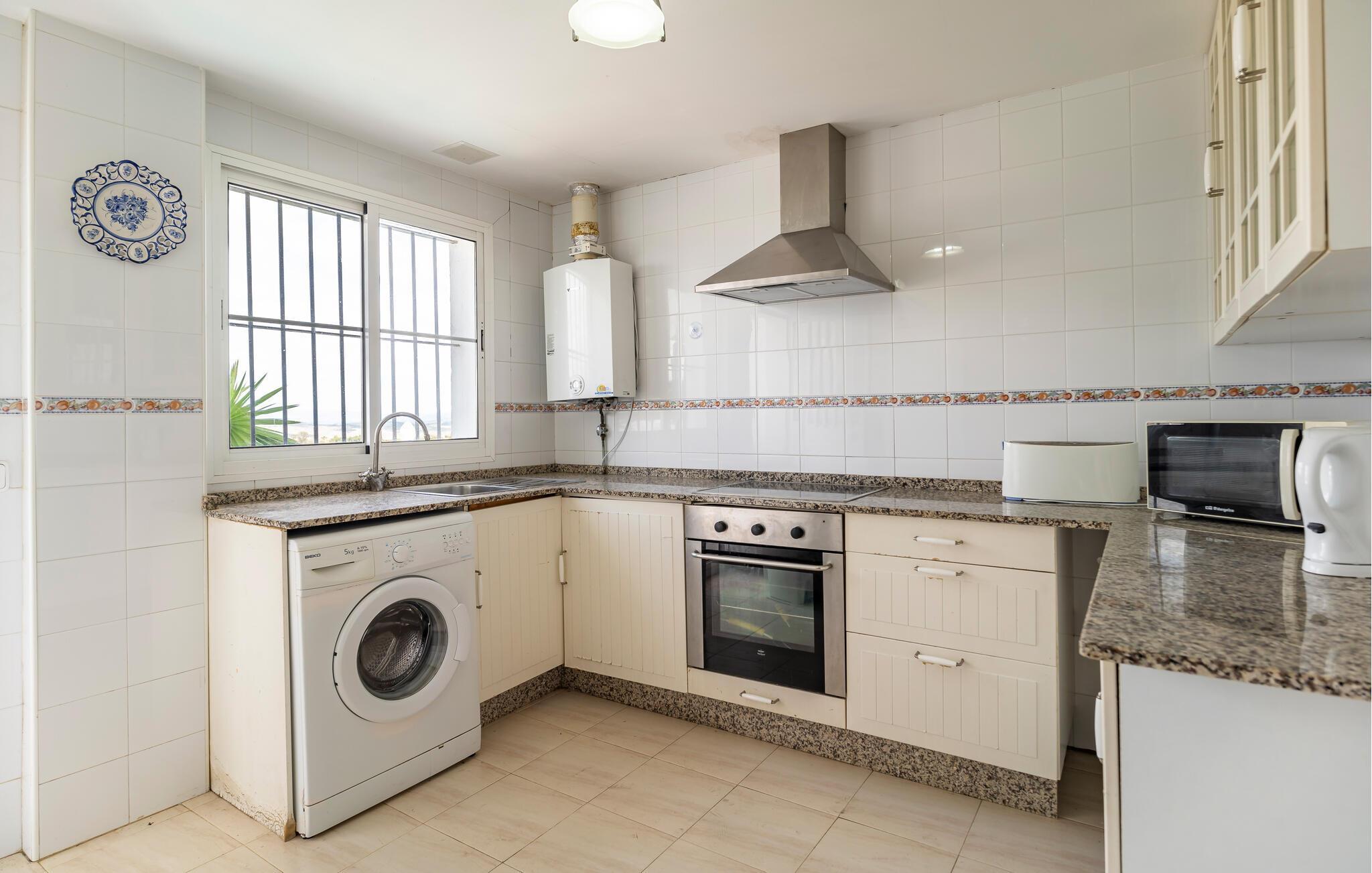 ferienhus har alt, hvad I skal bruge til et afslappende og luksuriøst ophold i Andalusien. Begynd dagene fredfyldt med en let morgenmad på den store terrasse, mens I nyder den betagende panoramaudsigt over de omkringliggende bakker. Feriehuset har en privat pool, som I kan bruge dagligt til forfriskende svømmeture og afslappende solbadning. Saml hele familien omkring det lange spisebord, hvor I kan spise, spille sjove brætspil og planlægge næste dags aktiviteter.