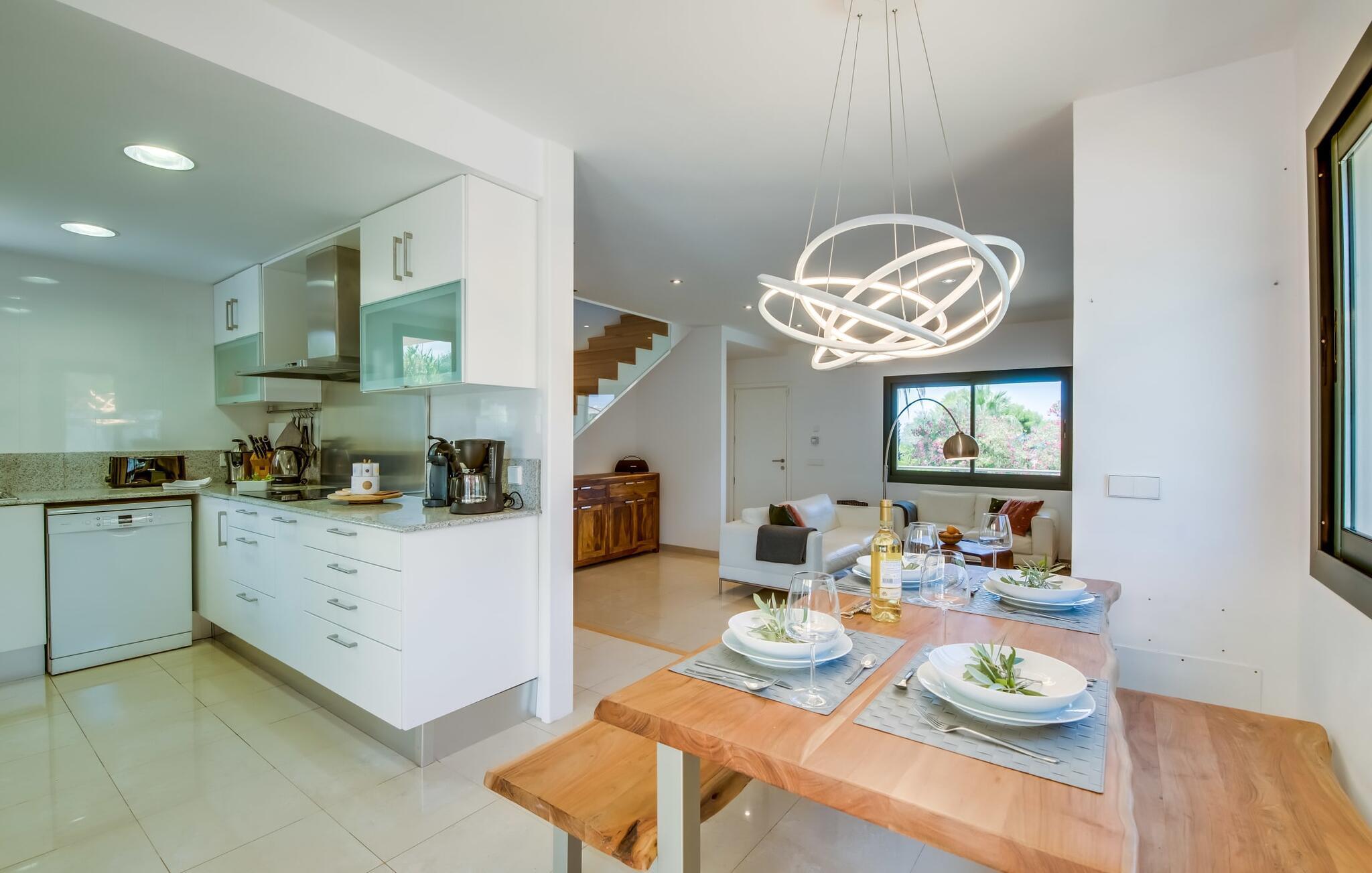 Villa "Mediterra" inviterer dig til at slappe af og nyde middelhavslivsstilen. Fra balkonen kan du nyde udsigten over det turkise hav, mærke den blide brise og indånde den friske kystluft. Dette er et feriehus i Fincallorca. For dem, der ønsker at slappe af, fører kun få skridt fra huset til den bageste terrasse med pool, perfekt til en forfriskende svømmetur. Komfortable liggestole og en moderne gasgrill venter på dig, ideel til en eftermiddag med afslapning og udendørs spisning. Nyd dine måltider ved træbordet med rattanstole og nyd de rolige omgivelser. Villaen har også en tagterrasse med en fantastisk udsigt over Alcudia-bugten og bjergene. Indenfor forbinder en stor terrassedør poolområdet med opholds- og spiseområdet i åbent plan. Den lyse, sommerlige indretning har hvide vægge, varme træaccenter og farverige kunstværker. Et moderne fjernsyn, en åben pejs og en behagelig sofa skaber en indbydende atmosfære til køligere aftener. Det veludstyrede køkken byder på alt hvad du behøver til en afslappende ferie, lige fra en mikrobølgeovn til en kaffemaskine. Med fire dobbeltværelser og tre badeværelser (to en suite) sikrer Villa "Mediterra" et behageligt ophold for alle. Den smukke, moderne finca "Mediterra" ligger i Alcúdia-bugten, i det mangfoldige østlige Mallorca. Beliggende midt i den velholdte urbanisering af Montferrutx, er supermarkeder, små butikker og gode restauranter inden for nem gåafstand. Den charmerende middelalderby Artà ligger kun 13 km væk. Stranden i Colònia de Sant Pere ligger kun 10 minutters gang væk, mens hvis du tager mod vest, vil du snart nå stranden i Son Serra de Marina.
