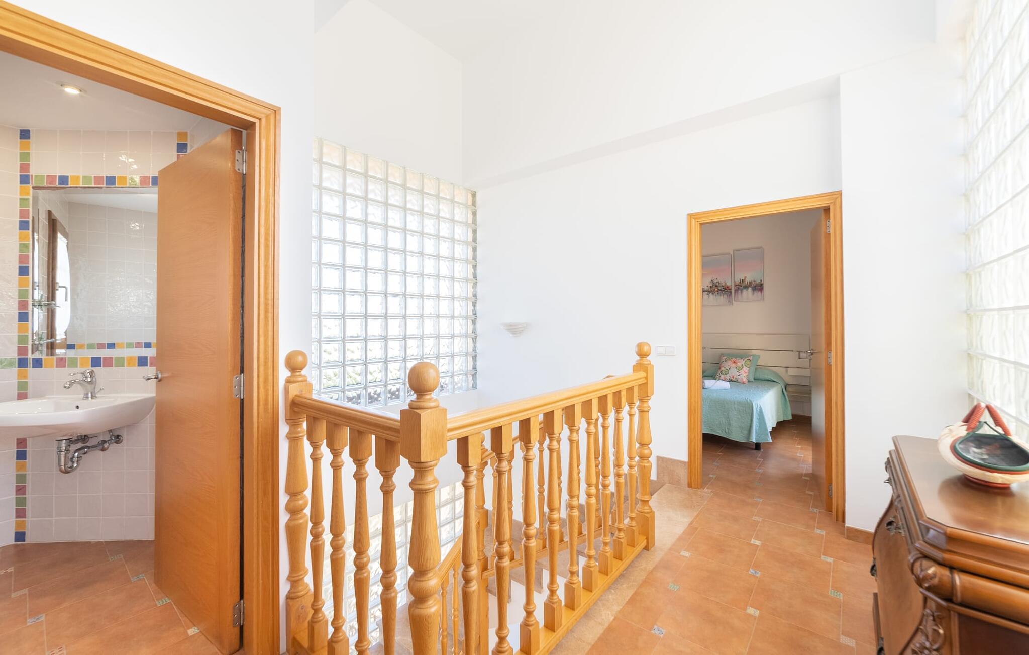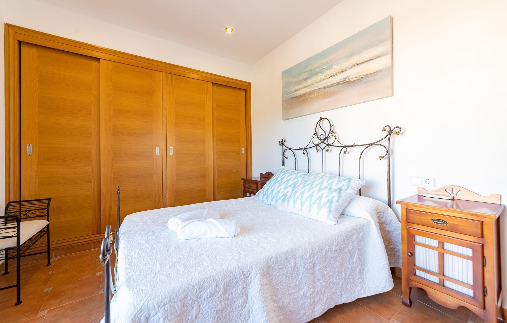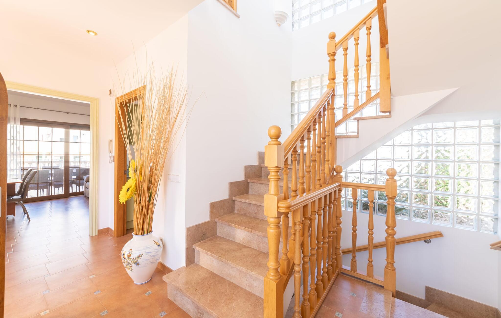 Den familievenlige ferievilla "Mes Blanc" byder på en unik strandoplevelse. Denne to-etagers bolig ligger i udkanten af ??Son Serra de Marina, kun et stenkast fra havet. Nyd den betagende havudsigt og middelhavsklimaet fra den velholdte veranda med spiseplads og muret grill til lækre al fresco måltider. Villaen har et separat spillelokale med bordfodbold og bordtennis, ideel til familiehygge. Hvis I længes efter lange gåture på stranden og bekvemmeligheden ved nærliggende restauranter og strandbarer, er denne veludstyrede villa ideel til jer og jeres familie. Indenfor skinner middelhavscharmen igennem i de lyse rum og varme farver. I stueetagen er der en rummelig opholds- og spiseplads, som er problemfrit forbundet med et fuldt udstyret køkken via en praktisk luge - perfekt til at tilberede lækre måltider, især med grillen. "Mes Blanc" byder på tre soveværelser med dobbeltsenge: et i stueetagen og to på øverste etage, hver med adgang til en privat balkon med havudsigt. Med et badeværelse på hver etage vil denne indbydende ferievilla virkelig give jer lyst til at holde ferie ved havet! Villa “Mes Blanc” er et velholdt feriehus med havudsigt terrasse og altan i top beliggenhed i den populære kystby Son Serra de Marina. Kystbyen med en lille havn ligger på den østlige del af øen og byder på shopping, restauranter og barer. Alternativt kan I tage til Artá ????eller Can Picafort eller besøge de livlige ugentlige markeder i området.