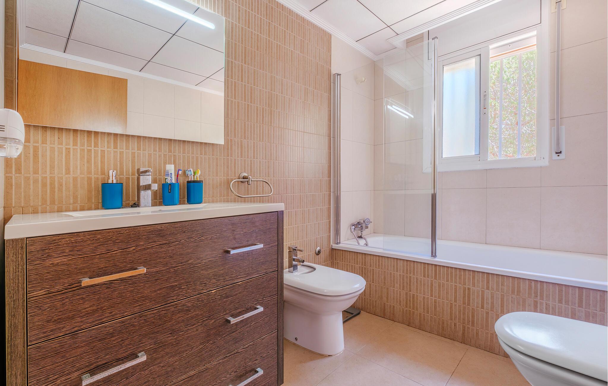Tilbring solrige dage i dette rummelige feriehus med pool og læg hverdagen bag jer. Kun en kort gåtur fra havet byder dette lyse og hyggelige feriehus jer velkommen til en afslappende ferie med familien. Tilbered lækre måltider med friske råvarer fra markedet, planlæg jeres aktiviteter over harmoniske måltider ved det indbydende spisebord, og afhold en spilleaften med familien efter en begivenhedsrig dag. En storslået, nyreformet pool venter jer på jeres rummelige terrasse, hvor I kan forfriske jer, når I har lyst. Genoplad batterierne på en liggestol og snak over lækre grillretter i den lune sommernat. Udforsk afsidesliggende bugter med stand-up paddleboarding eller kajaksejlads, nyd friskfanget fisk i Cambrils havn, eller prøv tapas i en strandbar med udsigt over havet. I Tarragona venter imponerende romerske ruiner og en livlig gammel bydel, perfekt til slentreture. For et adrenalinsus kan I tilbringe en dag i den nærliggende forlystelsespark PortAventura World – ideel for familier eller eventyrlystne.