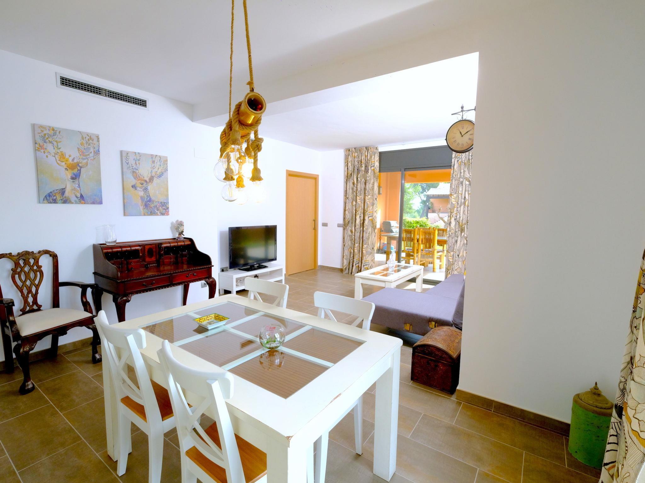 Golf Bonmont: Cosy, comfortable apartment block "Rabassades". In the resort 4 km from the centre of Miami Platja, in a quiet position, 4.5 km from the sea, 4.5 km from the beach, on the golf course. For shared use: property with lawn, swimming pool angular (20 x 6 m, depth 80 - 190 cm, seasonal availability: 01.Apr. - 01.Nov. pool opening hours: 10:00-21:00). Outdoor shower, pool maintenance by the owner/gardener, parking at the house. Supermarket 4 km, restaurant, bar 800 m, bus stop 3.5 km, railway station "Hospitalet de l'Infant" 9 km, sandy beach 4.5 km. Nearby attractions: Parque Portaventura 28 km, parque acuático Aquopolis 31 km, parque Natural del Delta del Ebro 53 km, Tarragona 37 km, Reus 30 km, Barcelona 132 km. Please note: car recommended. Groups of teenagers on request only.