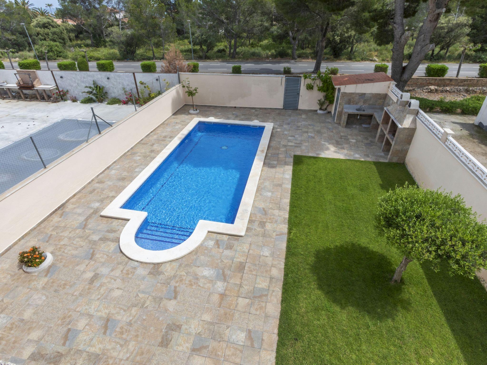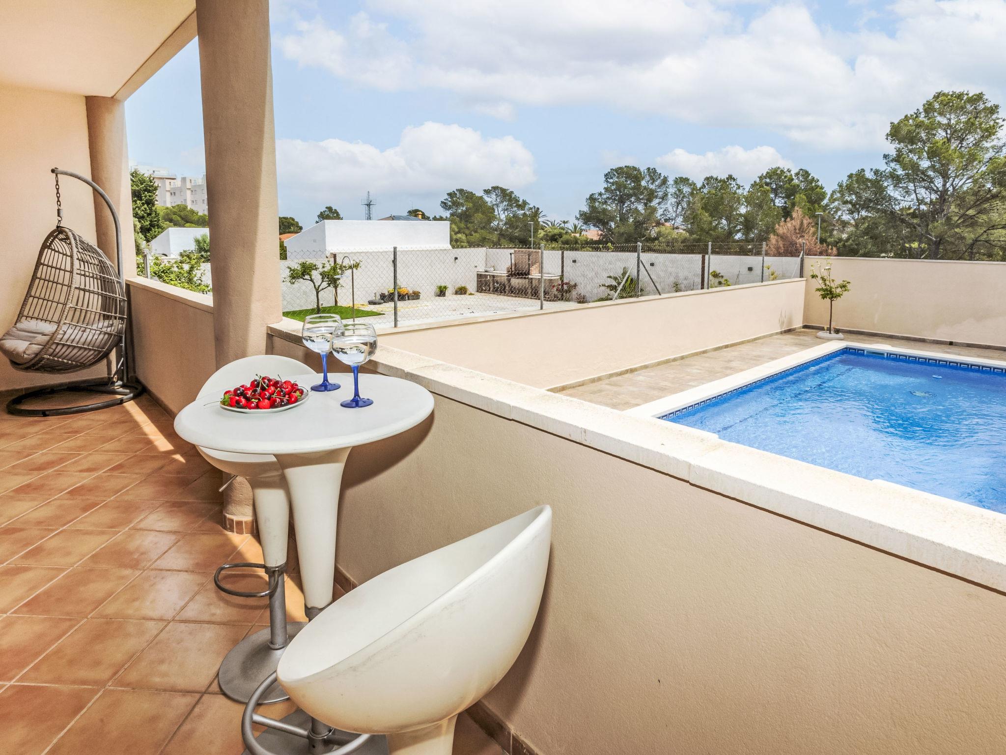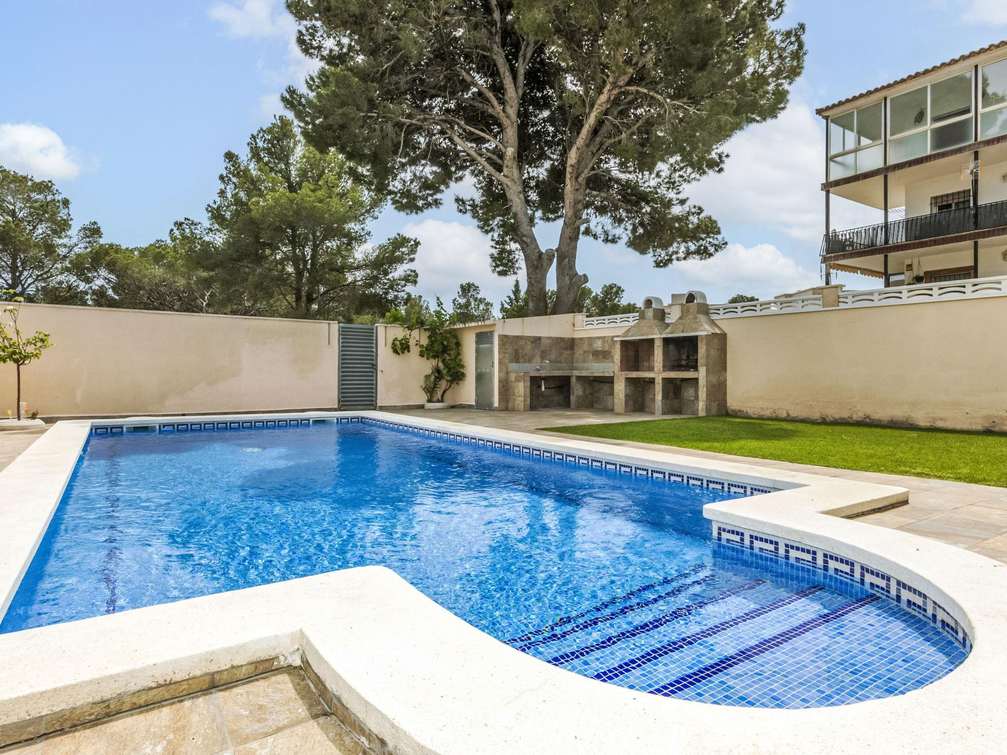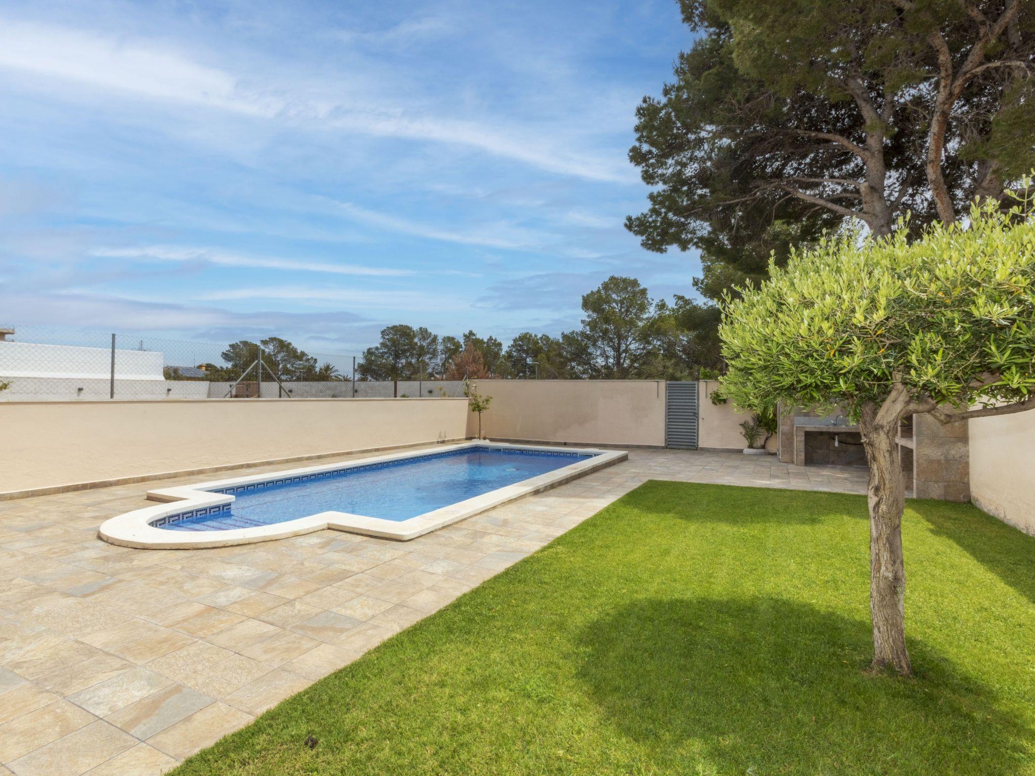 Miami Platja: Cosy, comfortable terraced house "Marinada", 2 storeys, semi-detached. In the centre of Miami Playa, in a central position, 500 m from the sea, 500 m from the beach. Private: property (fenced), swimming pool (8 x 4 m, depth 80 - 190 cm, seasonal availability: 01.Jan. - 31.Dec.). Outdoor shower, terrace, garden furniture, barbecue, pool maintenance by the owner/gardener. Parking at the house. Supermarket, restaurant, bar 500 m, bus stop 230 m, railway station "Hospitalet de l'Infant" 2.8 km, sandy beach 500 m. Nearby attractions: Parque Portaventura 20 km, Parque Aquolopis 23 km, Parque Natural del Delta del Ebro 53 km. Groups of teenagers on request only. The owner does not accept any youth groups.