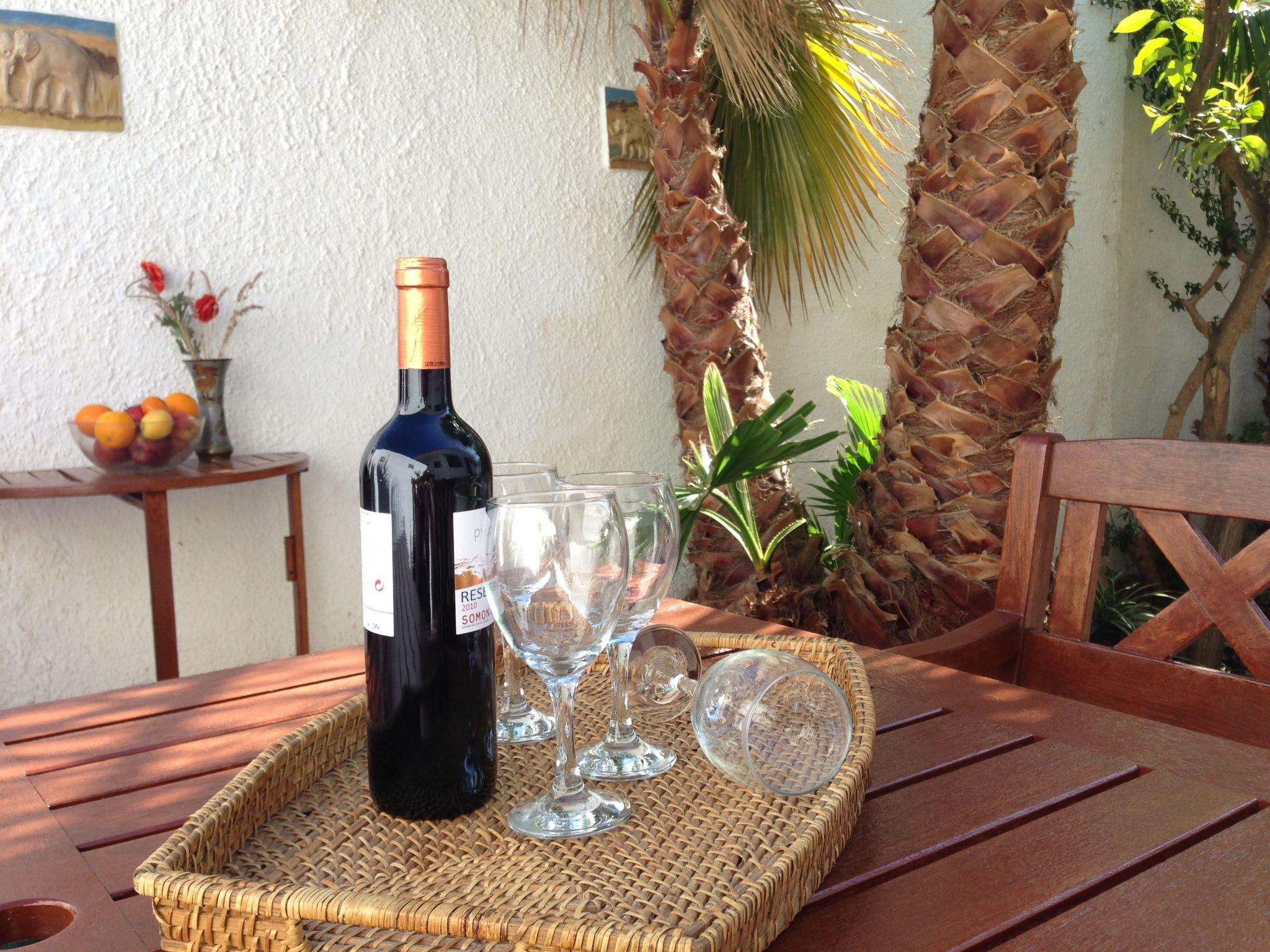 The ingrown and secluded garden is furnished with dining areas and loungers, as well as a brick-built outdoor barbecue. The patio/courtyard behind the house is accessible via the kitchen and the garage and is also furnished with a dining area. Lemons grow there, which you are welcome to pick. There is also a practical additional outdoor shower, which provides refreshment in summer. From here you can see the nearby mountains