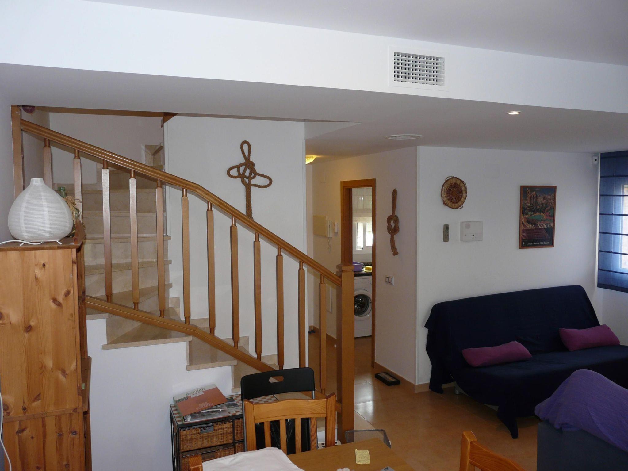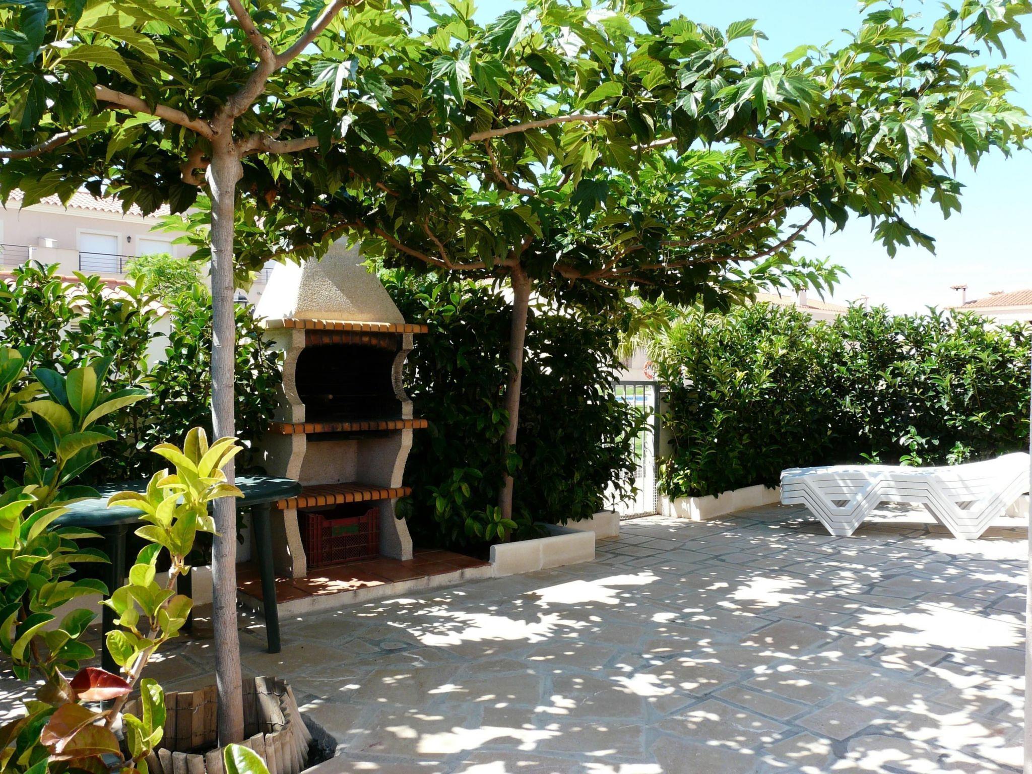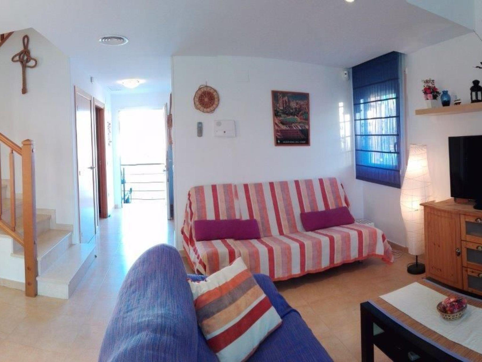 Beautiful and discreet semi-detached house on two floors, in a residential complex with panoramic views of the mountains and the sea. Beaches at 15 minutes walking distance. Very quiet area. There are no discos or bars in the area. No noise. Located in the interior of the town. Large communal swimming pool and a small one for children. Private garden in the house, with private barbecue. Enclosed private parking with fence in the inner courtyard of the house. With direct access to the communal garden of the swimming pools with visibility from the house. Ducted air-conditioning in the bedrooms. Ceiling fan on the terrace and in the dining room. There are 3 bedrooms upstairs. One double bedroom with double bed of 150 cm. Another bedroom with two single beds. One room with a bunk bed with an extra mattress in case three children want to stay in the same room. Ideal for 6 adults and three children, but there can be 8 adults. In the living-dining room there is a 150 cm Italian sofa-bed. A chair for a baby-child. Complete bathroom on the upper floor. From the bedrooms there is direct access to the terrace-solarium with views of the swimming pool. On the ground floor is the independent kitchen. With all the utensils, and a bathroom with shower. Television LG-50", connected to 2 satellites (Astra+hotbird). It has a covered terrace to eat outside the house. In the kitchen there is a ceramic hob with electric oven, new LG washing machine. New LG fridge freezer. Linx Dishwasher, Microwave, Toaster. Juicer. Nexpresso capsule coffee machine. With all kitchen utensils complete and more than necessary. In the street there is plenty of parking space. In the town of Miami Platja there are no parking meters. It is always free of charge in the whole town. At 250 metres there is a supermarket and pizzeria. Rotisserie, etc.