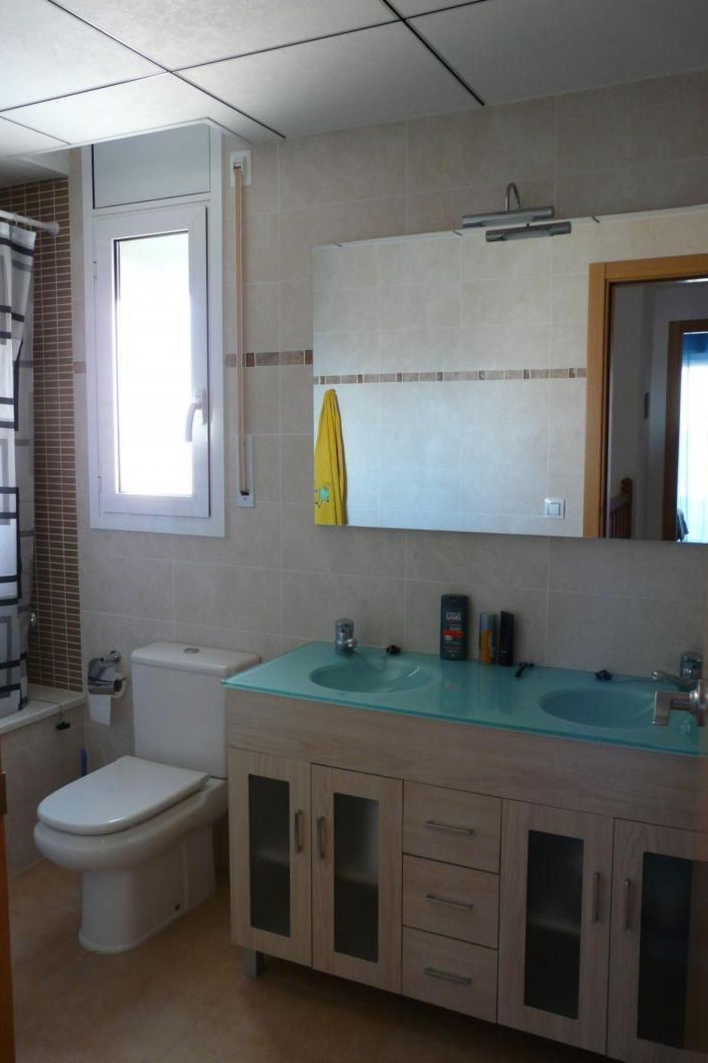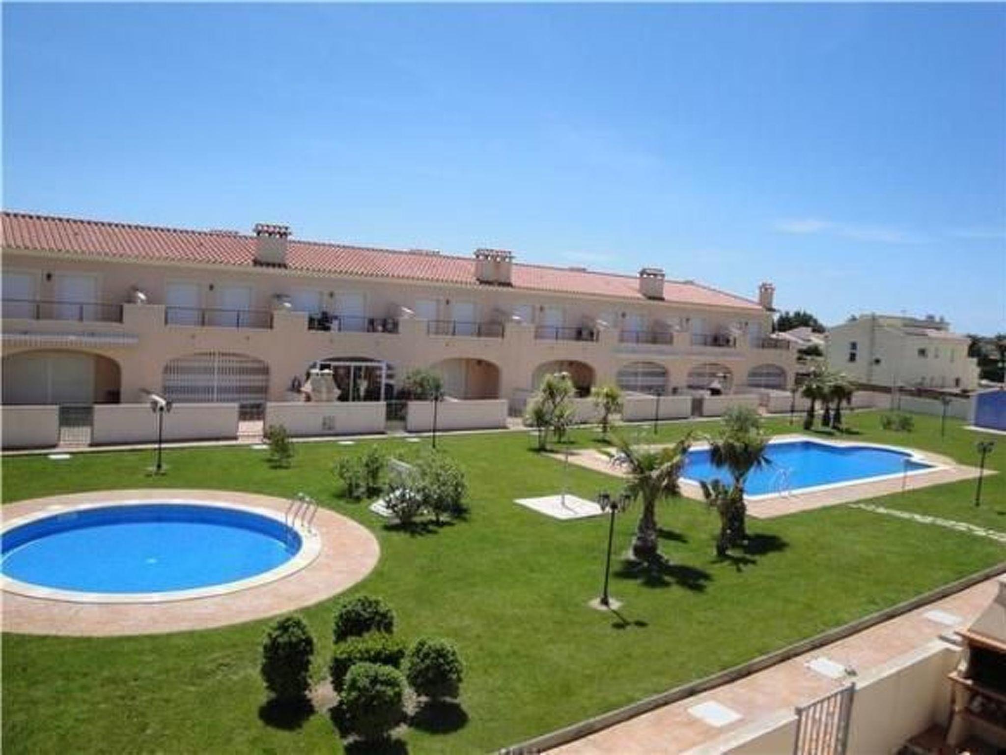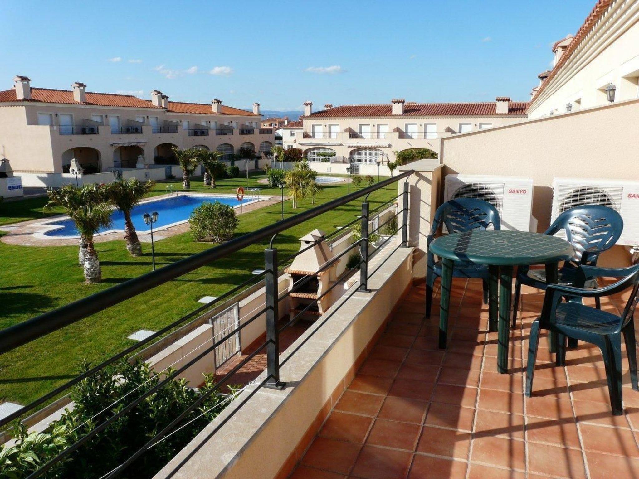 Beautiful and discreet semi-detached house on two floors, in a residential complex with panoramic views of the mountains and the sea. Beaches at 15 minutes walking distance. Very quiet area. There are no discos or bars in the area. No noise. Located in the interior of the town. Large communal swimming pool and a small one for children. Private garden in the house, with private barbecue. Enclosed private parking with fence in the inner courtyard of the house. With direct access to the communal garden of the swimming pools with visibility from the house. Ducted air-conditioning in the bedrooms. Ceiling fan on the terrace and in the dining room. There are 3 bedrooms upstairs. One double bedroom with double bed of 150 cm. Another bedroom with two single beds. One room with a bunk bed with an extra mattress in case three children want to stay in the same room. Ideal for 6 adults and three children, but there can be 8 adults. In the living-dining room there is a 150 cm Italian sofa-bed. A chair for a baby-child. Complete bathroom on the upper floor. From the bedrooms there is direct access to the terrace-solarium with views of the swimming pool. On the ground floor is the independent kitchen. With all the utensils, and a bathroom with shower. Television LG-50", connected to 2 satellites (Astra+hotbird). It has a covered terrace to eat outside the house. In the kitchen there is a ceramic hob with electric oven, new LG washing machine. New LG fridge freezer. Linx Dishwasher, Microwave, Toaster. Juicer. Nexpresso capsule coffee machine. With all kitchen utensils complete and more than necessary. In the street there is plenty of parking space. In the town of Miami Platja there are no parking meters. It is always free of charge in the whole town. At 250 metres there is a supermarket and pizzeria. Rotisserie, etc.