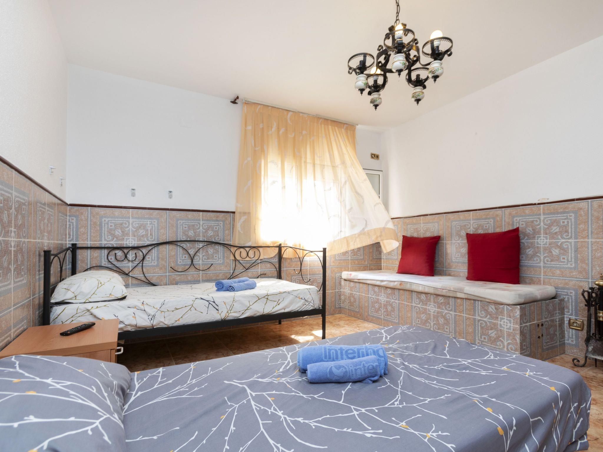 "Villa Isabel", 5-room villa 97 m2 on 2 levels. Practical and comfortable furnishings: living/dining room with dining table and digital TV. 2 rooms, each room with 2 french beds (135 cm). 1 room with 2 beds (90 cm). Open kitchen (oven, dishwasher, 4 ceramic glass hob hotplates, toaster, kettle, microwave, electric coffee machine). Shower/WC. No heating option. Upper floor: 1 room with 1 french bed (135 cm), bath/WC. Exit to the terrace. Facilities: washing machine, iron, hair dryer. Internet (WiFi, free). Parking at the house. HUTT-020761 // Reg. Nr.: ESFCTU00004303200003136900000000000000000HUTT-0020761
