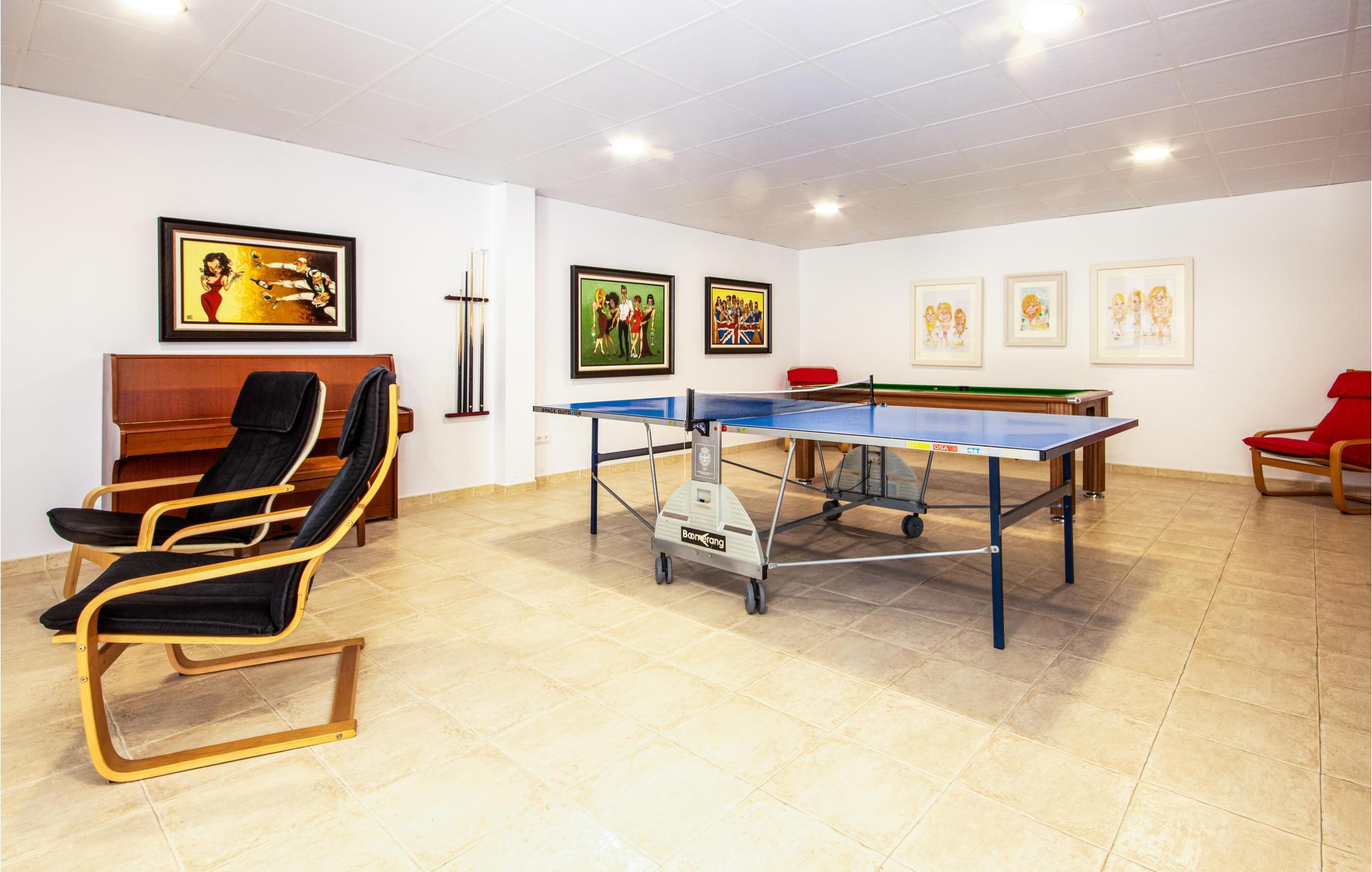 I stueetagen er der et soveværelse med to enkeltsenge og et privat badeværelse med bruser samt direkte adgang til hovedterrassen og poolområdet. Der er også en rummelig stue / aktivitetsrum med bordtennis, poolbord, TV og spillekonsol. Stueetagen har også et køkkenområde og et badeværelse med 3 brusere. Herfra har I direkte adgang til den overdækkede terrasse, de åbne terrasser og poolområdet.