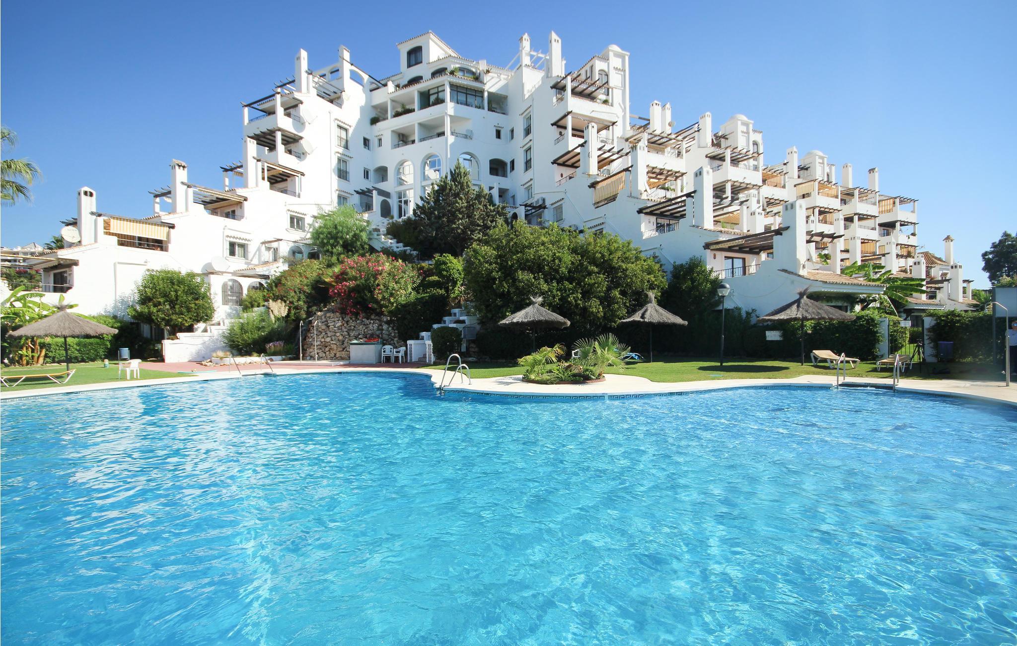 Denne nydelige ferielejlighed med to soveværelser ligger i boligkomplekset Las Colinas i Calahonda. Til fods når I herfra bekvemt golfbanen La Siesta og tennisklubben Club del Sol. Las Colinas byder i sit flotte haveanlæg på et poolområde, hvor der også er fælles parasoller og solsenge. Om vinteren har I desuden en opvarmet indendørs pool til rådighed fra oktober til marts.