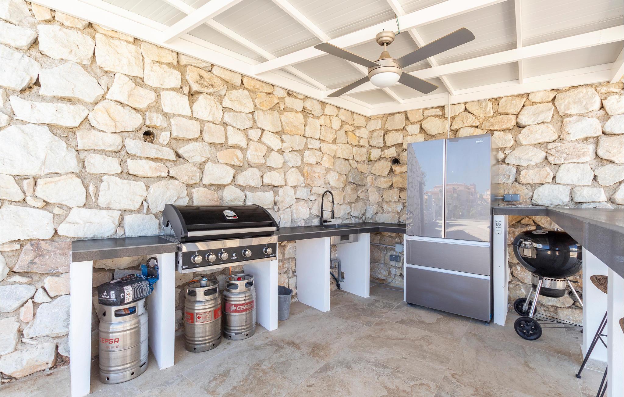 Feriehusets udendørsområde er virkelig imponerende.Slap af på terrassen og tilbered jeres måltider i udendørskøkkenet, hvor der både er elektrisk grill og kulgrill. Et poolbord og bordtennis er også tilgængelige.