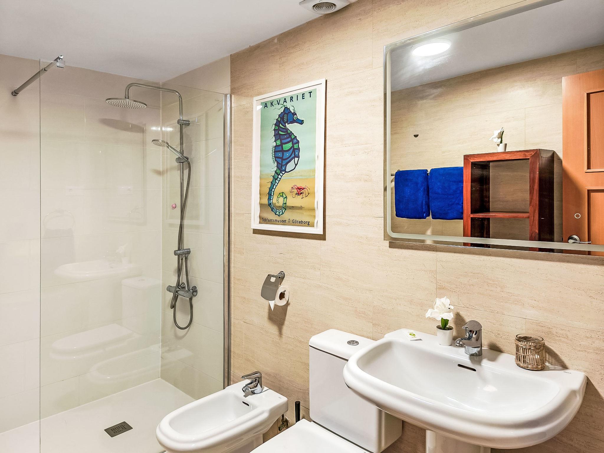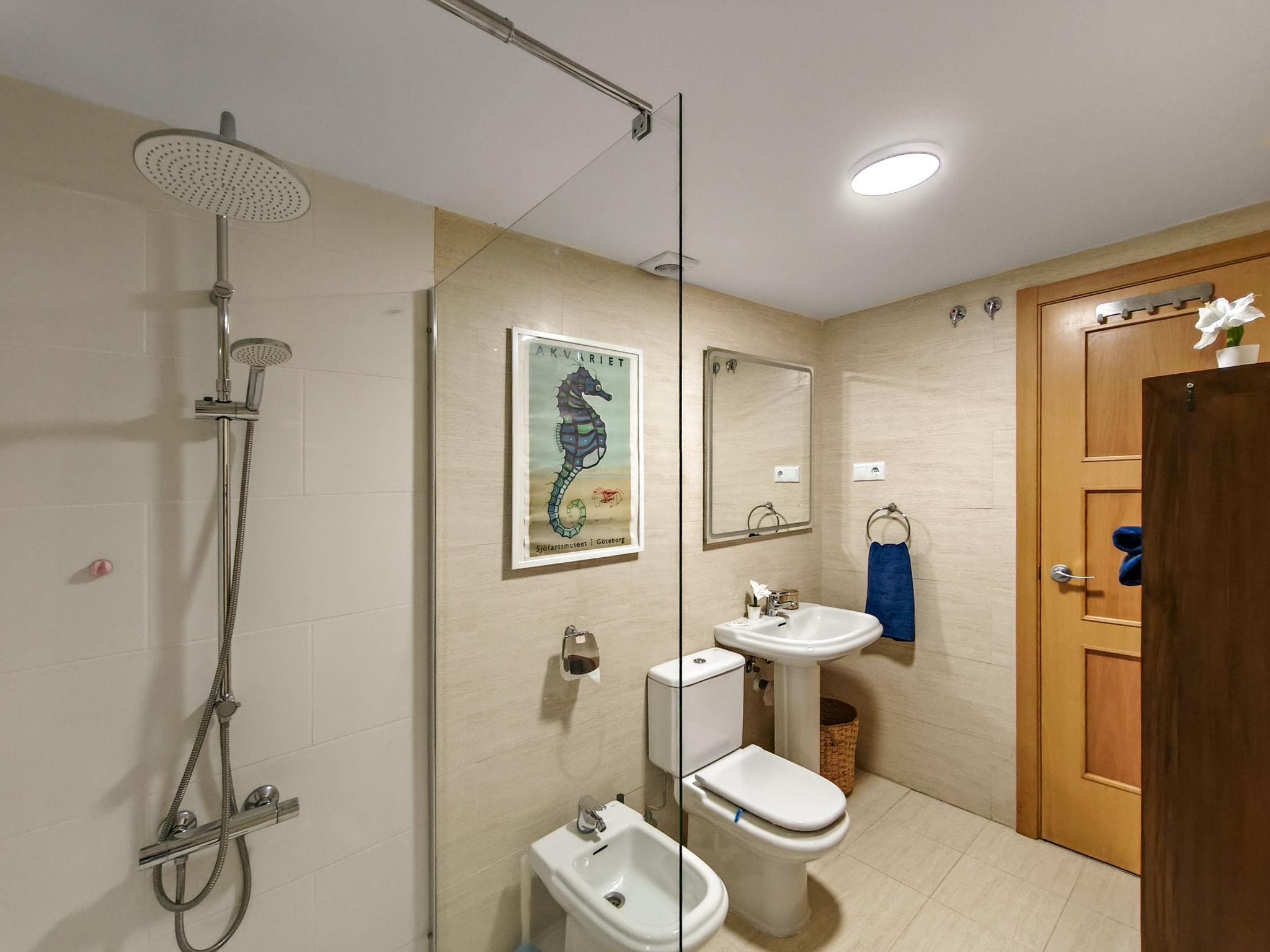 "Terrazas de Calamijas", 3-room apartment 85 m2, south-west facing position. Object suitable for 4 adults + 1 child. Practical and comfortable furnishings: living/dining room with digital TV. Exit to the terrace. 1 room with 2 beds (90 cm, length 200 cm), 1 sofabed (80 cm, length 190 cm). 1 room with 1 french bed and bath/bidet/WC (private). Open kitchen (oven, dishwasher, 4 ceramic glass hob hotplates, toaster, kettle, freezer, electric coffee machine). Shower/WC. Air-conditioning, forced-air heating. Terrace 10 m2, roofed terrace 10 m2. Terrace furniture. Panoramic view of the sea and the resort. Facilities: washing machine, iron, children's high chair, baby cot, hair dryer. Internet (WiFi, free). Parking space n 236. Please note: no lift. Chromecast TV. VUT/MA/64376 // Reg. Nr.: ESFCTU0000290440007186830000000000000000VUT/MA/643767