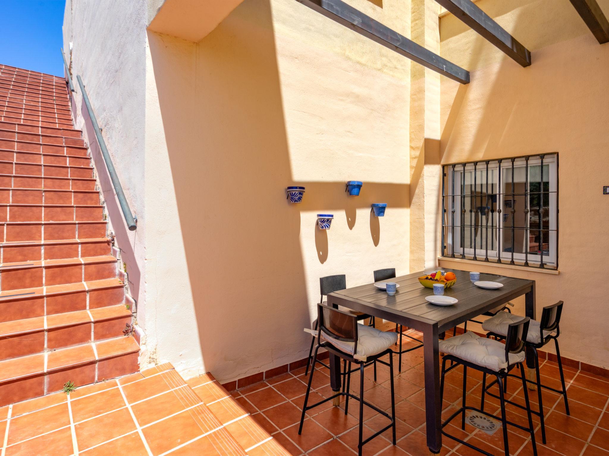 Very beautiful, cosy apartment block "Terrazas Calamijas". In the district La Cala de Mijas, in a quiet, sunny position, 900 m from the sea, south-east facing position. For shared use: garden, swimming pool kidney-shaped (7 x 20 m, depth 140 - 140 cm, seasonal availability: 15.May. - 15.Sep.). Children's pool, outdoor shower. Stepped path (30 steps) to the house. Parking space n 236. Shop 400 m, supermarket, restaurant, bar 300 m, bakery 150 m, café 300 m, bus stop "Lidl La Cala" 700 m, sandy beach 900 m. Neighbourhood highly sensitive to noise. Quietness and good behaviour expected. There is one padel court in the complex.