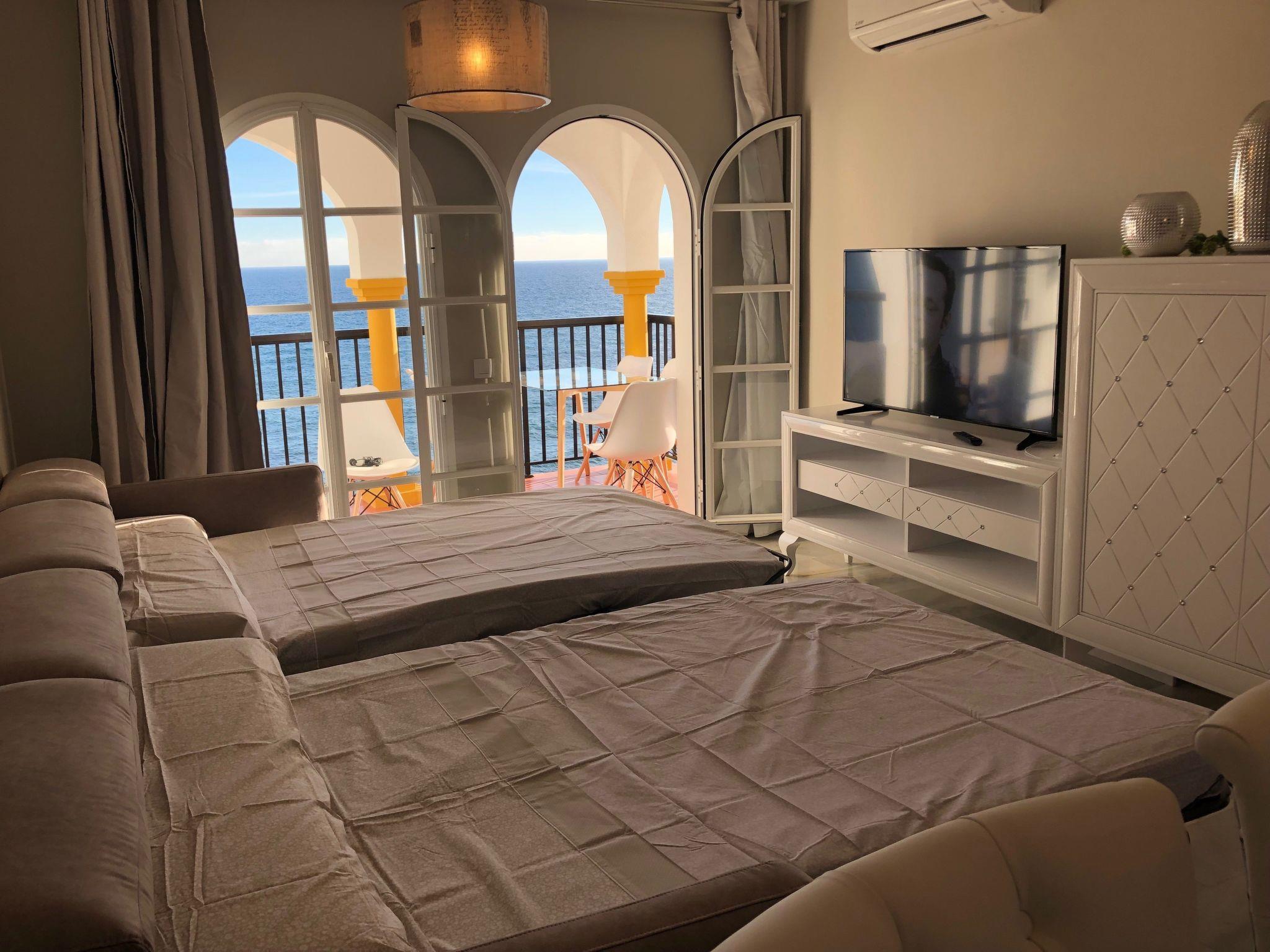 Discover the magic of the Costa del Sol by staying in this beachfront flat in La Cala de Mijas, Malaga, Andalusia. This charming accommodation promises to be the perfect holiday retreat, offering unrivalled sea views from its wonderful terrace, plus the convenience of free WiFi, and is ideal for families or groups of friends, with two bedrooms and a sofa bed for two people, ensuring a memorable stay by the sea.