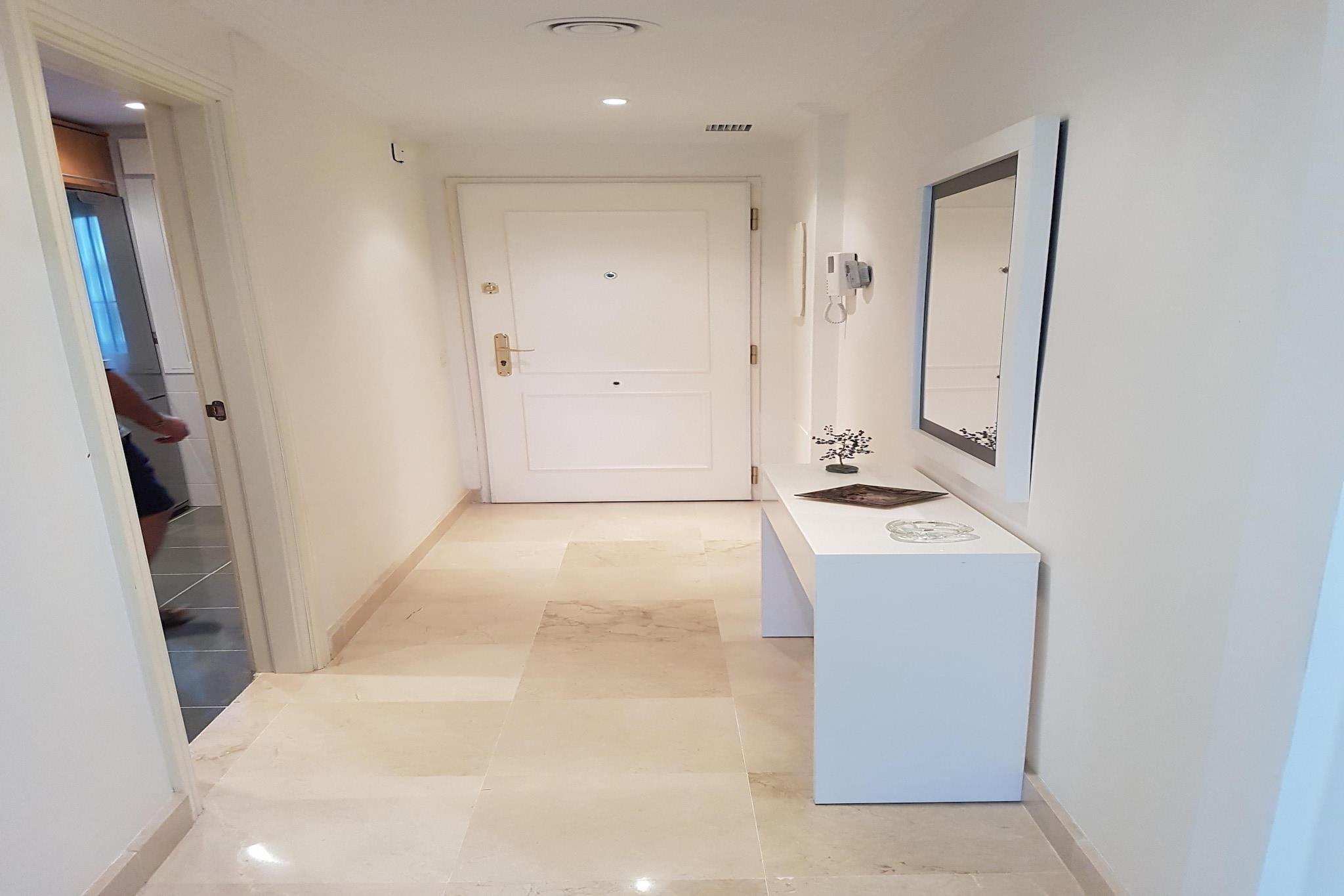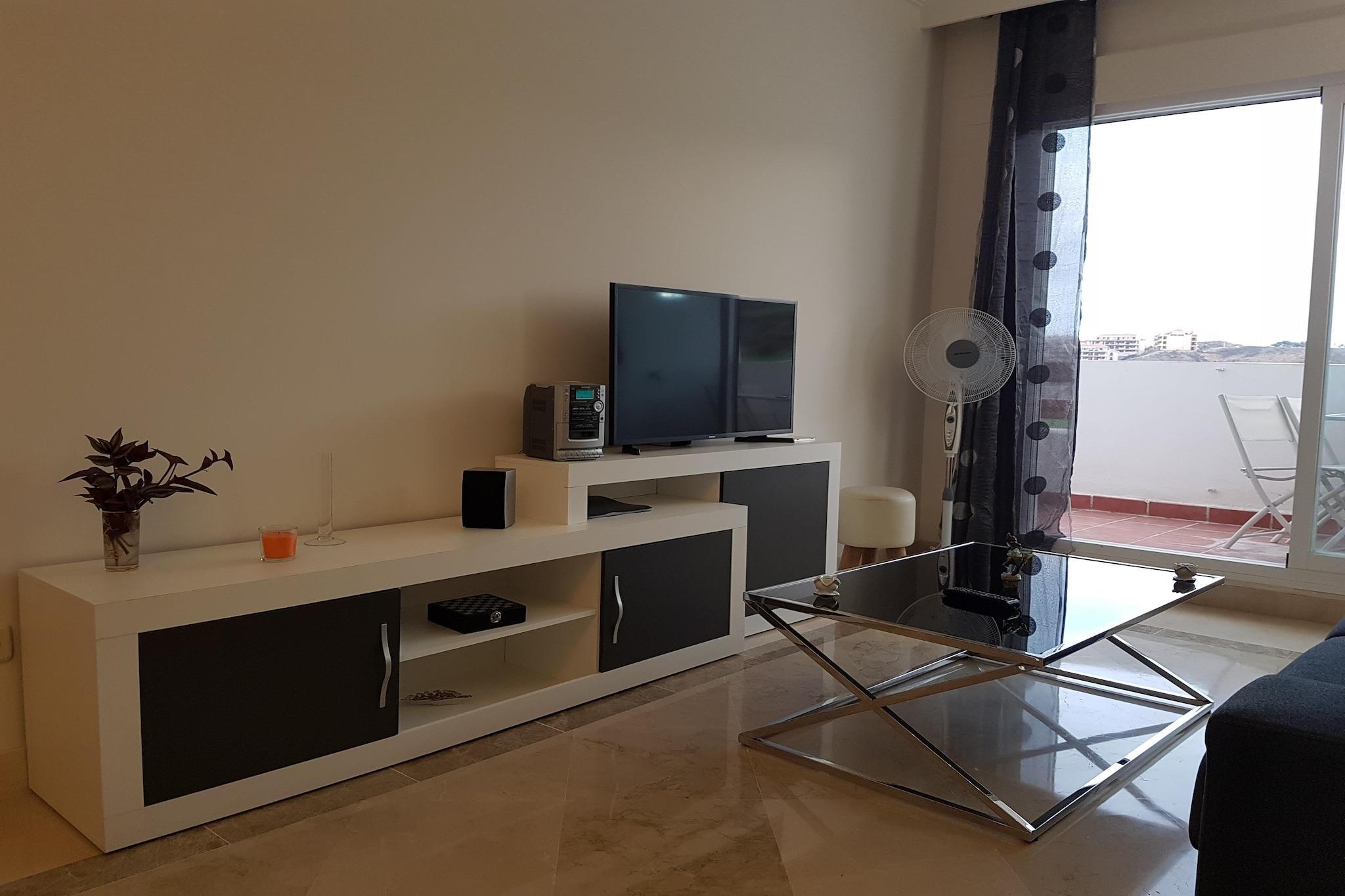 Denne smukke lejlighed er perfekt beliggende på Calanova Golfbane med en charmerende terrasse, der tilbyder en betagende udsigt over greens og dalen, mod La Cala Mijas og havet. Boligkomplekset, omgivet af frodige haver, tilbyder idylliske omgivelser med udendørs pools og flere rolige områder, ideelle til afslapning, læsning eller yoga. De små vil nyde legepladsen. Kun 3 kilometer væk venter La Cala de Mijas med en bred vifte af tjenester for enhver smag. Her finder du flere supermarkeder til dine daglige behov samt et bredt udvalg af sports- og fritidsaktiviteter. Gæsterne kan nemt besøge de smukke familiestrande eller fordybe sig i det overdådige andalusiske køkken på forskellige lokale restauranter. Dit ophold inkluderer vigtige faciliteter såsom Wi-Fi, energiforbrug baseret på forbrug, komfortabel sengetøj og friske håndklæder samt en velkomstpakke til at starte din ferie rigtigt. Bemærk venligst, at denne ejendom ikke er egnet til gæster med nedsat mobilitet. Indtjekning er fra kl. 16.00 til 19.00 på FAROHOMES' kontor: Av. Nuestro Padre Jesús Cautivo, 15, 29640 Fuengirola, Málaga.