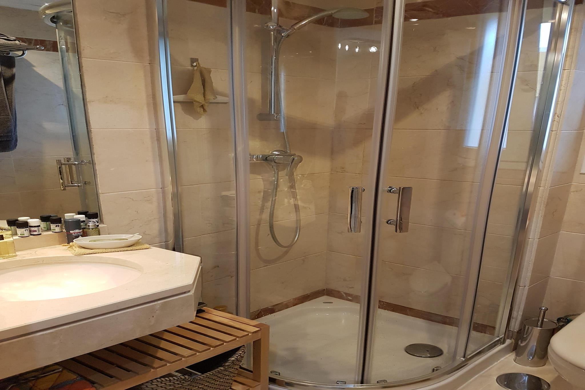 Stueetage: (Køkken(kakkelovn, kogeplade(Komfur med tre kogeplader, glaskeramisk), elkedel, kaffemaskine, ovn, grill, mikrobølgeovn, opvaskemaskine , køle-fryseskab), stue / spisestue(Fjernsyn(parabol, Tyske TV-kanaler), radio), soveværelse(dobbeltseng), soveværelse(enkeltseng, enkeltseng), badeværelse(badekar, bruser, toilet, føntørrer), badeværelse(bruser, toilet), elevator) tørretumbler, vaskemaskine, klimaanlæg, terrasse, havemøbler, parkering, swimmingpool(privat, udendørs), baby crib(paid)