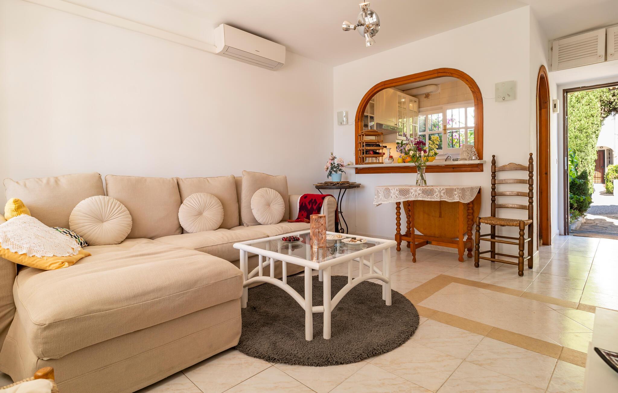 Glæd jer til en fantastisk ferie i Mijas med jeres lille familie. Alt I skal gøre her er at føle jer godt tilpas, for huset er behageligt og velkendt, så I behøver ikke at gøre jer godt tilpas. Uanset om I laver mad i det lyse køkken, leger ved spisebordet eller slapper af i sofaen, vil I finde ro i denne indbydende atmosfære. begynd morgenen med en solid morgenmad på terrassen. Bagefter kan I få fat i et stort badehåndklædeog gå til den fælles pool og svømme og plaske rundt i poolen.