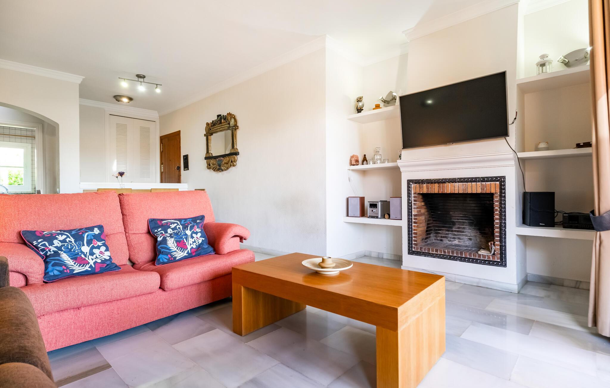 Sol, vand og god komfort er, hvad der venter jer i denne indbydende lejlighed kun en kort køretur fra stranden. Boligen er lyst og pænt indrettet med et klart hjemligt strejf i den kærlige udsmykning, der sammen med de moderne bekvemmeligheder gør det nemt at slappe af før og efter dagens muntre leg. Lad aftenen gå på hæld i stuen med et godt glas vin og ild i pejsen, mens I lægger planer for de kommende dage.