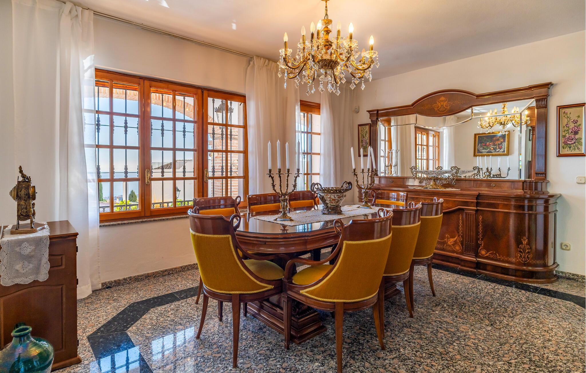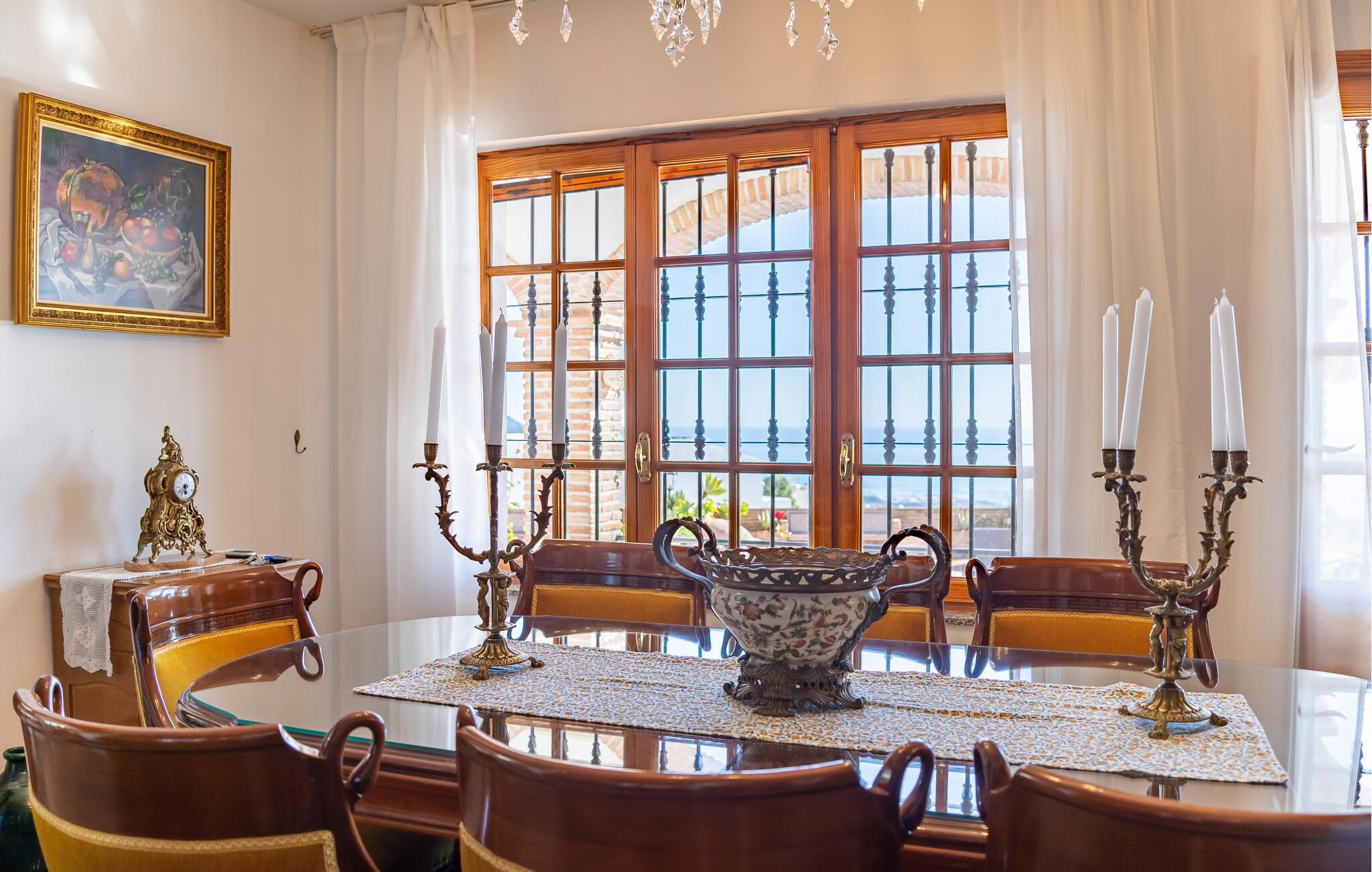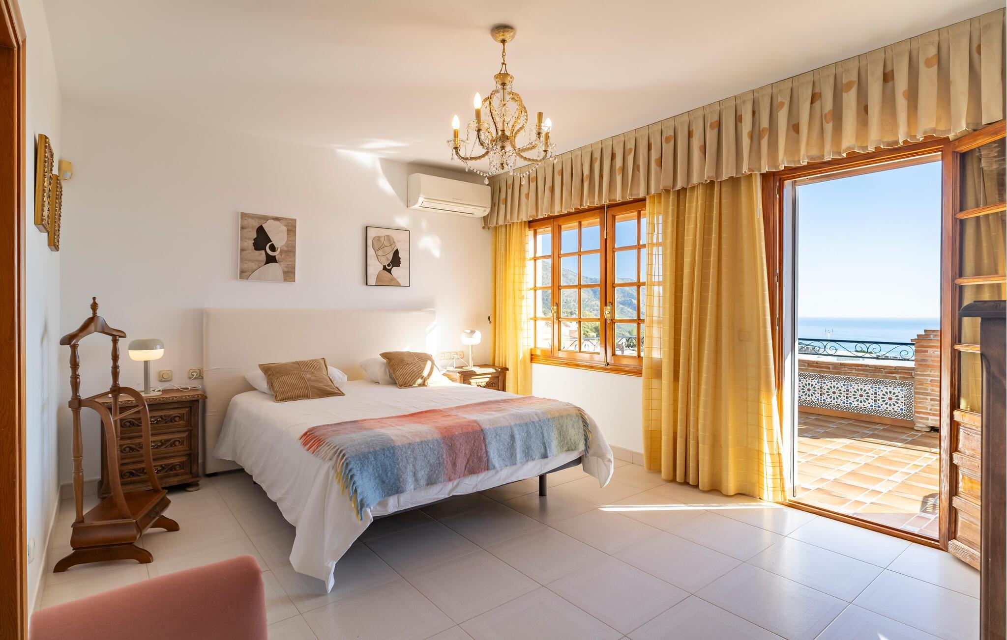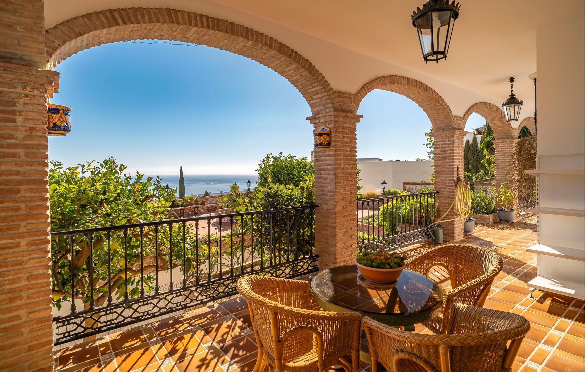 Velkommen til dette rummelige feriehus, der kombinerer andalusisk charme med moderne komfort. Indenfor finder I traditionelt og elegant indrettede værelser. Lad havbrisen strømme gennem stuen, mens I slapper af i den behagelige sofa om aftenen og streamer en god serie. Lav mad i det fuldt udstyrede køkken og nyd måltider i den storslåede spisestue med panoramaudsigt.