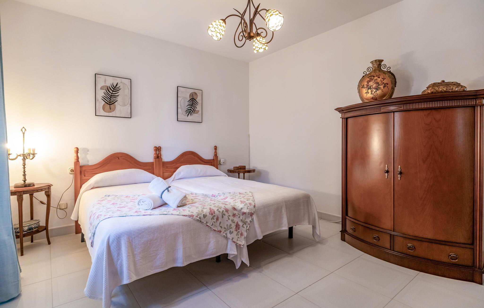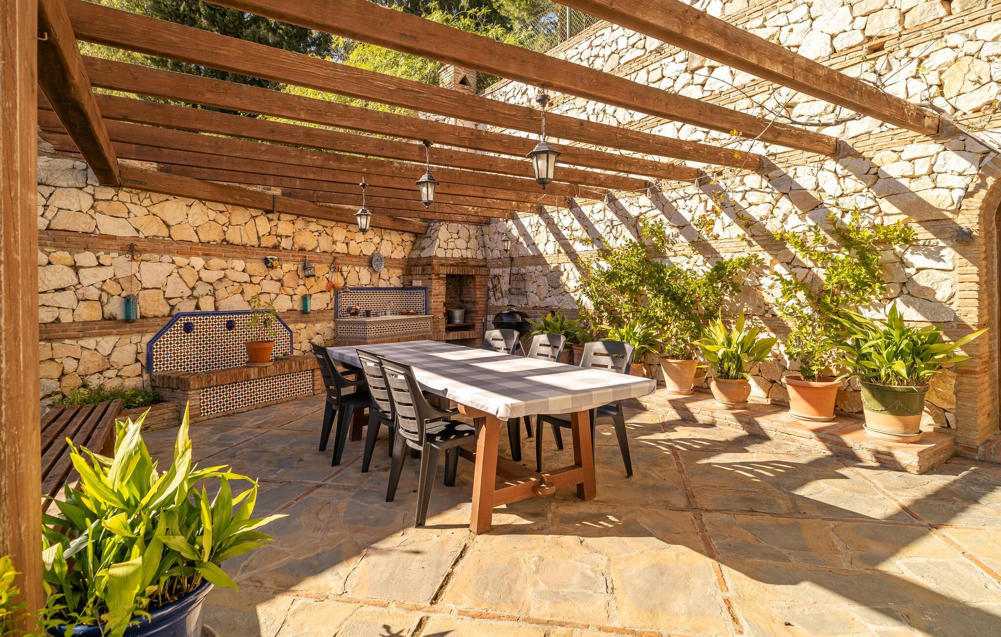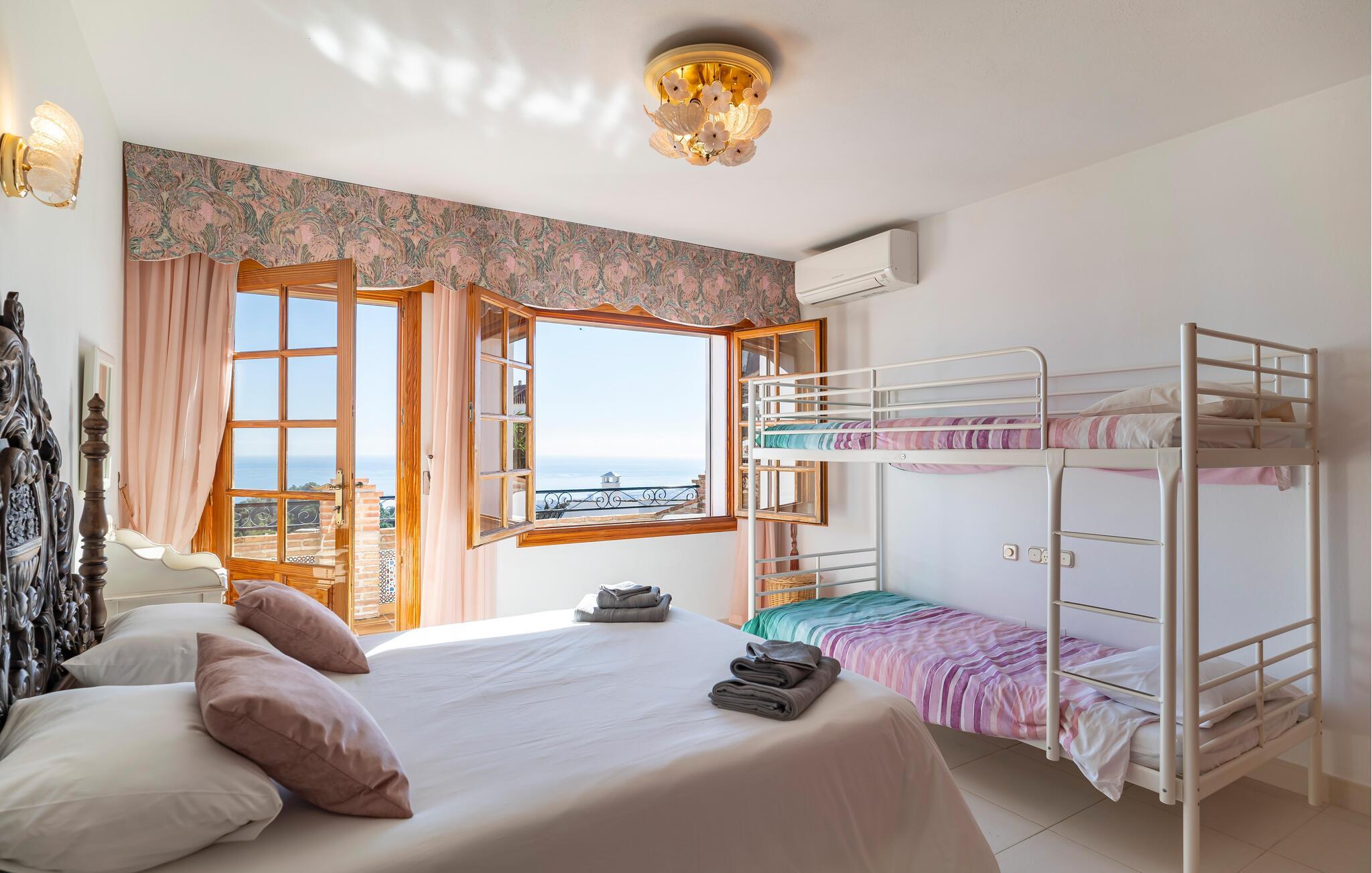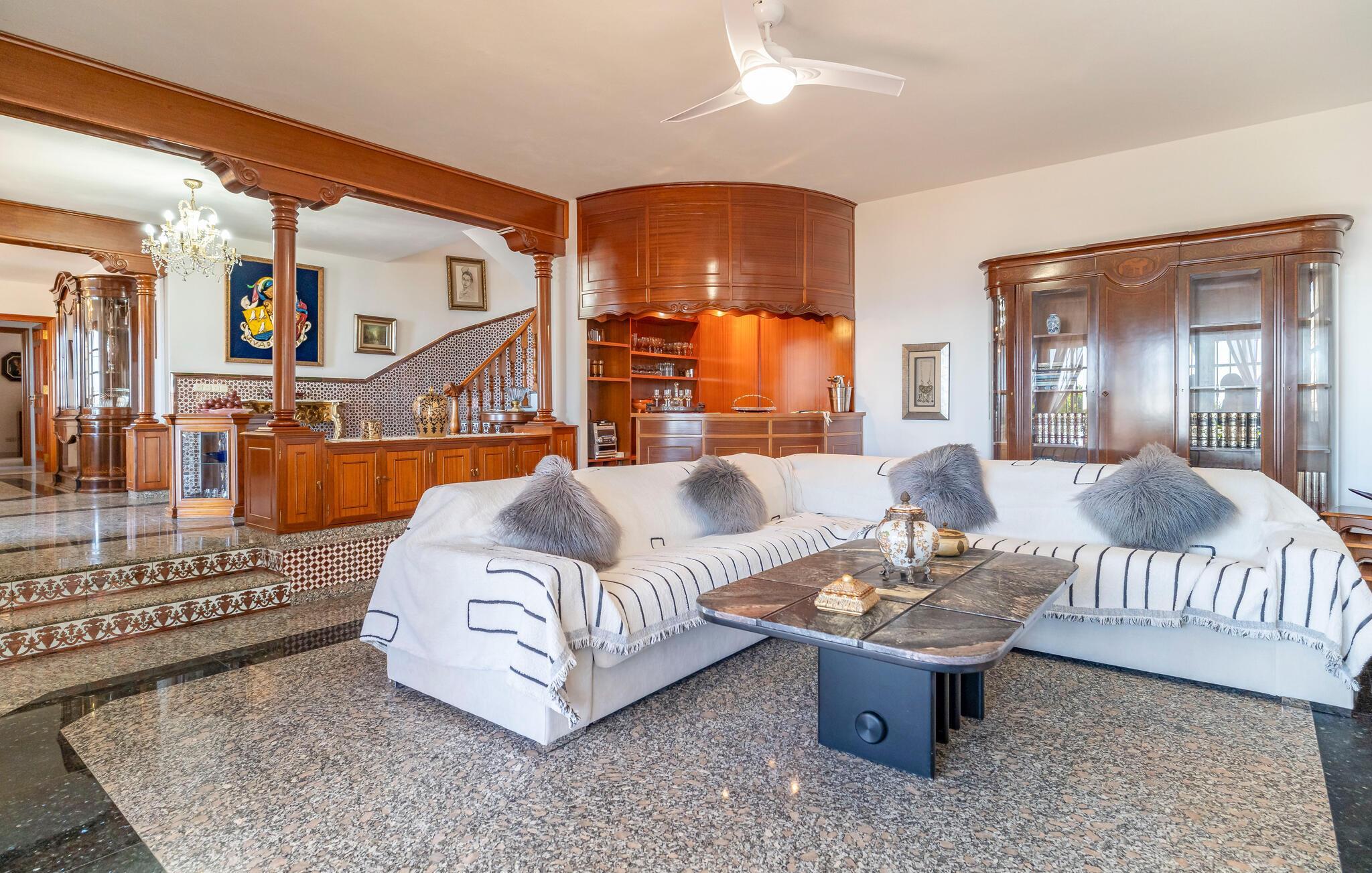 Velkommen til dette rummelige feriehus, der kombinerer andalusisk charme med moderne komfort. Indenfor finder I traditionelt og elegant indrettede værelser. Lad havbrisen strømme gennem stuen, mens I slapper af i den behagelige sofa om aftenen og streamer en god serie. Lav mad i det fuldt udstyrede køkken og nyd måltider i den storslåede spisestue med panoramaudsigt.