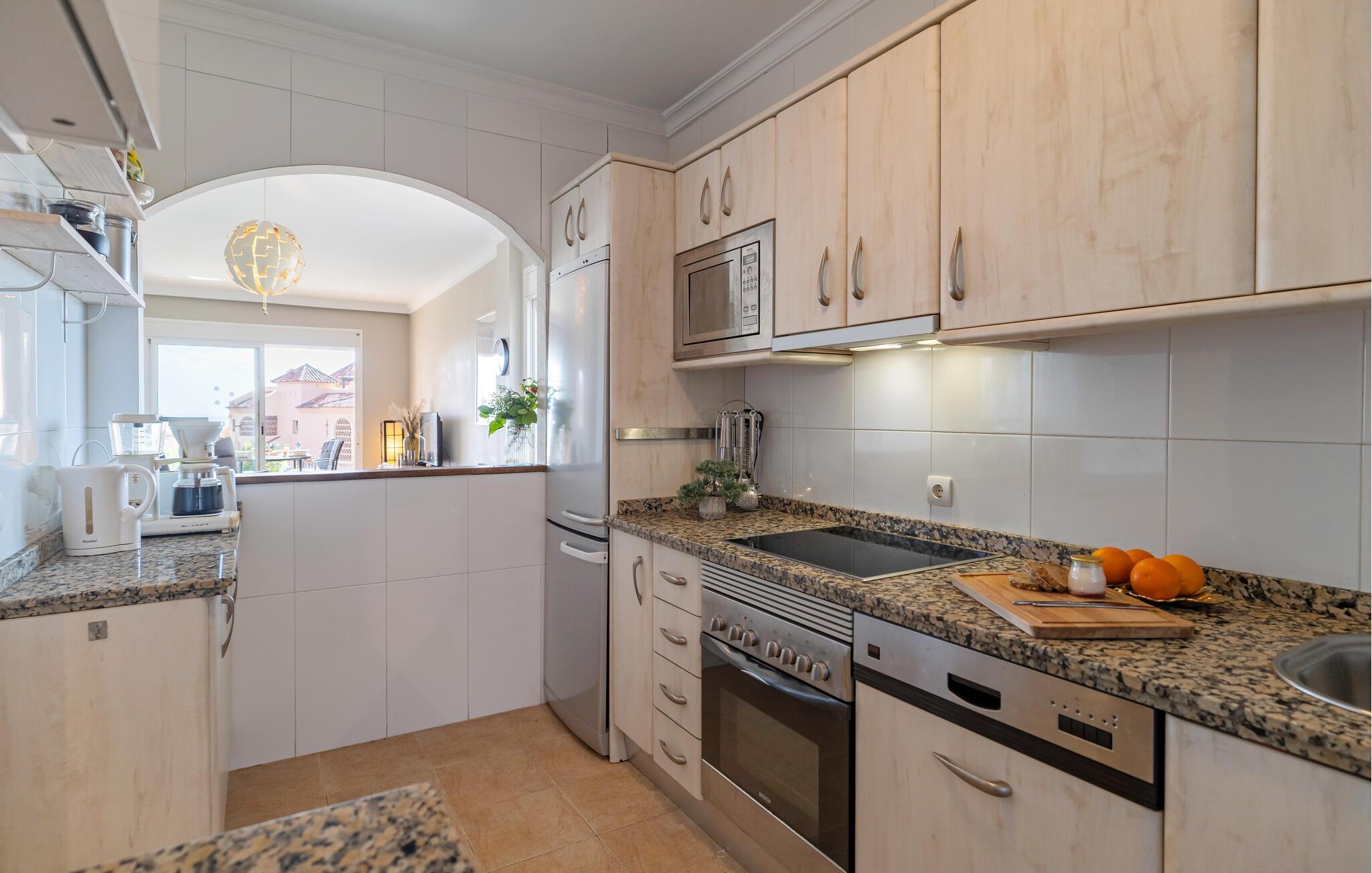 Velkommen til jeres feriehus, som er ideelt udstyret til afslappende dage under den spanske sol. Tilbring nogle afslappende timer ved den fælles pool, nyd afslappede måltider i det elegant møblerede interiør og slap af på komfortable liggestole på jeres private terrasse med havudsigt. Den rummelige lejlighed byder på plads til hele familien, så I kan lave dejlige ferieminder sammen.