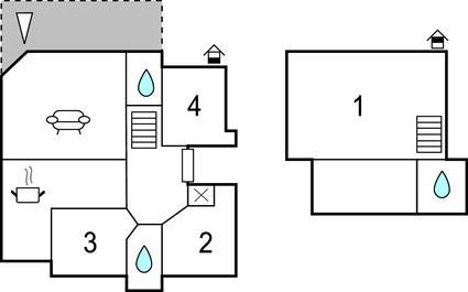 Badeværelse (nr. 1) - WC. Varmt og koldt vand. Bruser