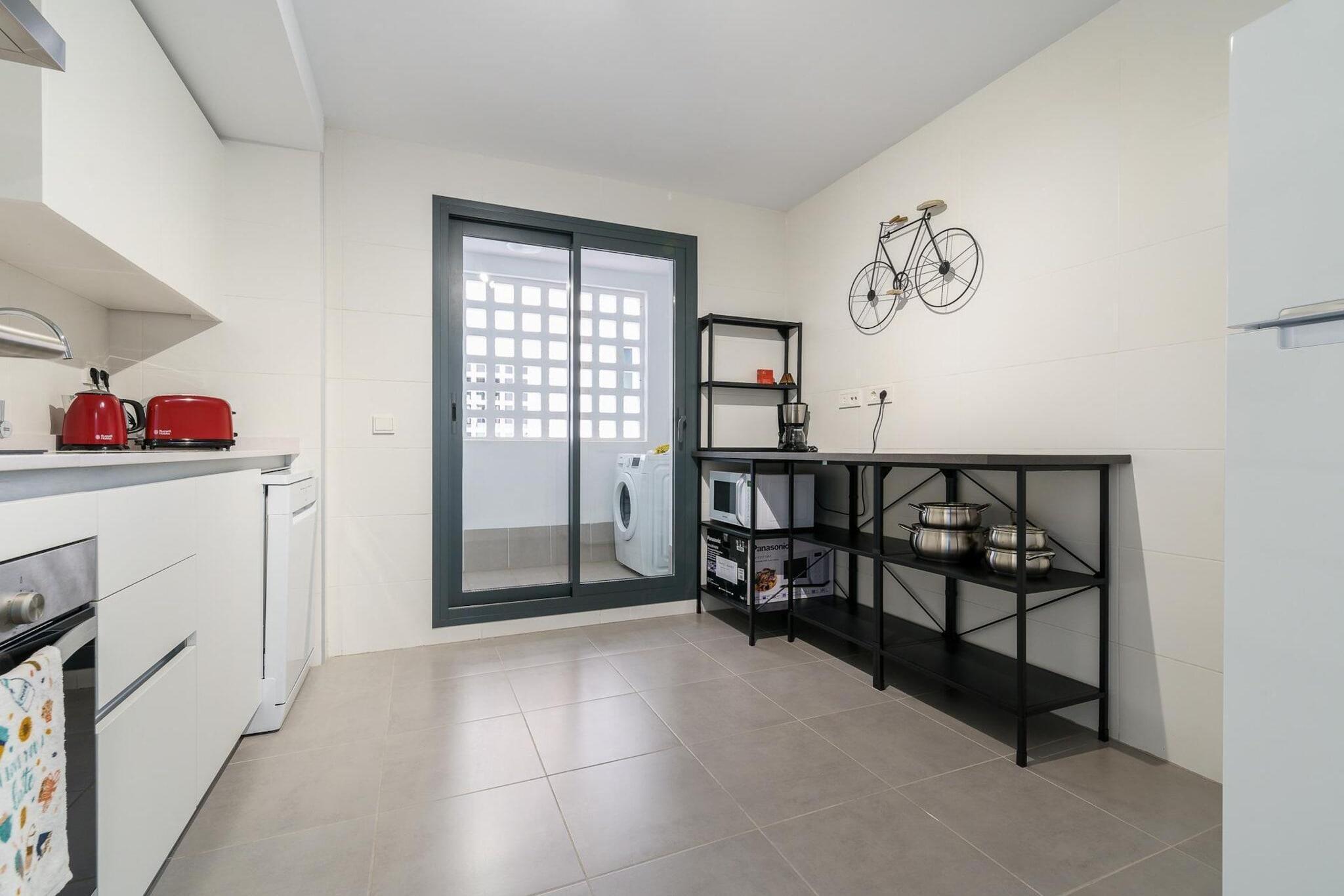 Stueetage: (Køkken(elkedel, brødrister, komfur(glaskeramisk), kaffemaskine, ovn, mikrobølgeovn, opvaskemaskine , køle-fryseskab), stue / spisestue(Fjernsyn(parabol, Internationale TV-kanaler), spisebord, sofahjørne, Netflix), soveværelse(dobbeltseng), soveværelse(enkeltseng, enkeltseng), badeværelse(bruser, håndvask, toilet), badeværelse(badekar, håndvask, toilet), vaskerum (vaskemaskine), klimaanlæg, terrasse, elevator) Have, tremmeseng, parkering, swimmingpool(deles med andre gæster, udendørs), barnestol